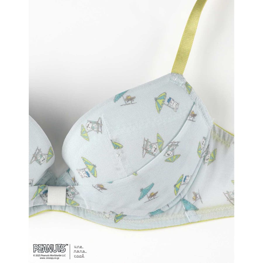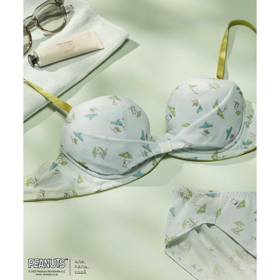 スヌーピー、アンディ、オラフ、ウッドストック達が、パラソルの下でくつろいでいるデザインで、夏のビーチをイメージ。