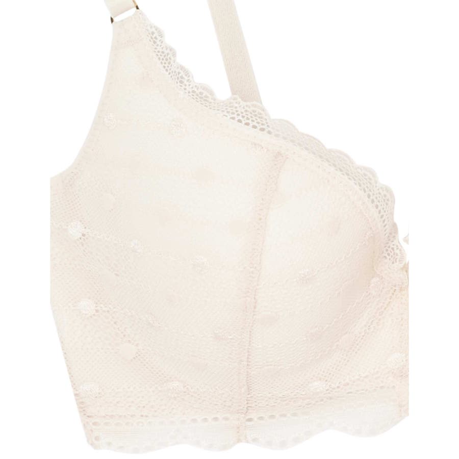 ドット柄のレースを使用したカジュアルフェミニンなデザインのブラジャー。