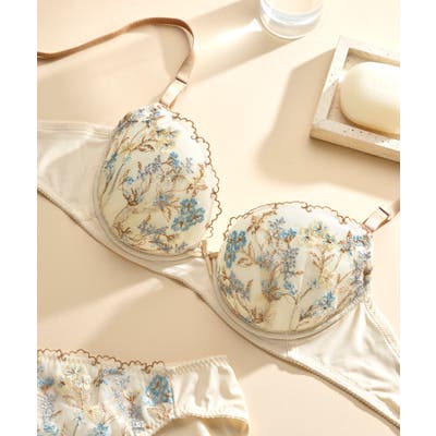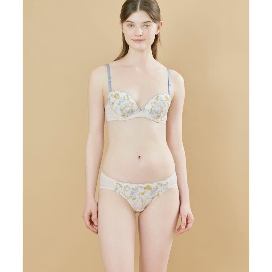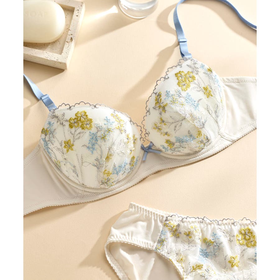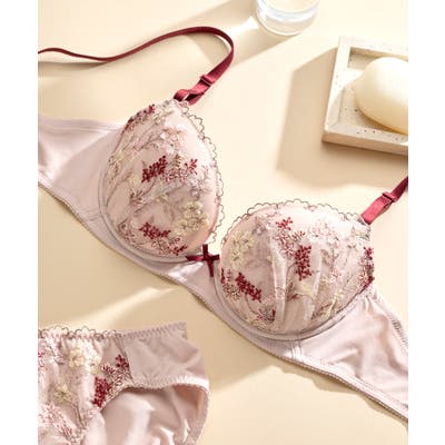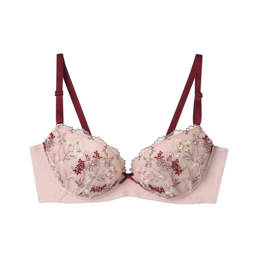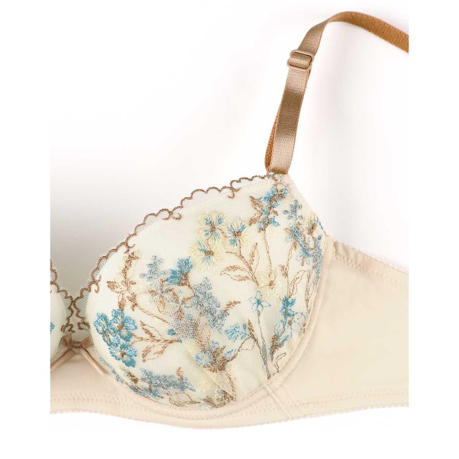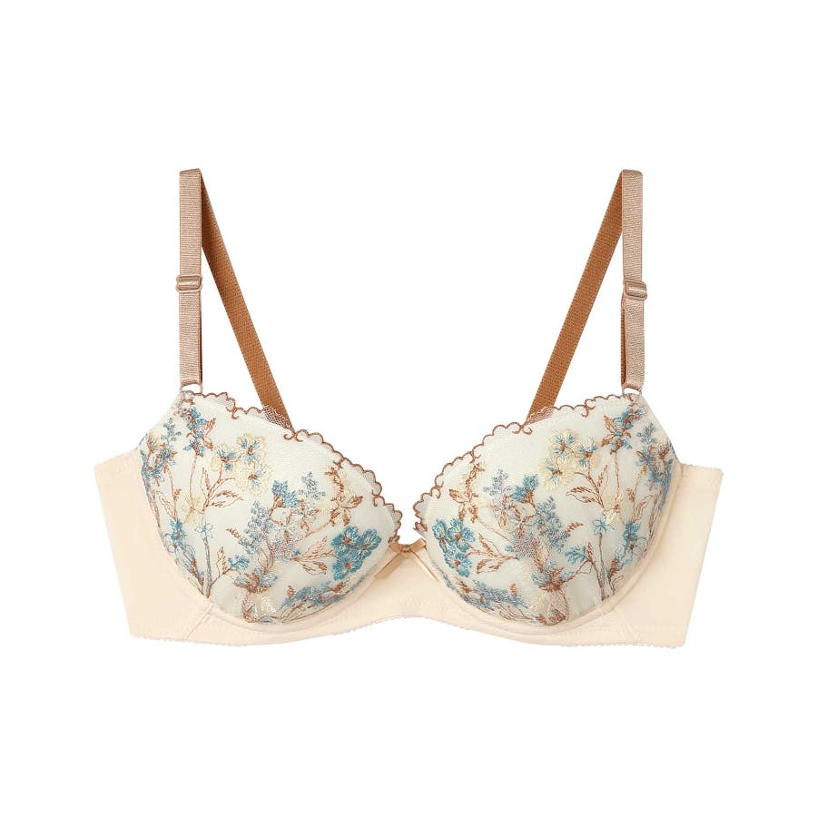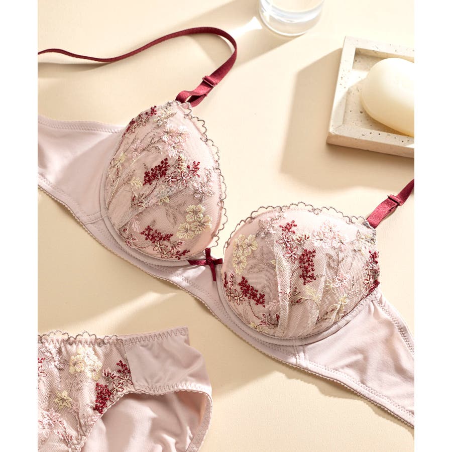 ・流れのある表情豊かなボタニカル柄を多色で表現したレースが華やかなブラジャー。