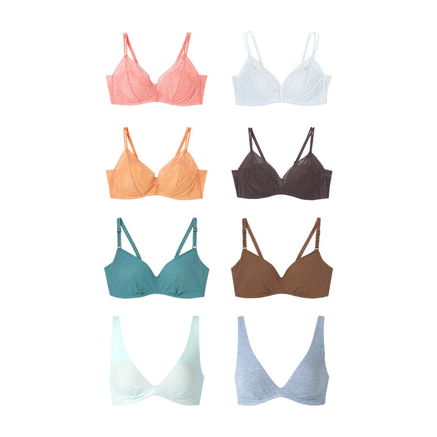 ラクときれいを叶える、毎日の洋服に合わせやすい、ミニマルなデザインのノンワイヤーブラジャーの3点セット。