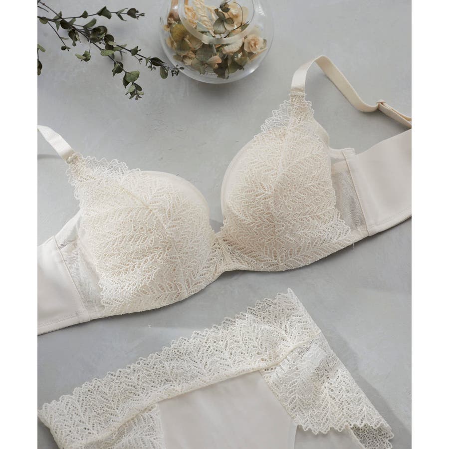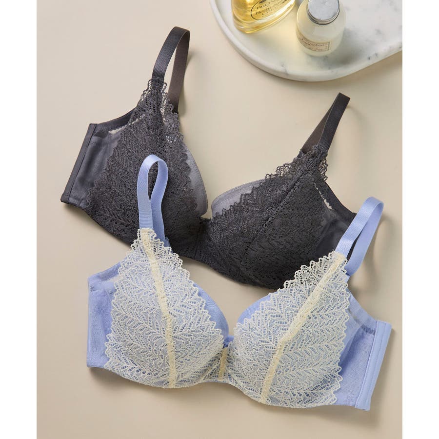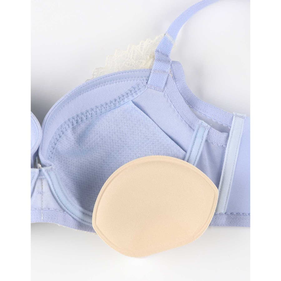 表レースの下に内蔵されたカップ脇布で、安定感のあるつけごこち。