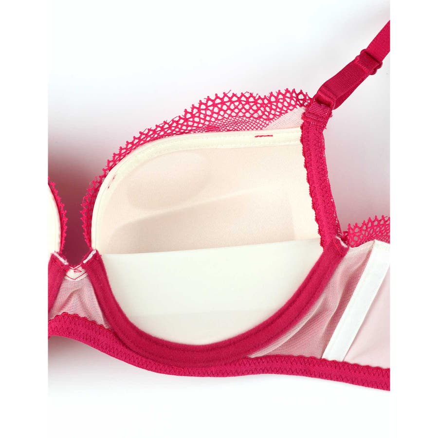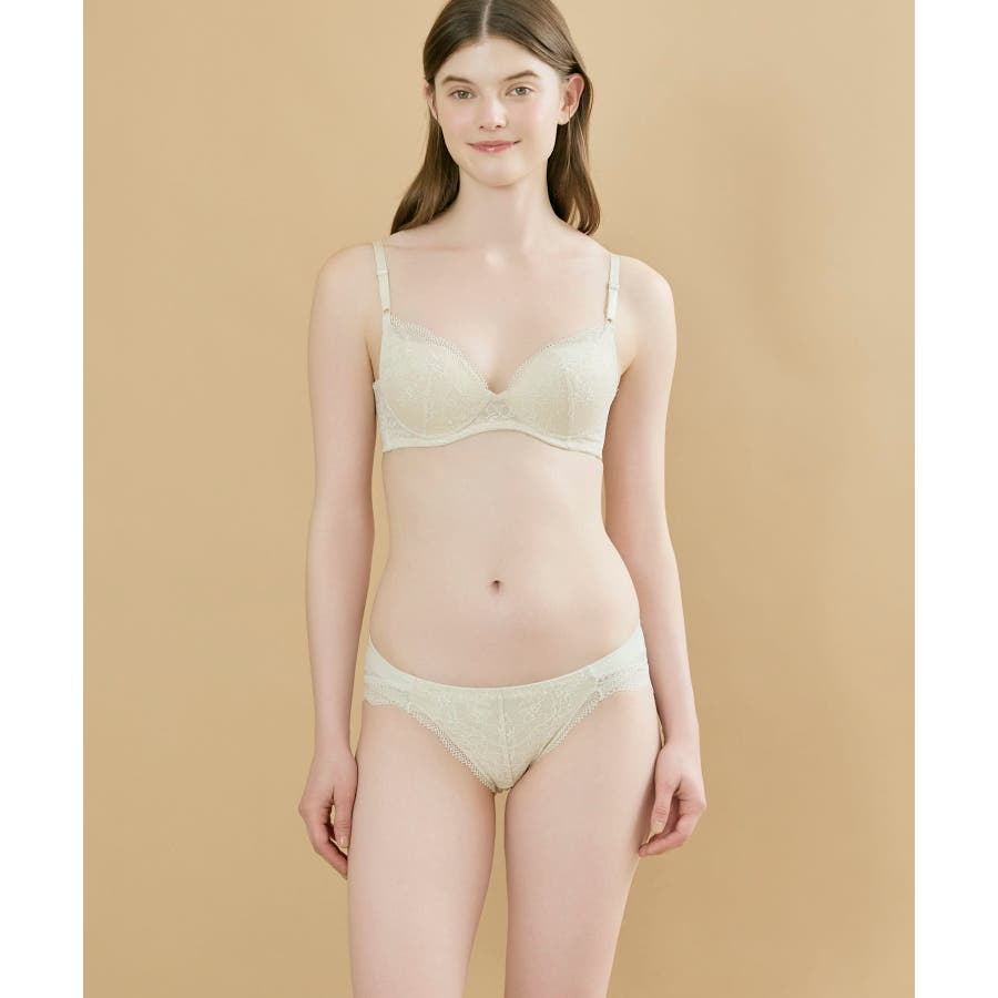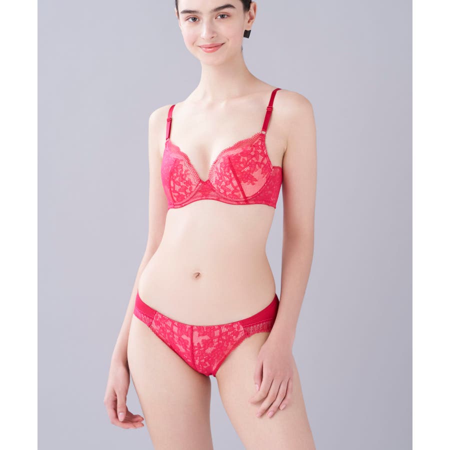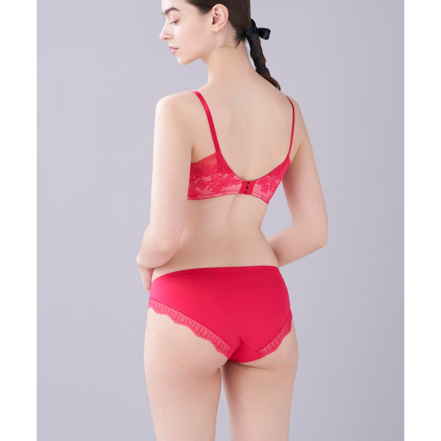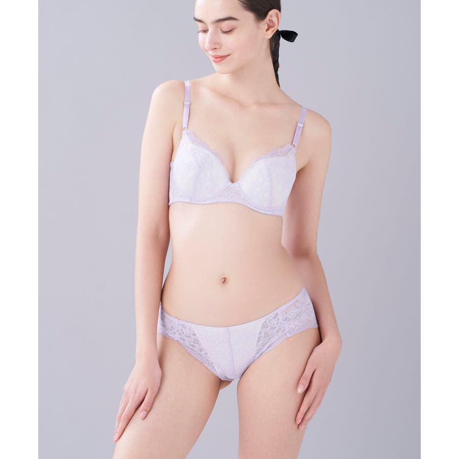 「ダブルアップ構造」上・下カップ部に厚みをもたせたダブルアップ成型(※)が、浮きを防いでボリュームアップ。※かたちづくられた立体的なカップのこと