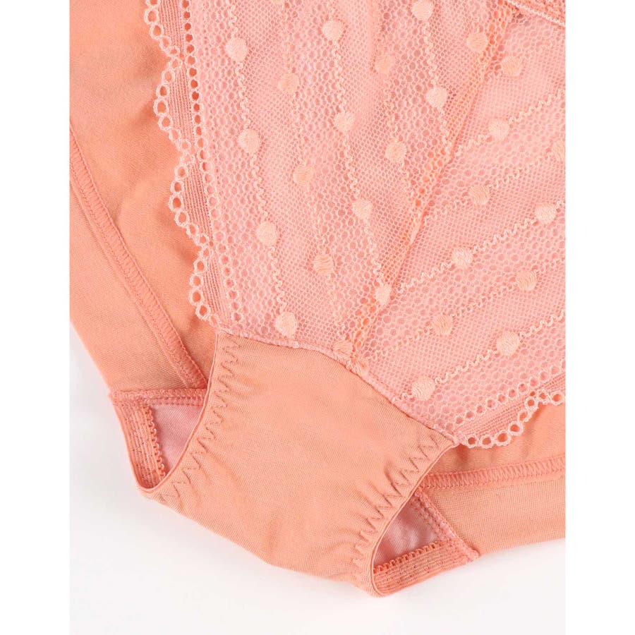 ドット柄のレースを使用したカジュアルフェミニンなデザインのセットショーツ。