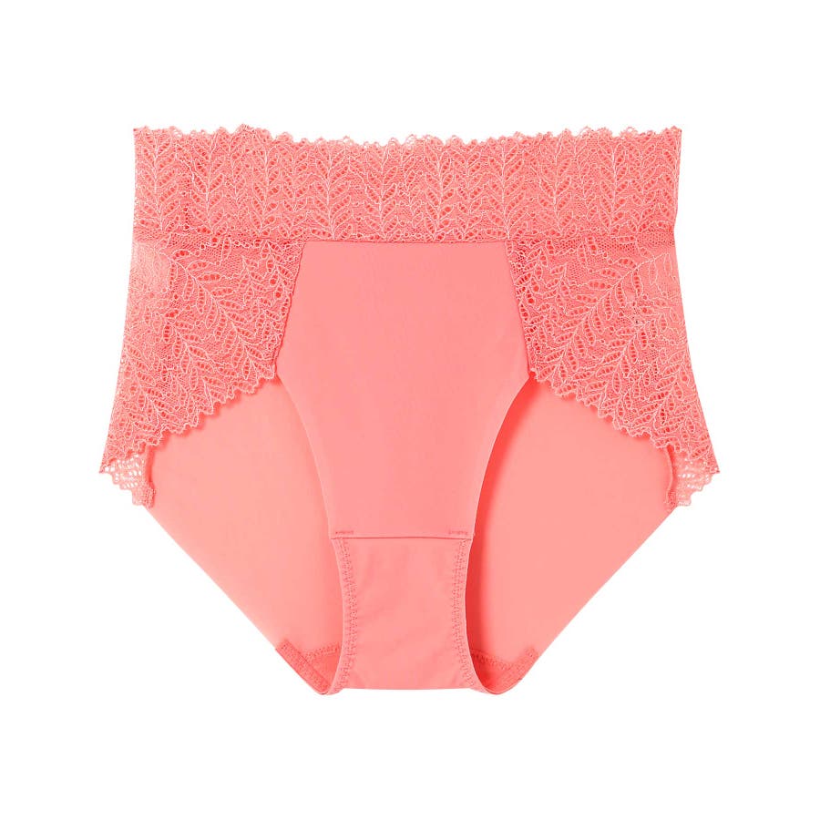 大地からニョキっと芽吹く葉の生命力が『さあ、わたし』に繋がるリーフ柄のレースをあしらったショーツ。