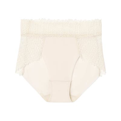 程よい巾のレースを使用し、ゴムを使用していないのでウエストがくいこみにくい。