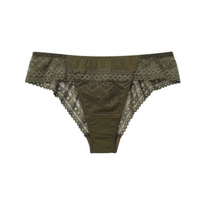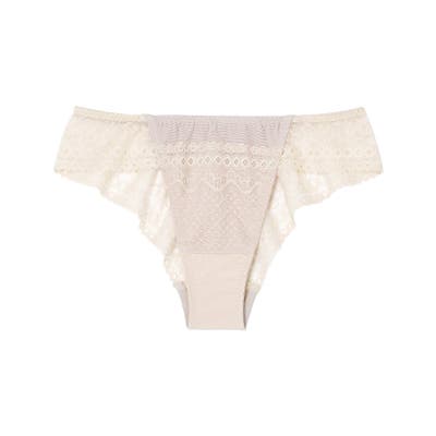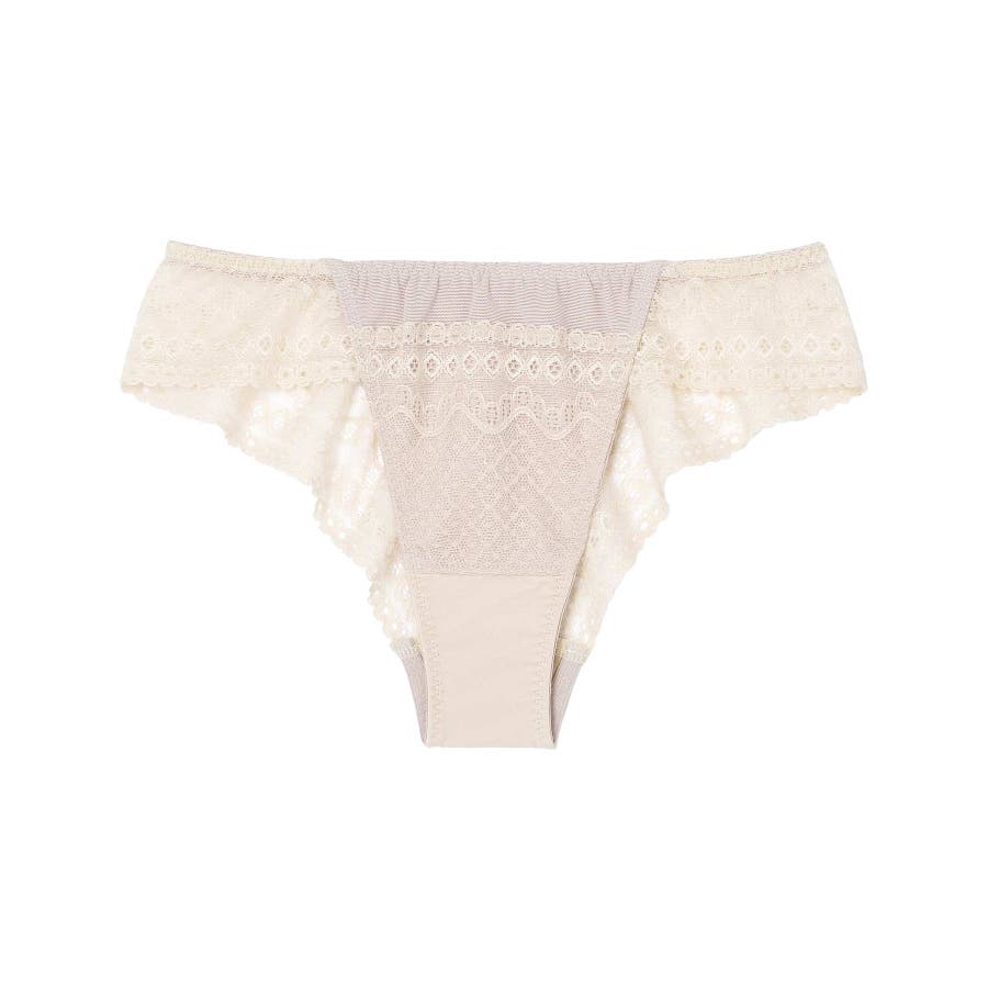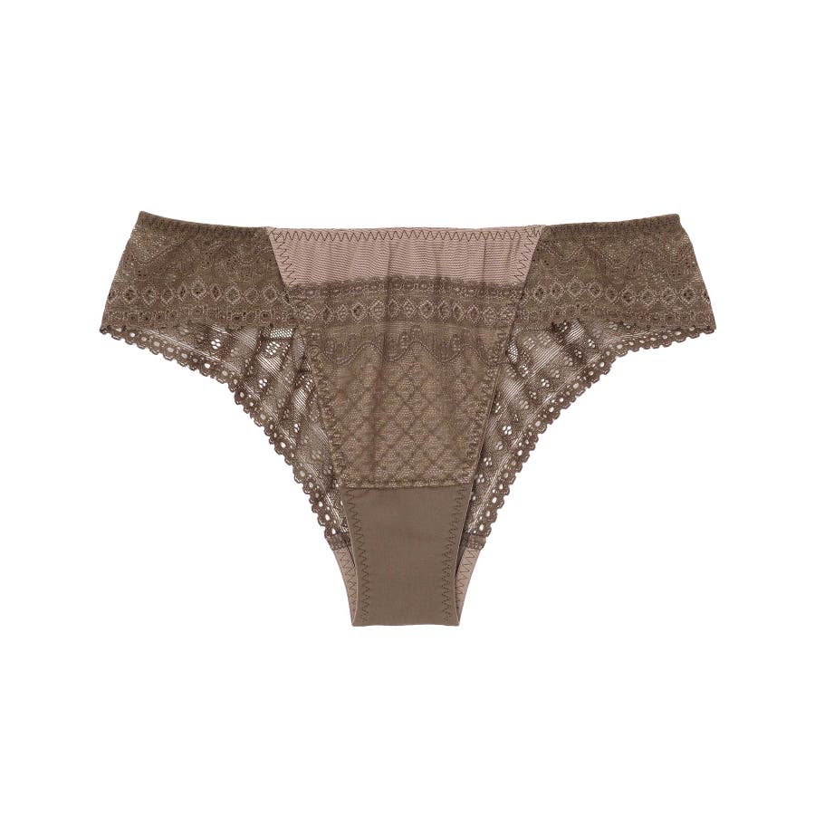 幾何学模様のレースがかっこよく、思わず肌に合わせてみたくなる透け感がポイント。