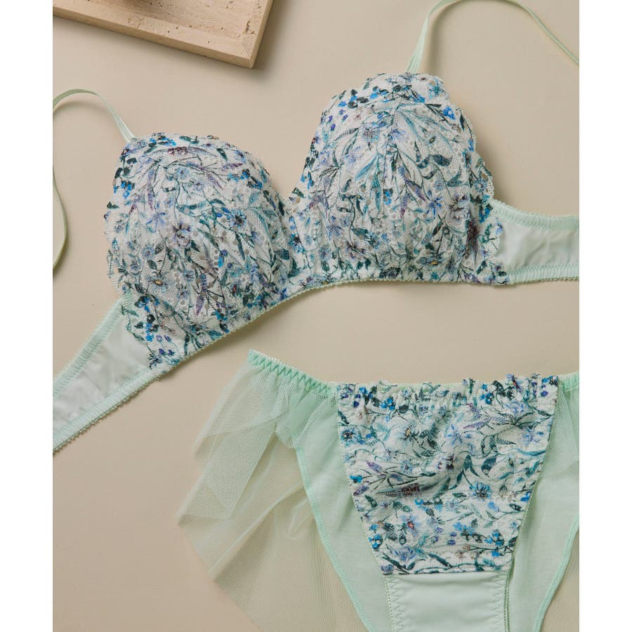 BE,GYカラーは「MEGUMI」柄、BU,LBカラーは「JESSIE'S JEWEL」柄をレースにプリント。