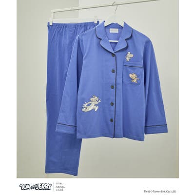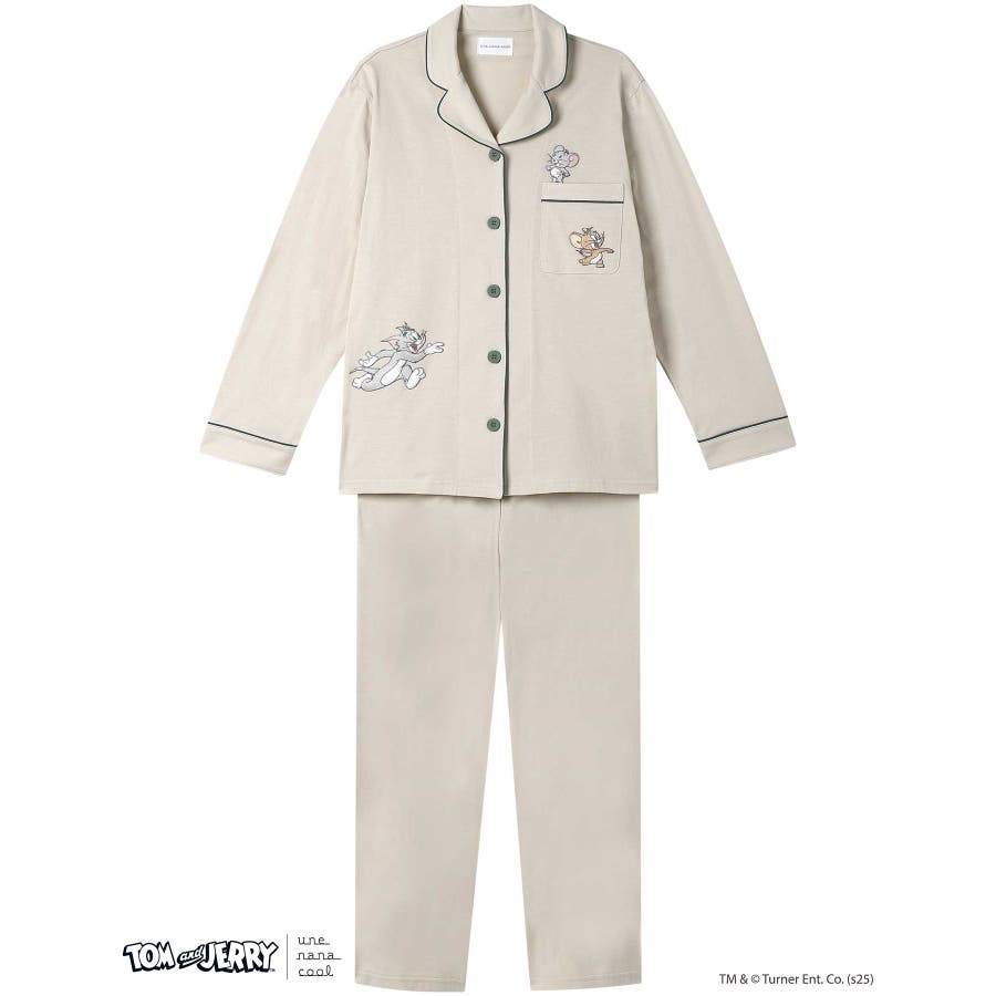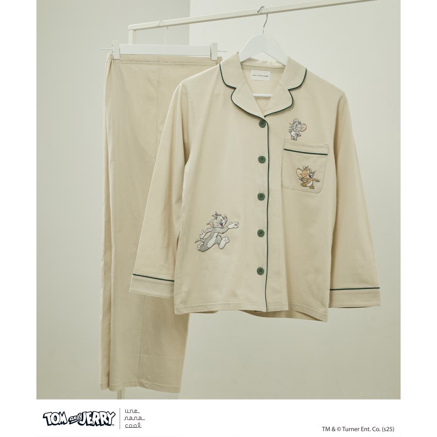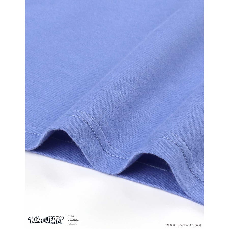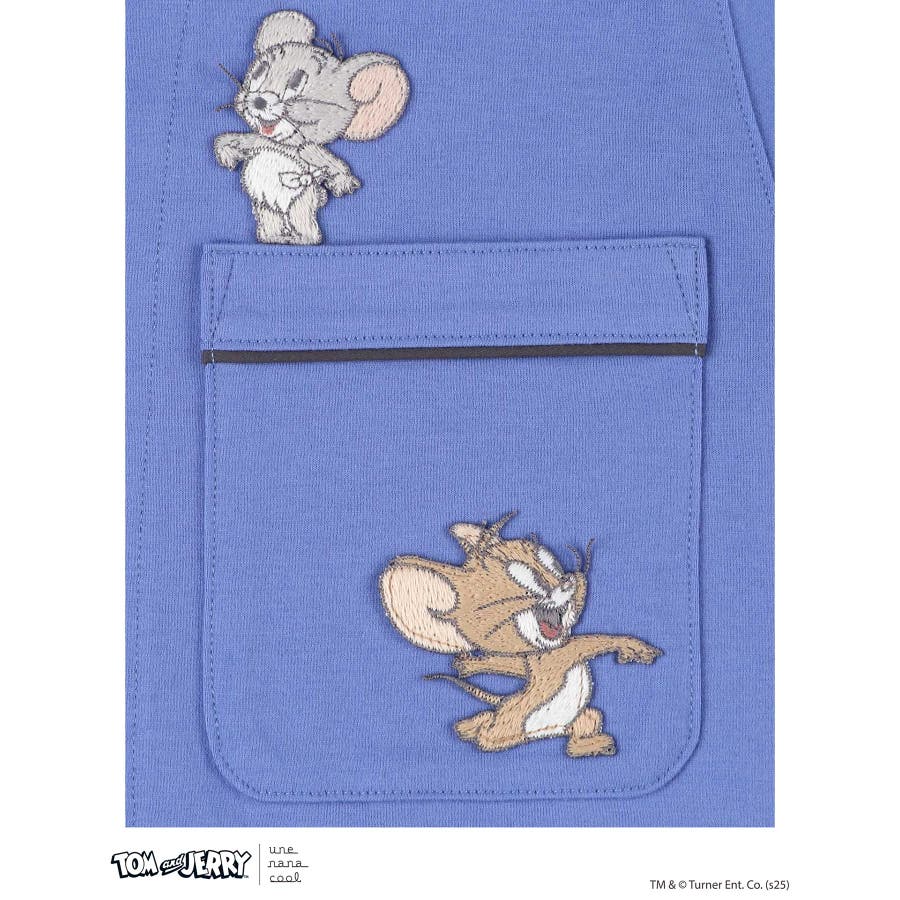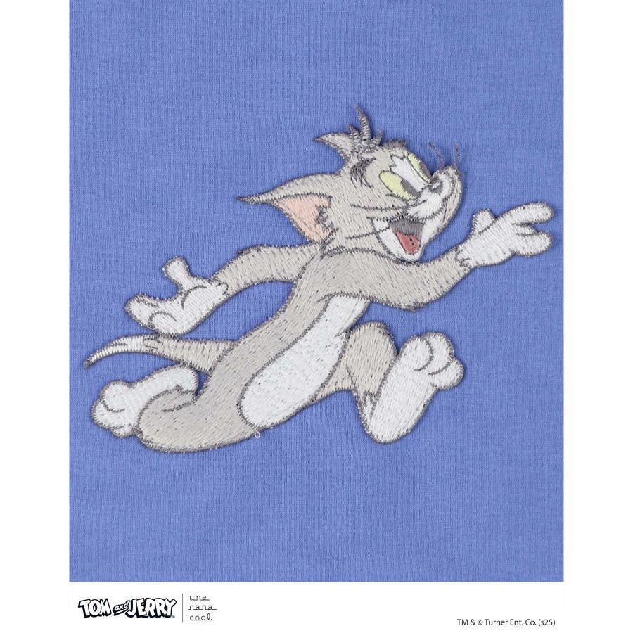 いつも楽しそうに走り回っている様子のトムと、隠れながらもここだよとトムを誘っているようなイメージのジェリー、そんなふたりを見つめるタフィーのアップリケがポイント。