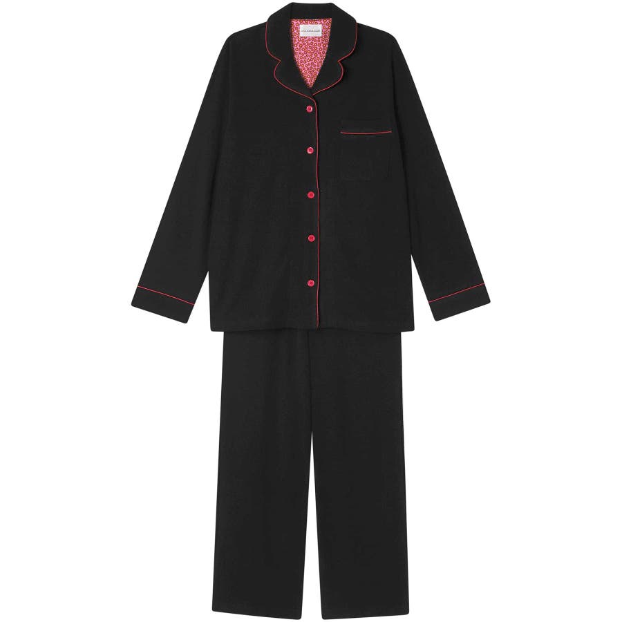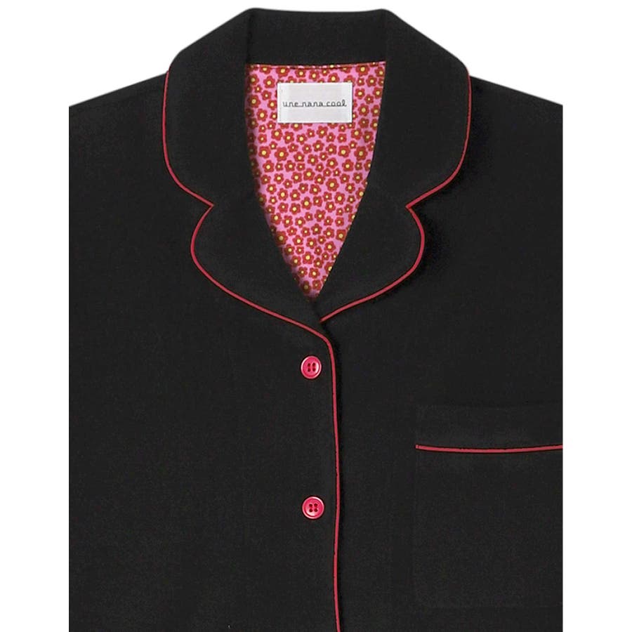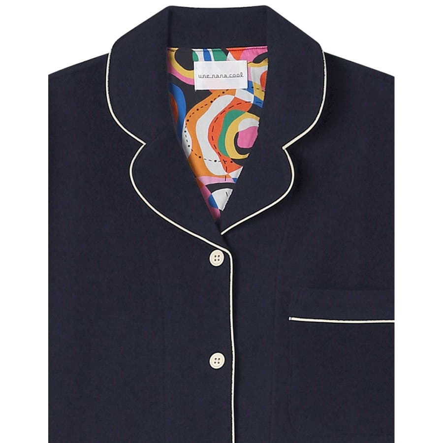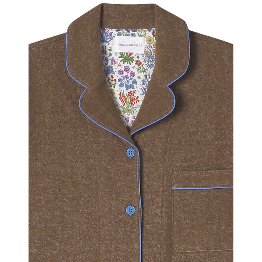 ふわふわと気持ちの良い肌触りが魅力的なパイルのパジャマの背当てに、リバティプリントの生地をあしらいました。