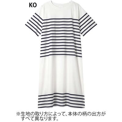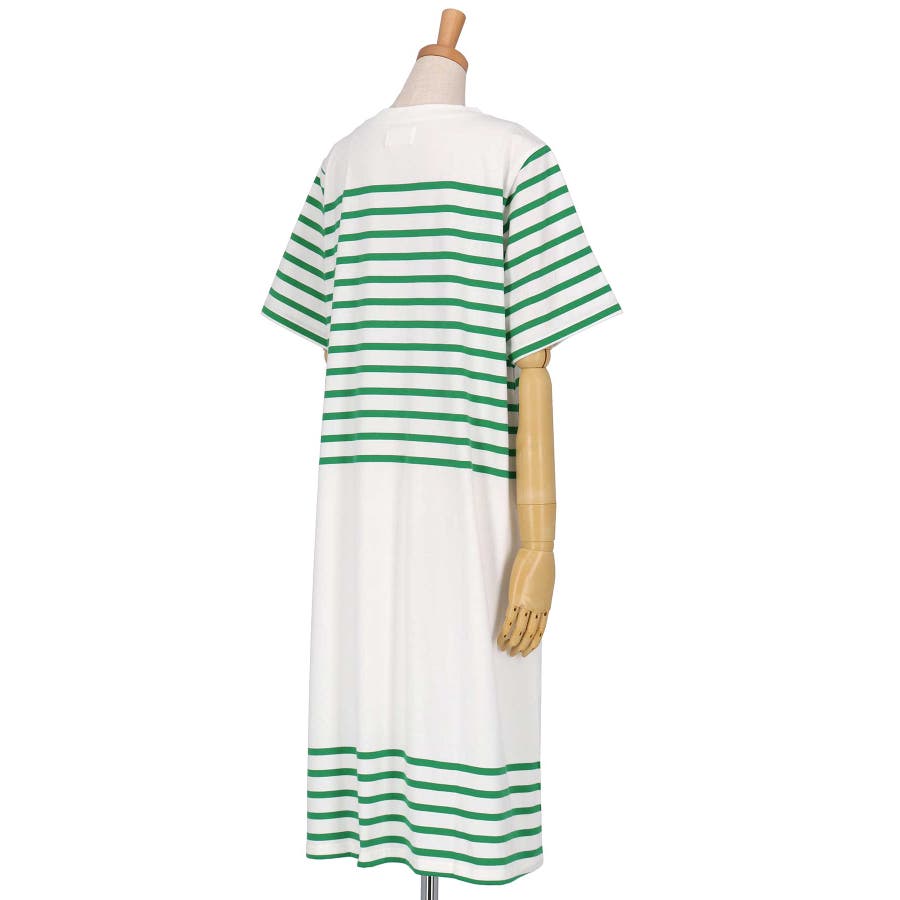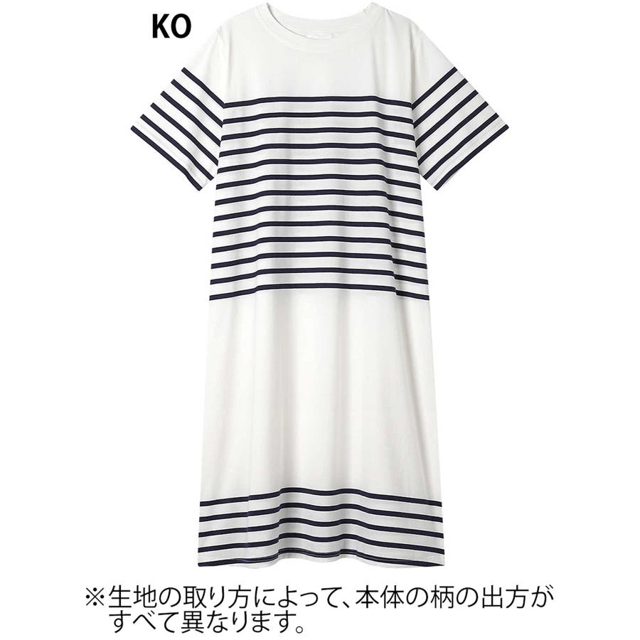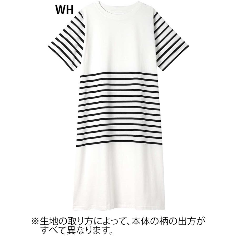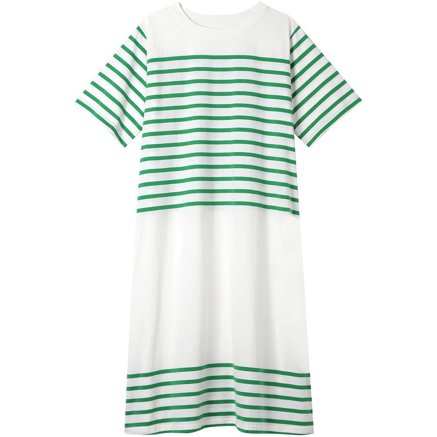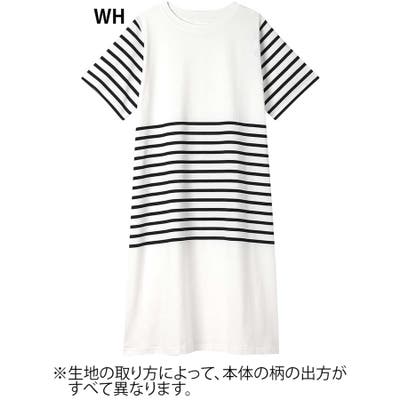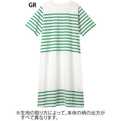 【綿100%】60ハイゲージ天竺パネルボーダー半袖ワンピース LP7500