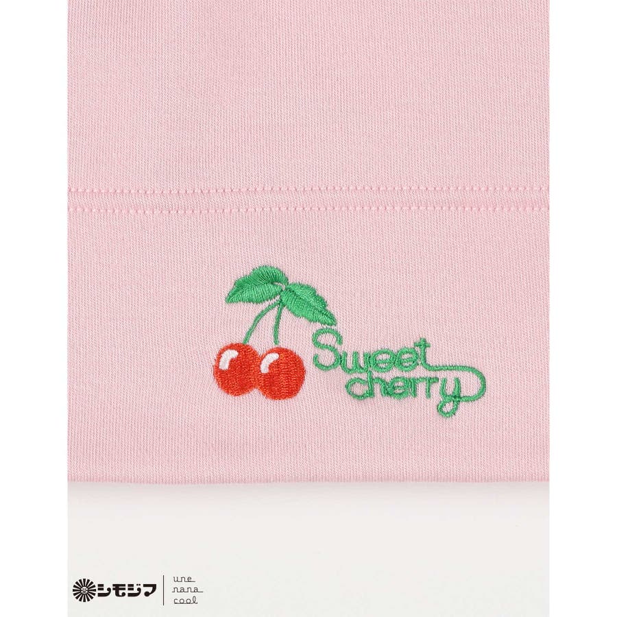 PI,「チェリー」のチェリーとロゴモチーフを刺繍し、かわいいアクセントになっています。