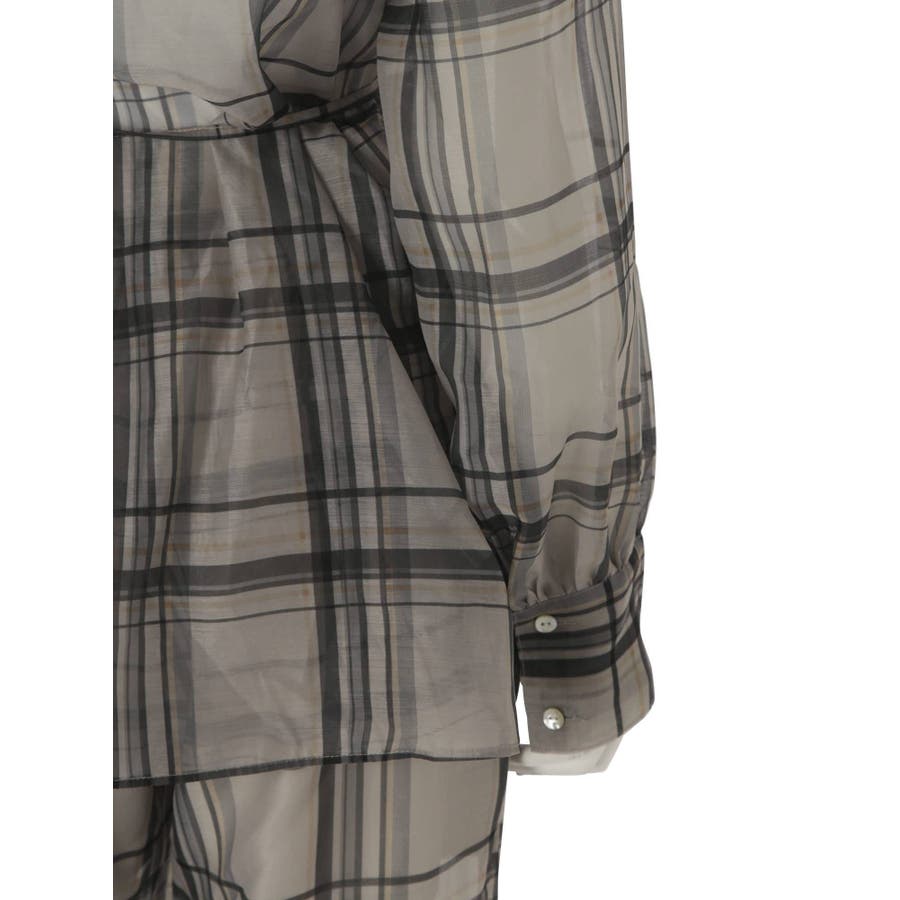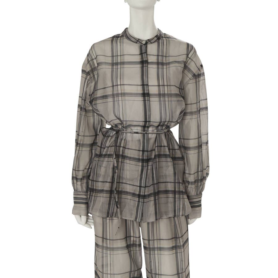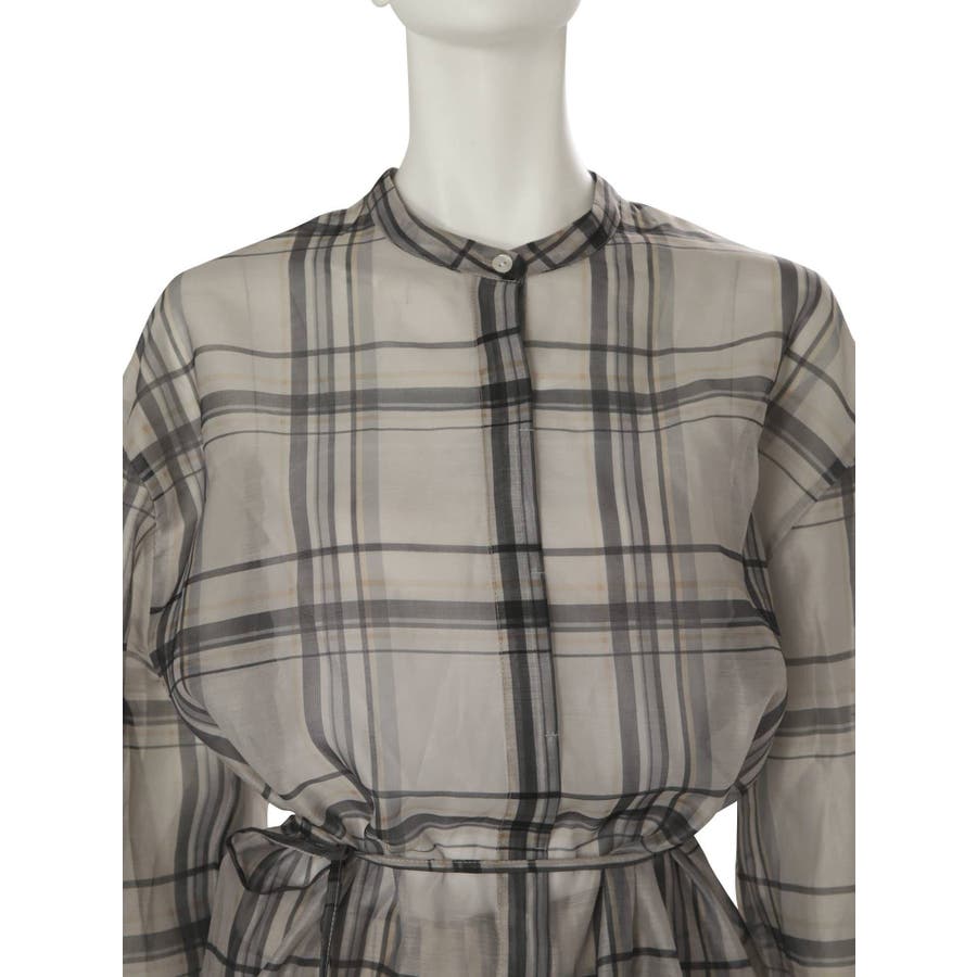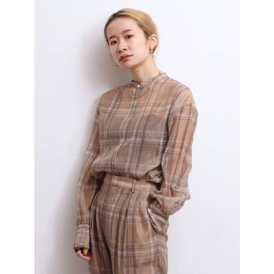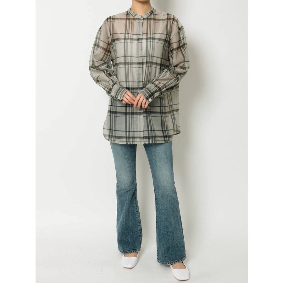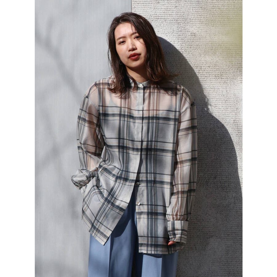 シアーチェックノーカラーシャツ