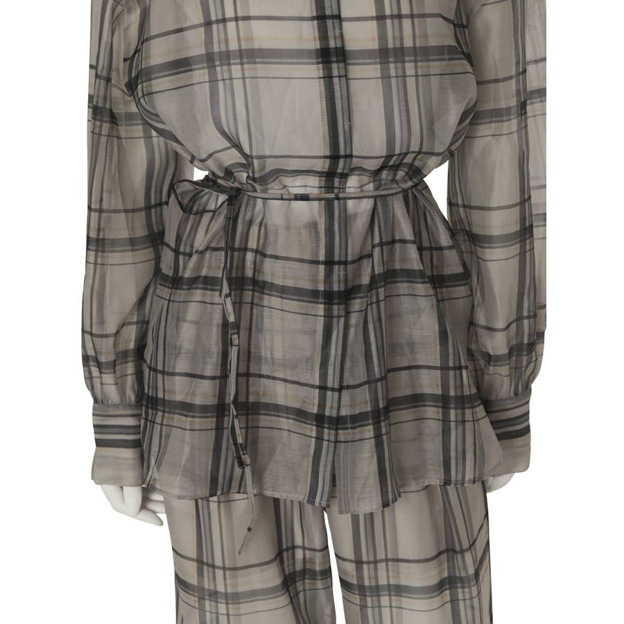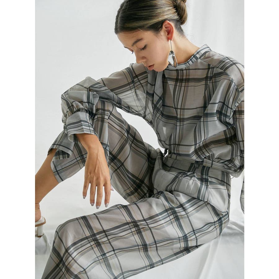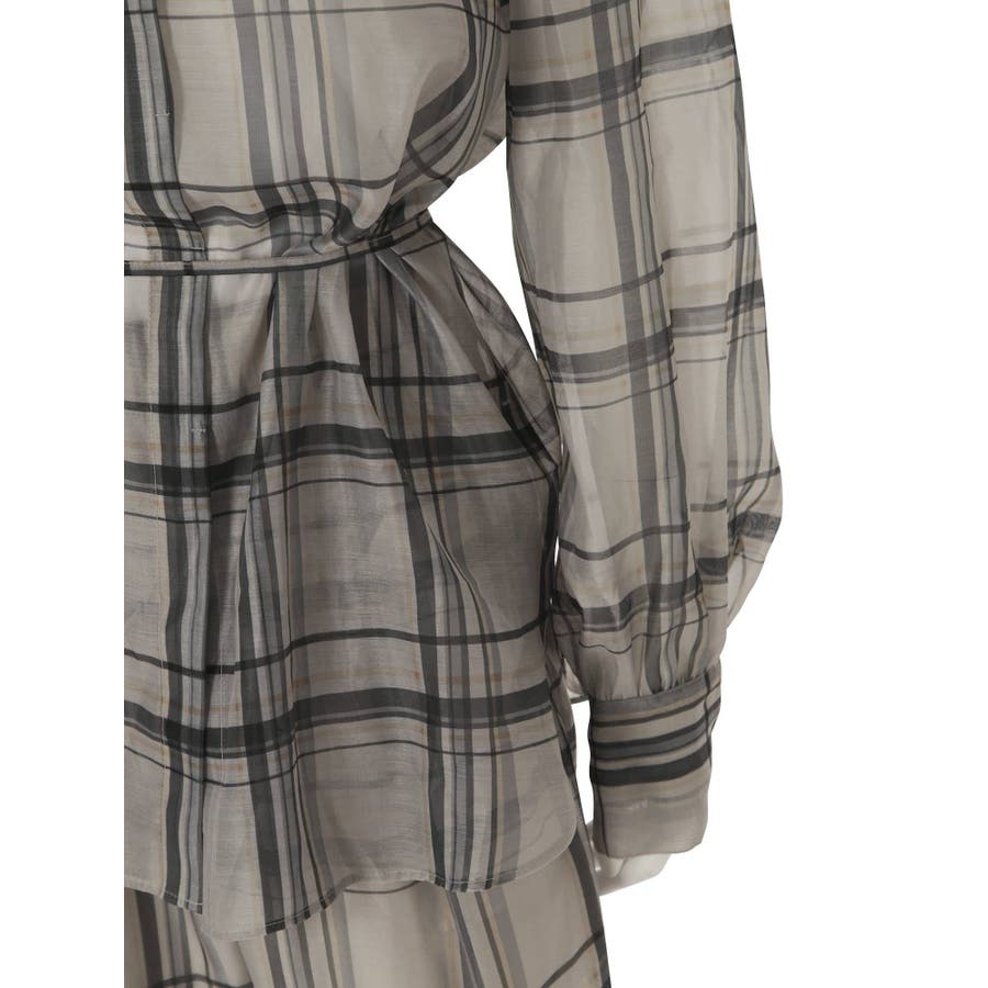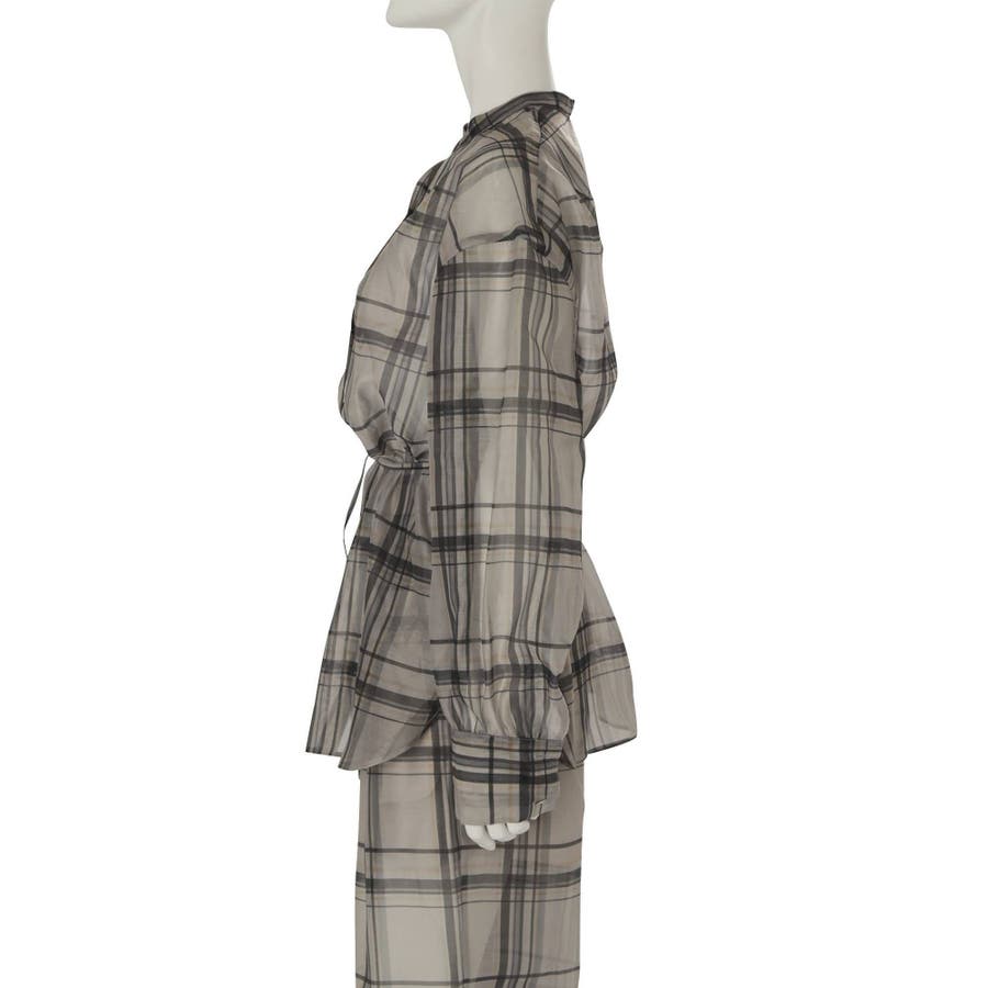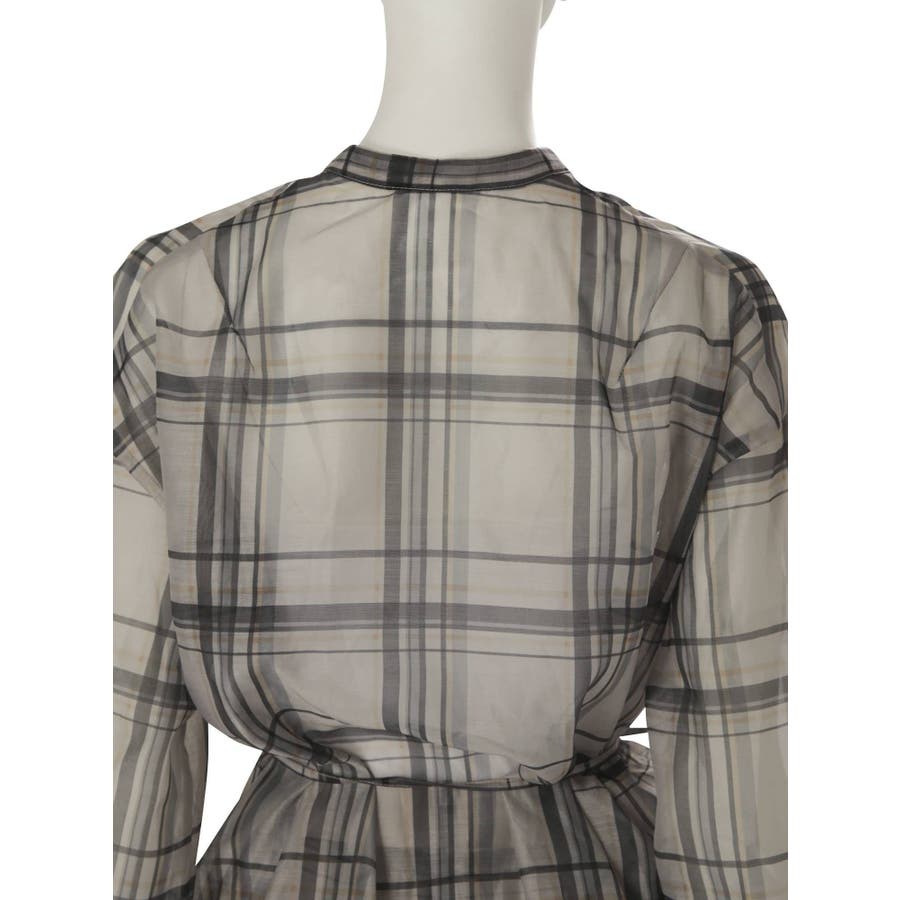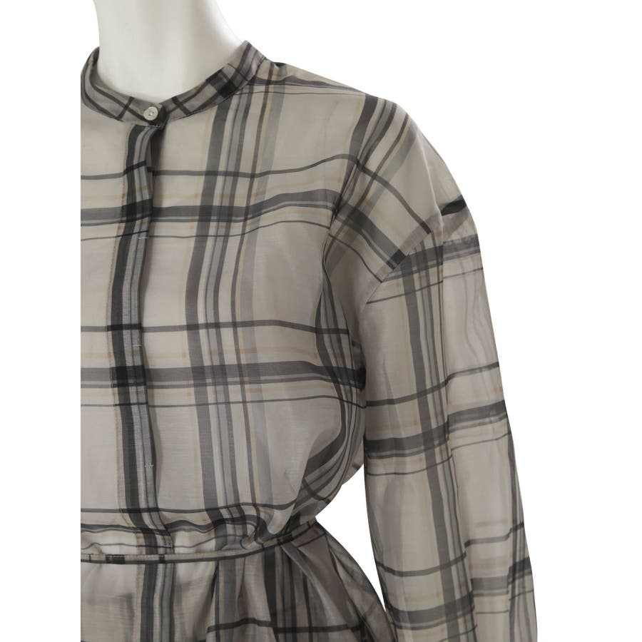 シアーチェックノーカラーシャツ