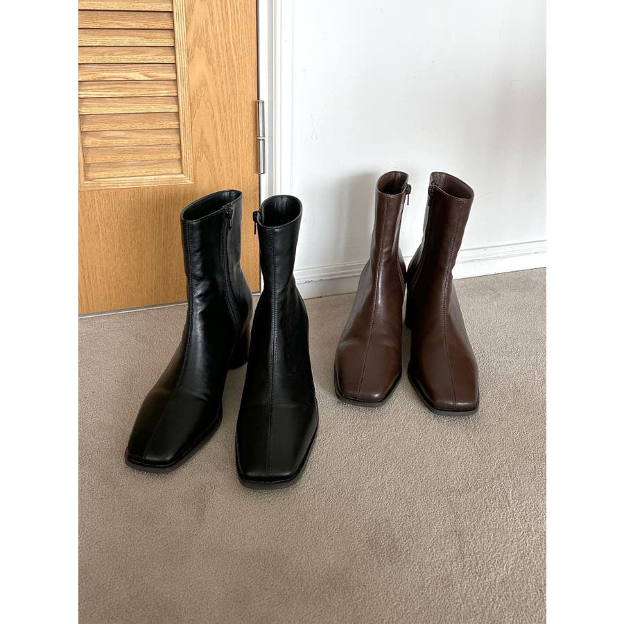 スクエアトゥミドル丈ブーツ