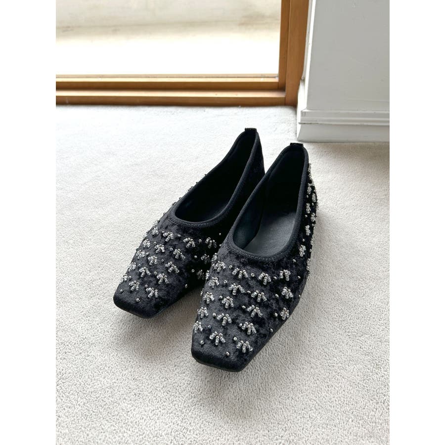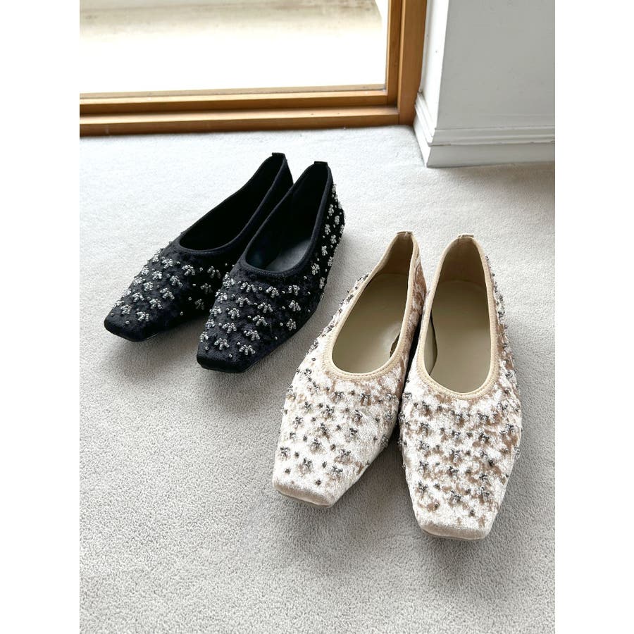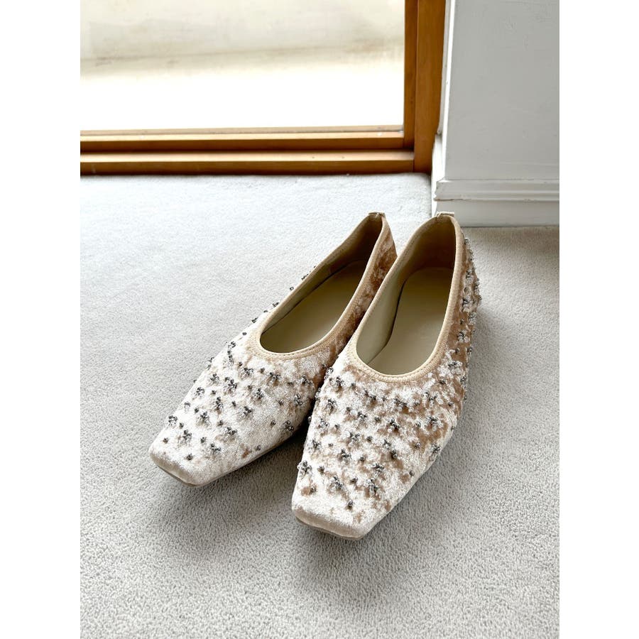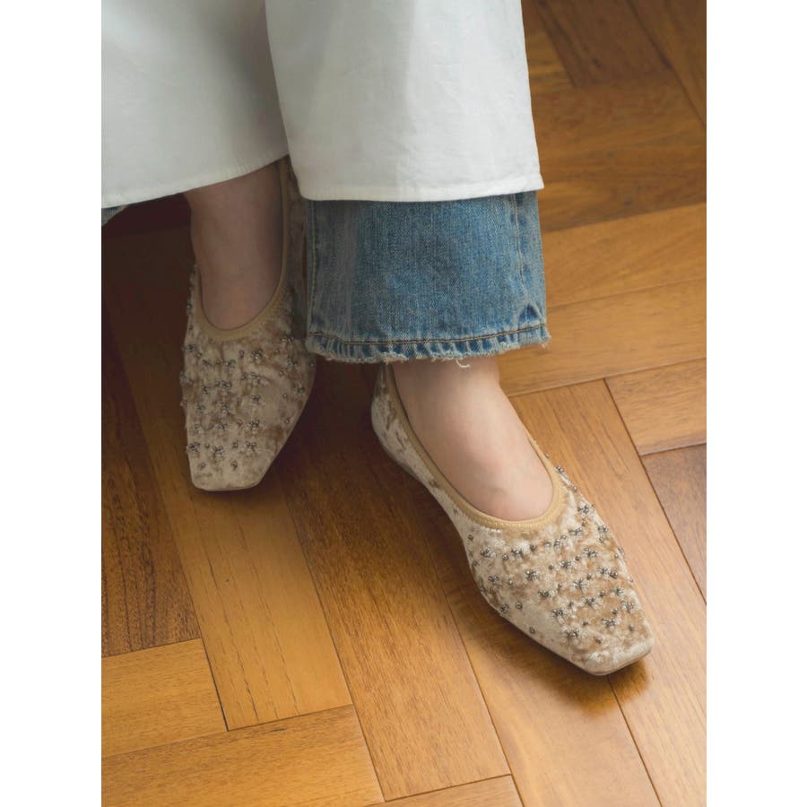 ビジューフラットシューズ