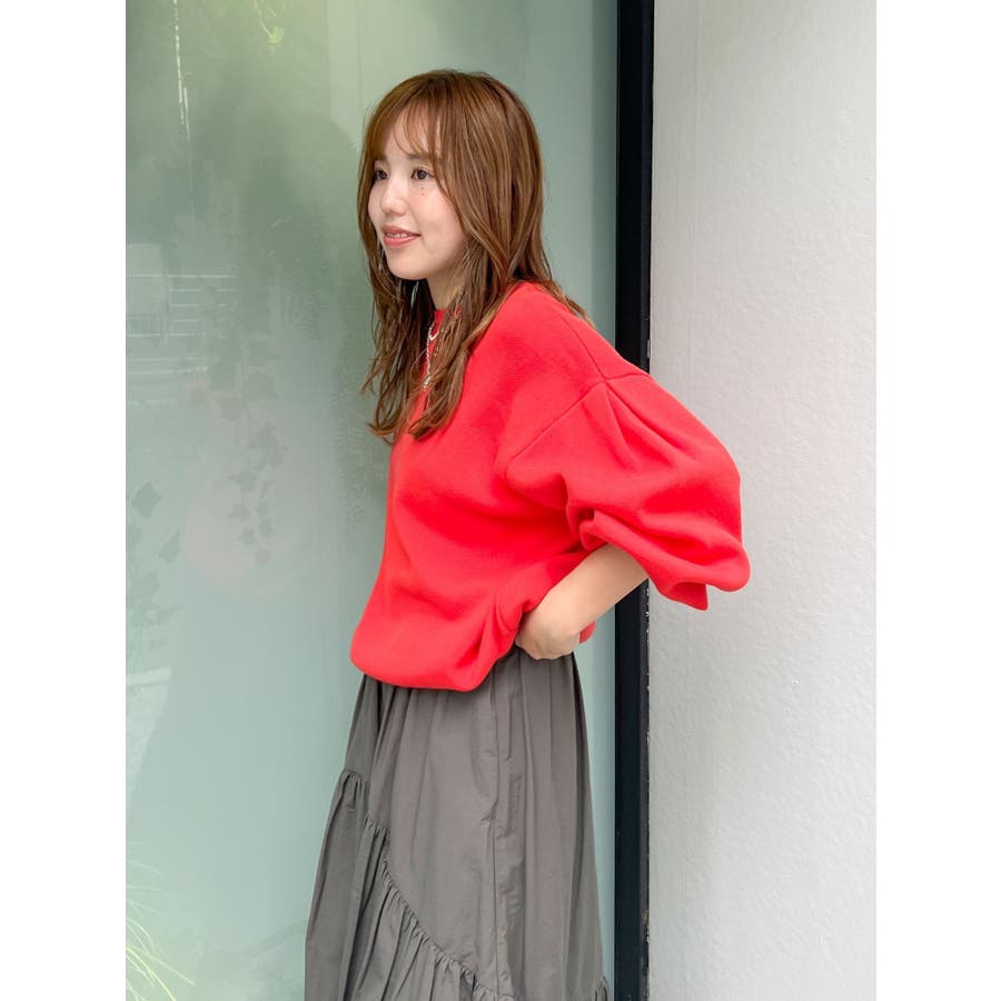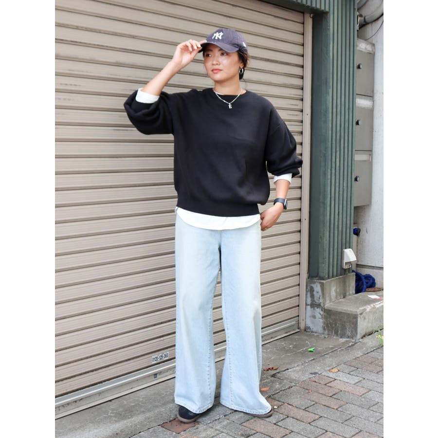 スウェットのような見た目と、肩から腕にかけて丸みが出るデザインがとても可愛くて気に入りました^_^ ピッタリしてるニットは苦手なので、ぴたぴたしてなくて、ゆとりもあり、これからの時期にぴったりです。
