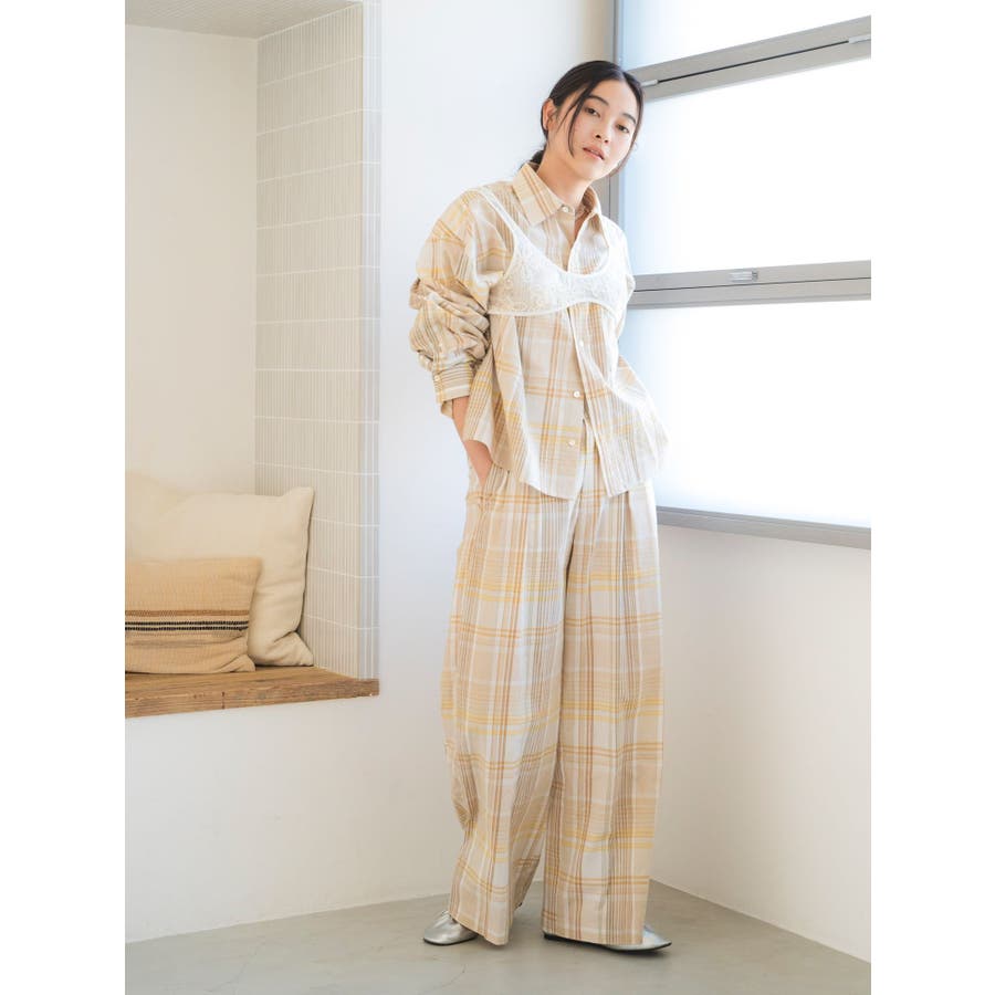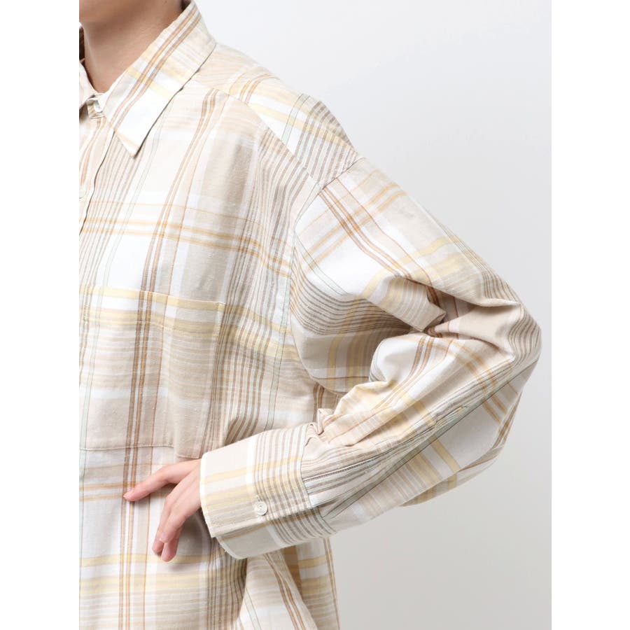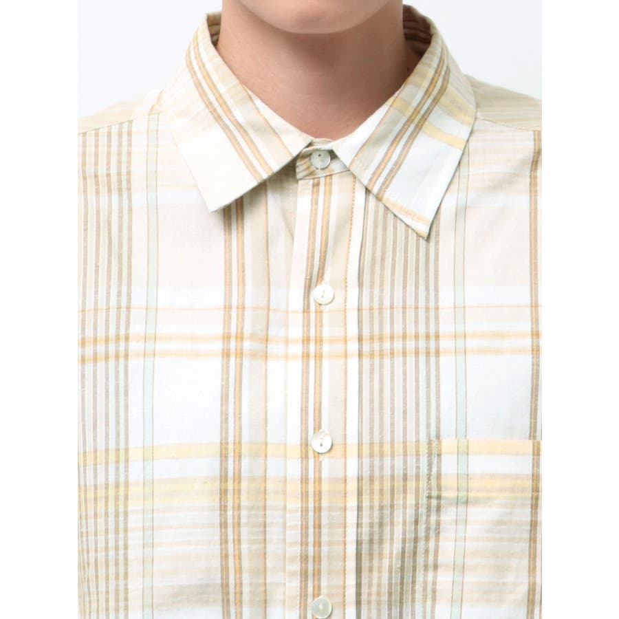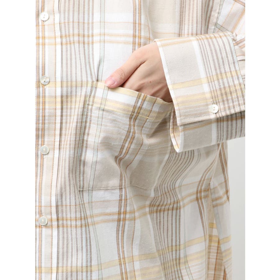 リネン混チェックシャツ