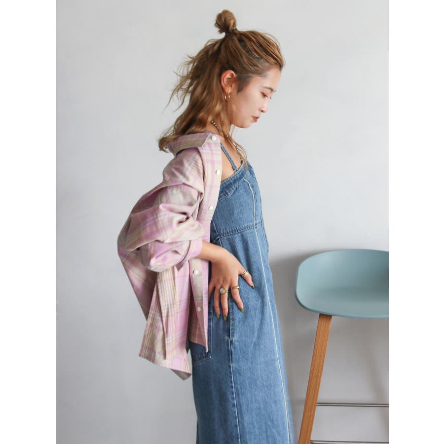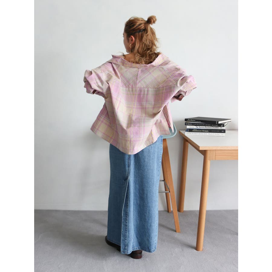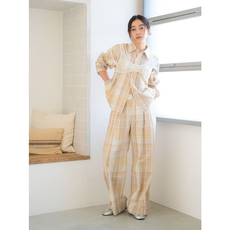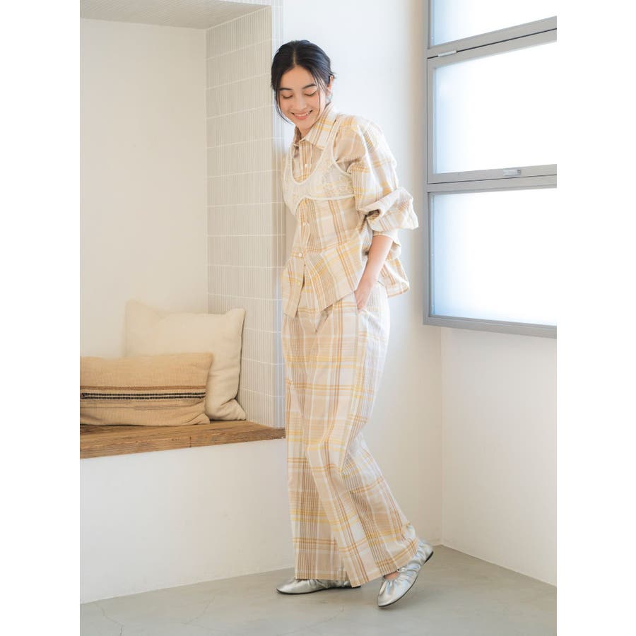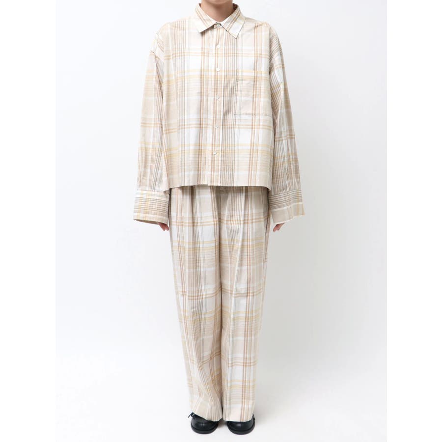 リネン混チェックシャツ