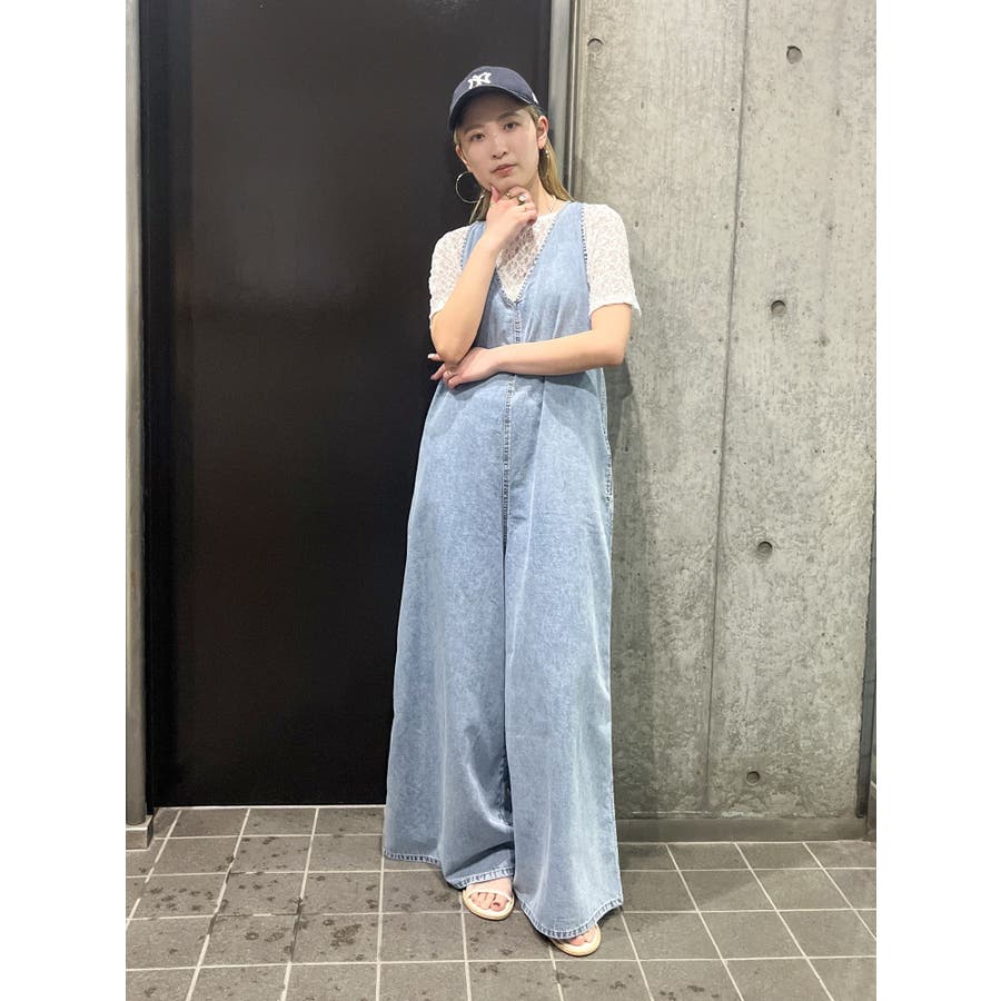 バックオープンデニムサロペット