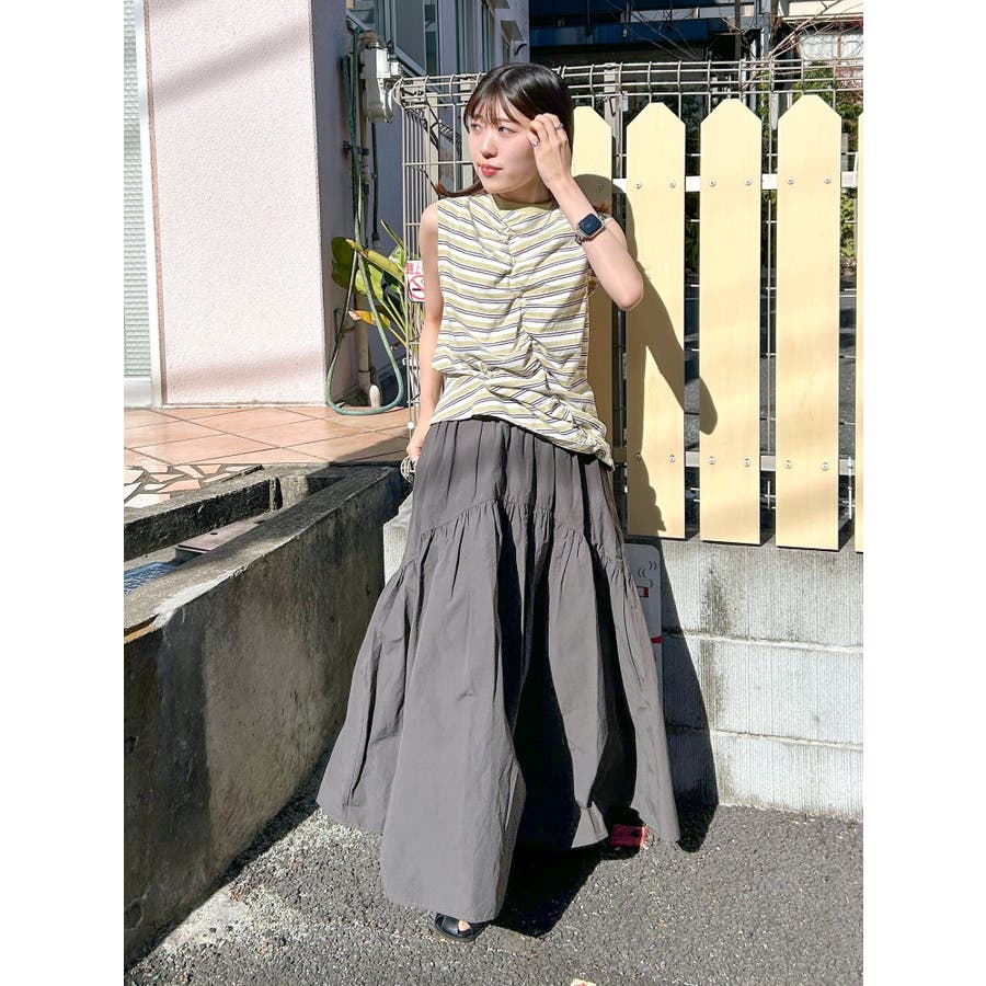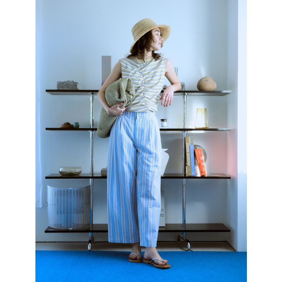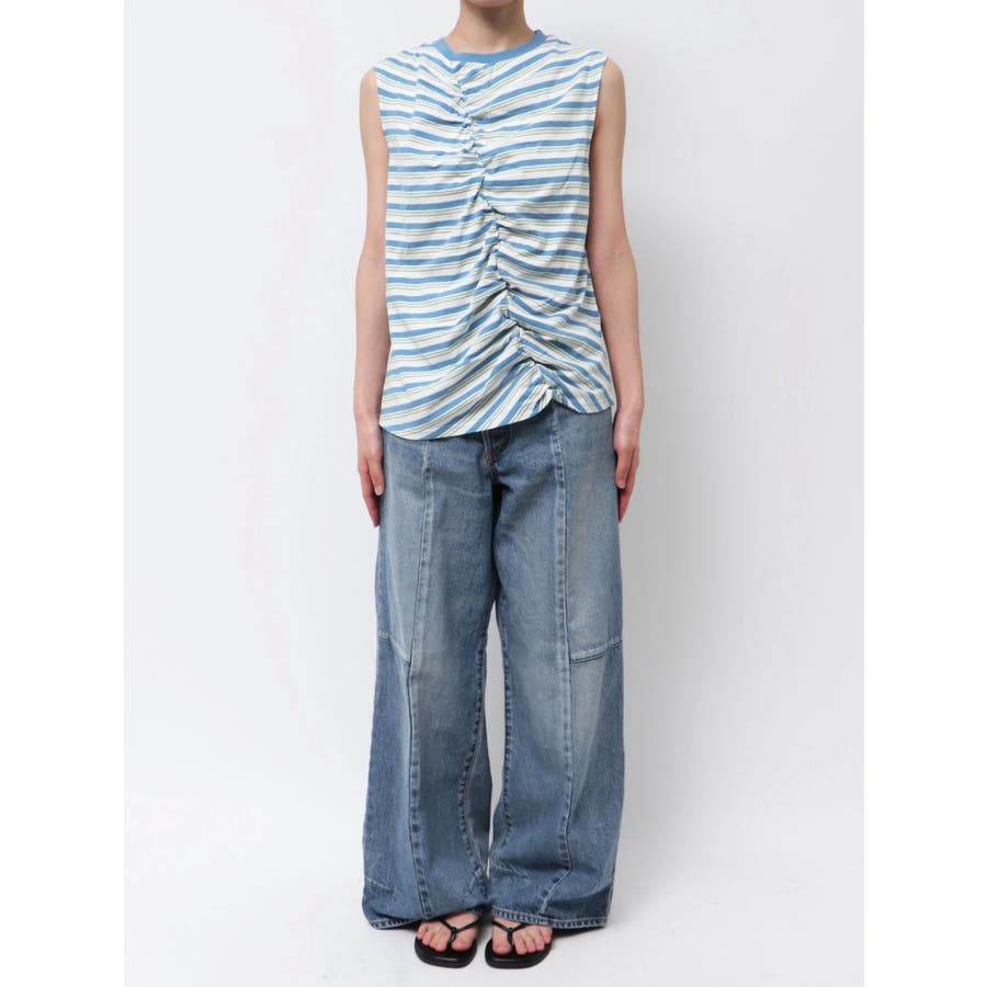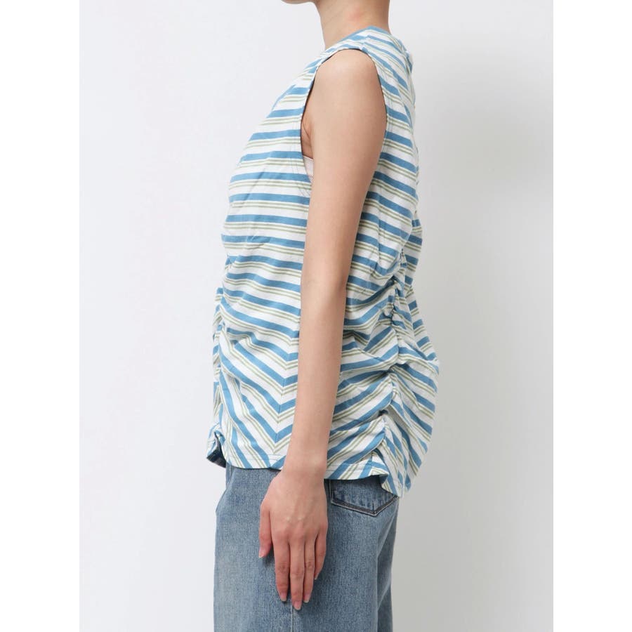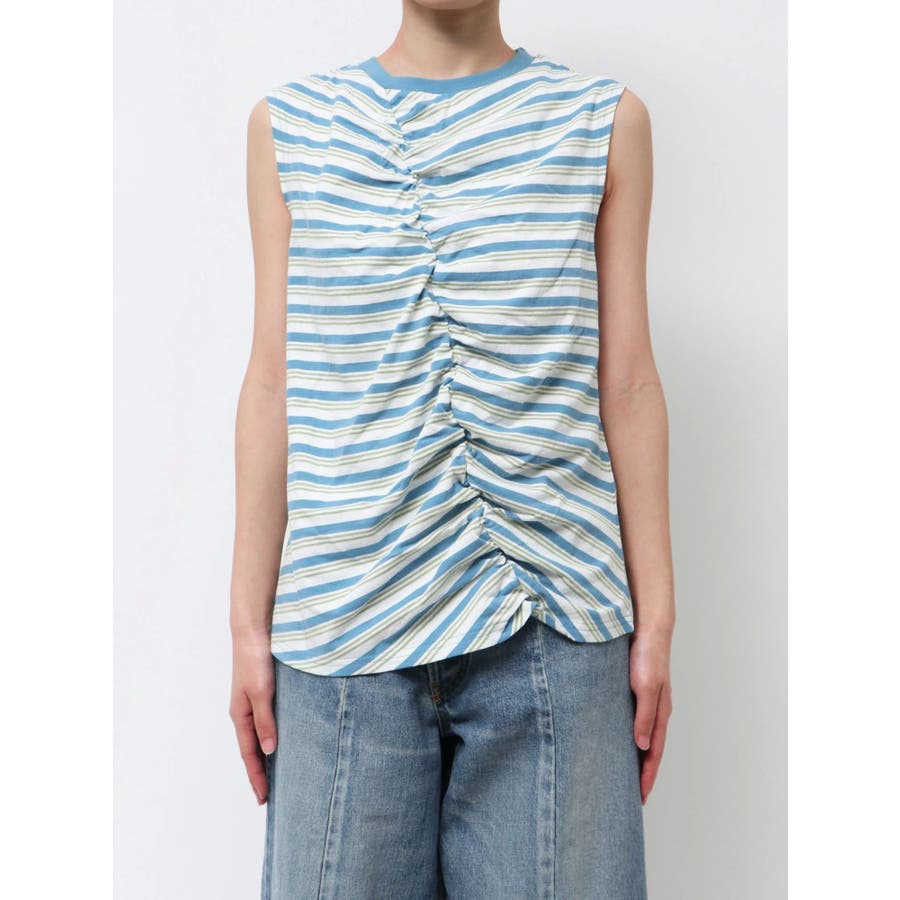 ギャザーデザインマルチボーダータンクトップ