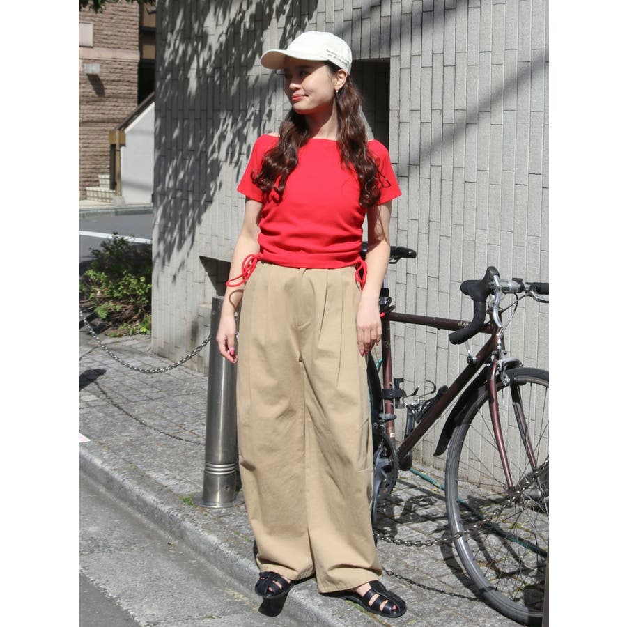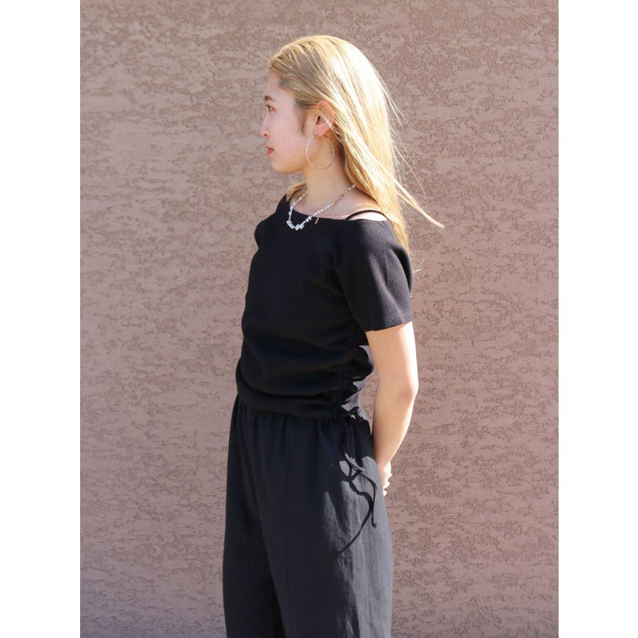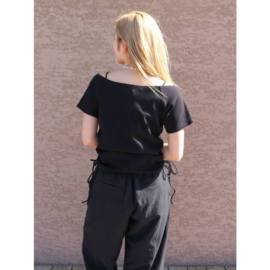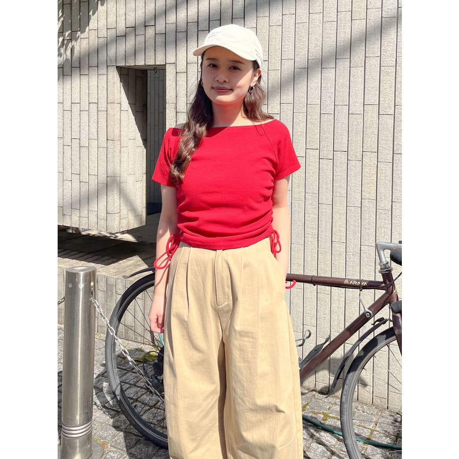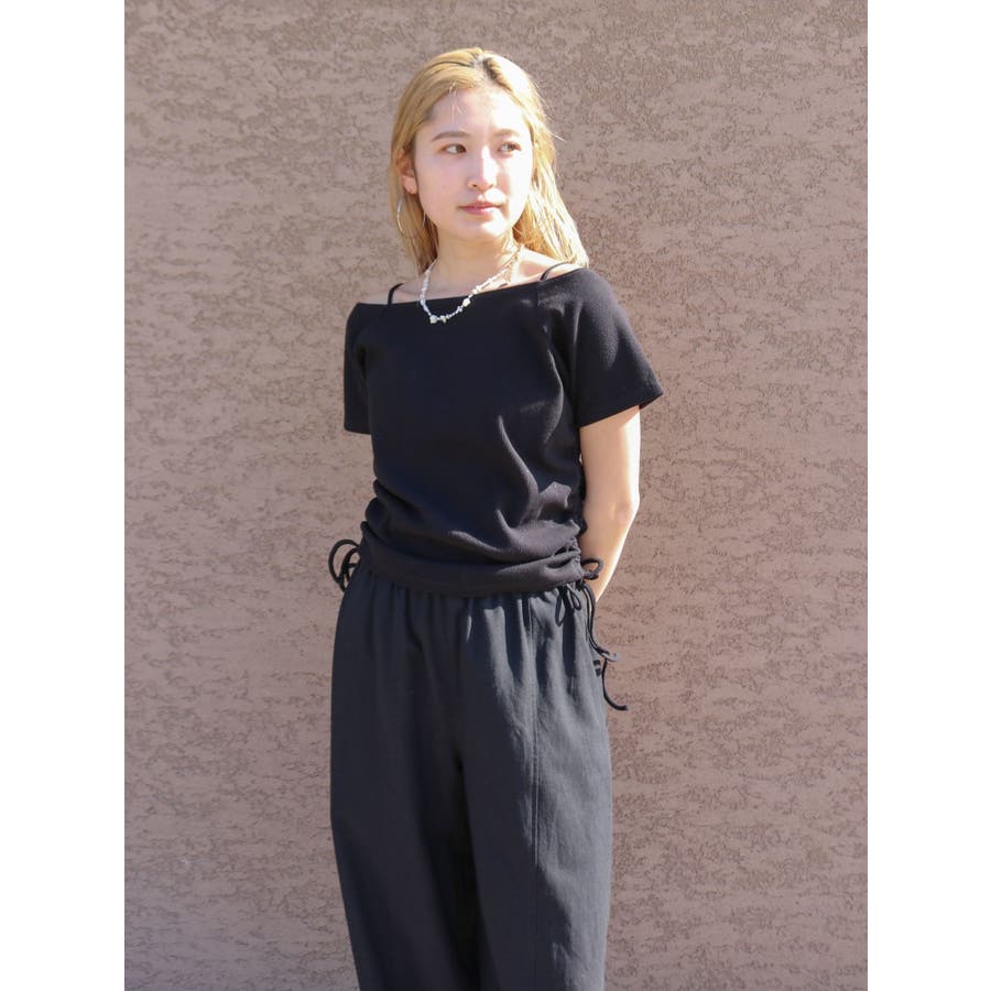 サイドギャザーボートネックTee