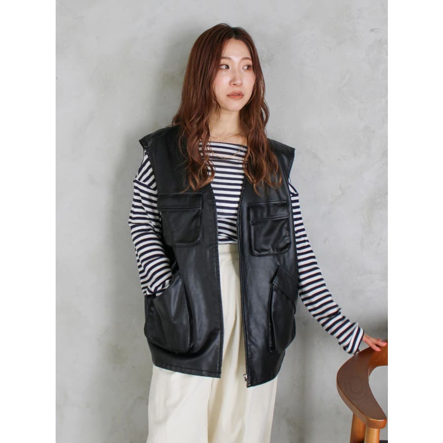 フェイクレザーベスト