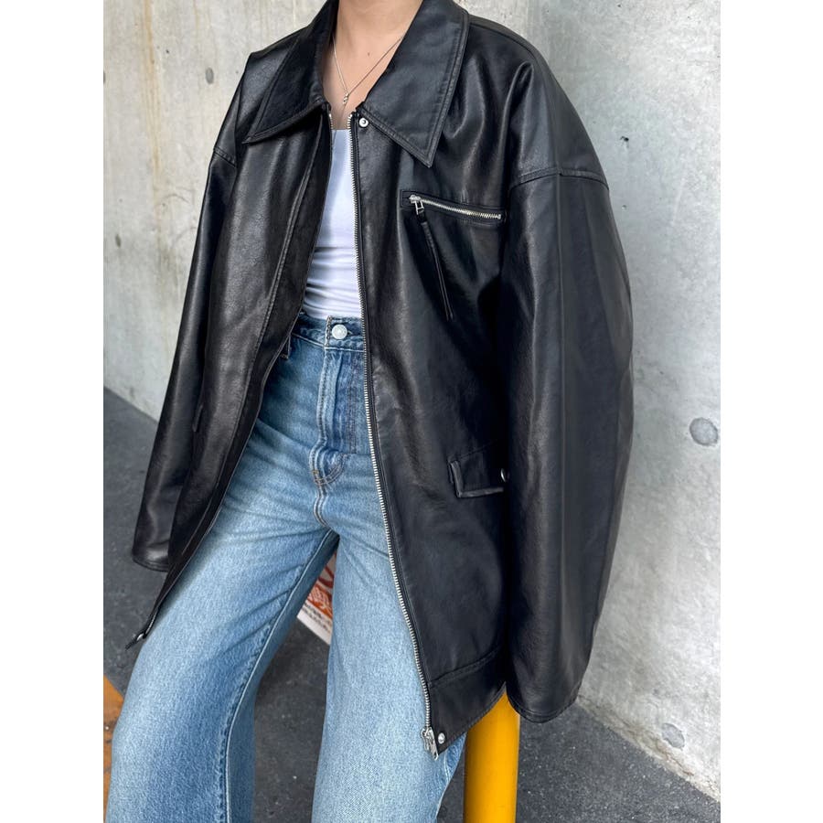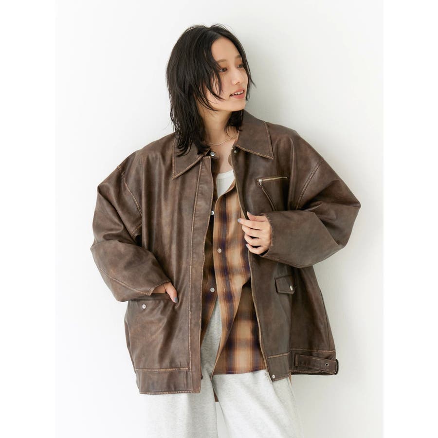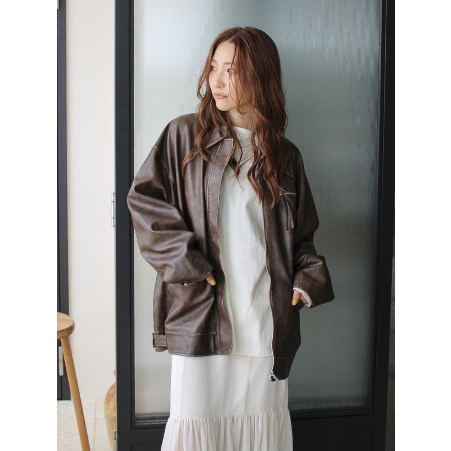 ルーズシルエットフェイクレザーブルゾン