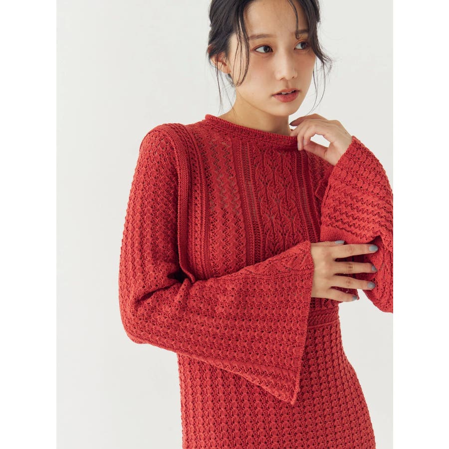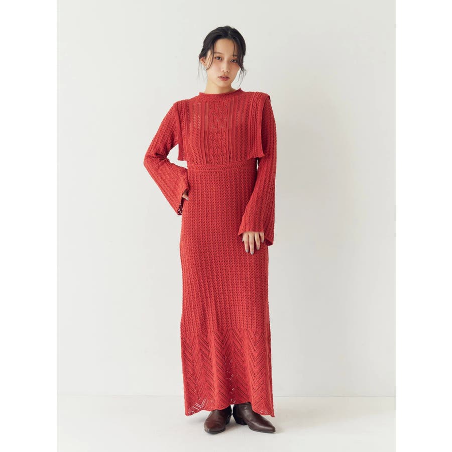 透かし編みニットワンピース
