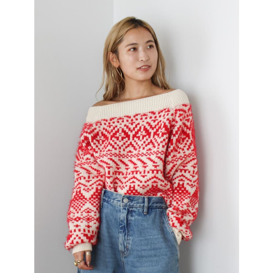 【WEB限定】オフショルジャカードニット