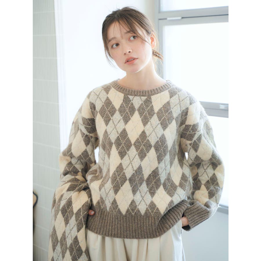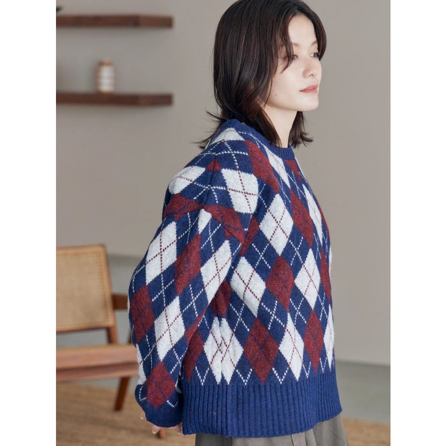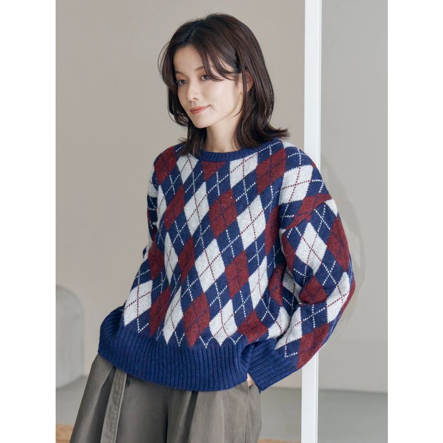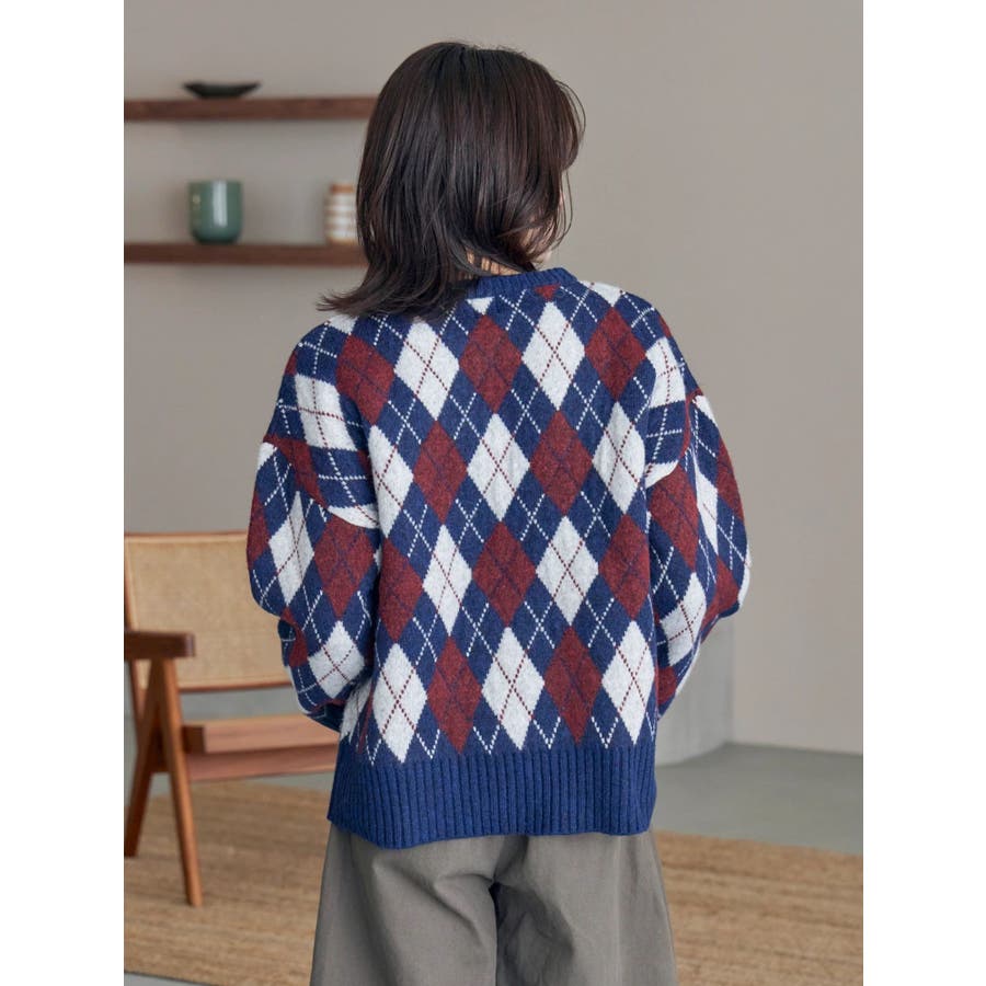 アーガイルルーズニット