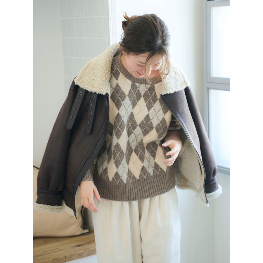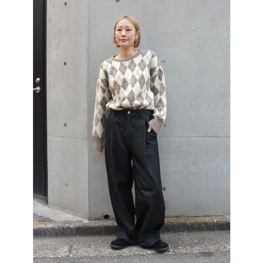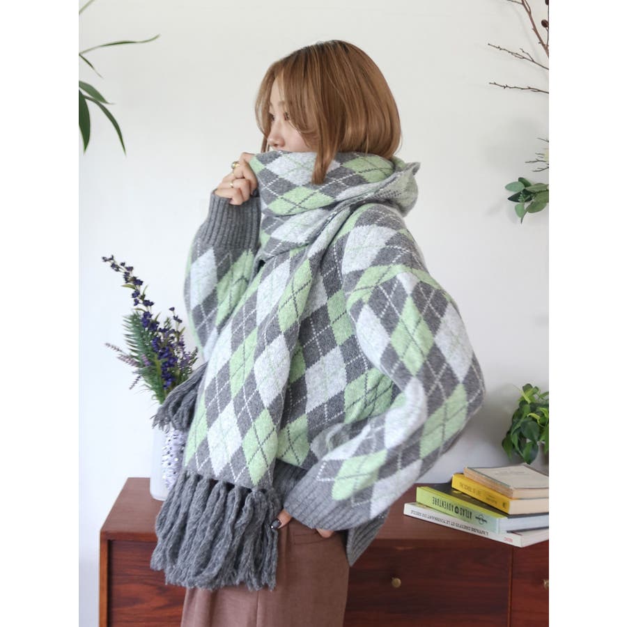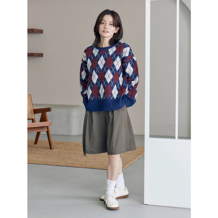 アーガイルルーズニット