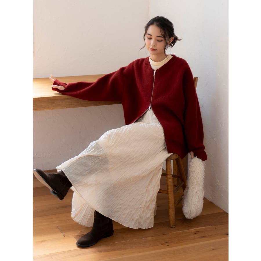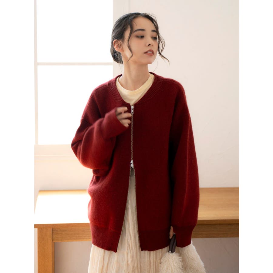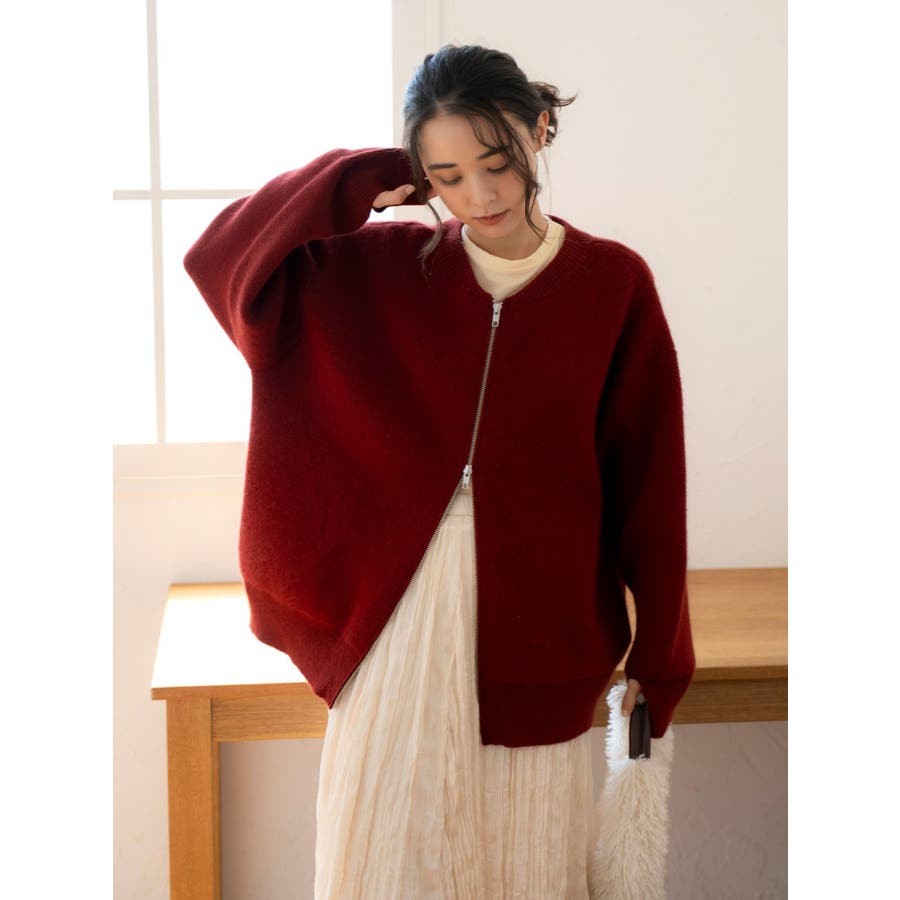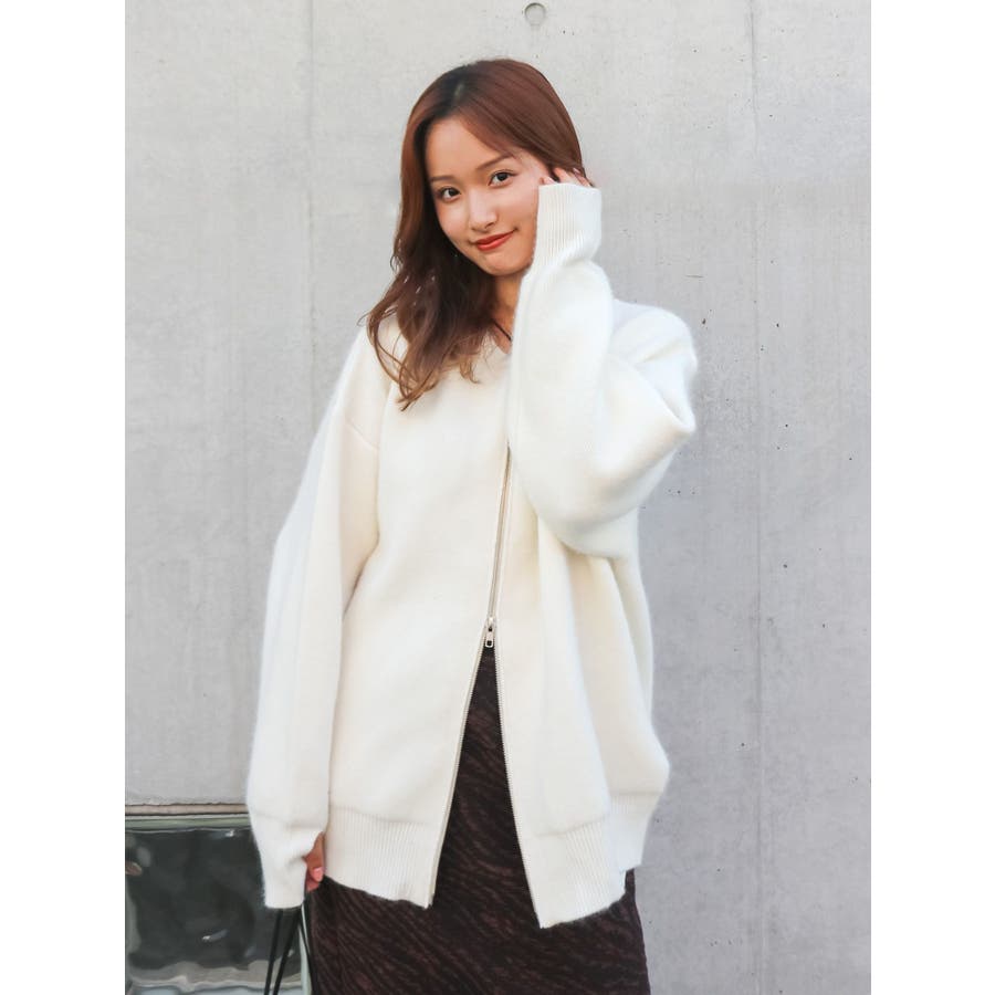 アンゴラ混ジップニットカーデ