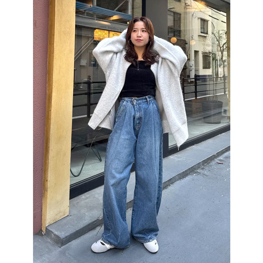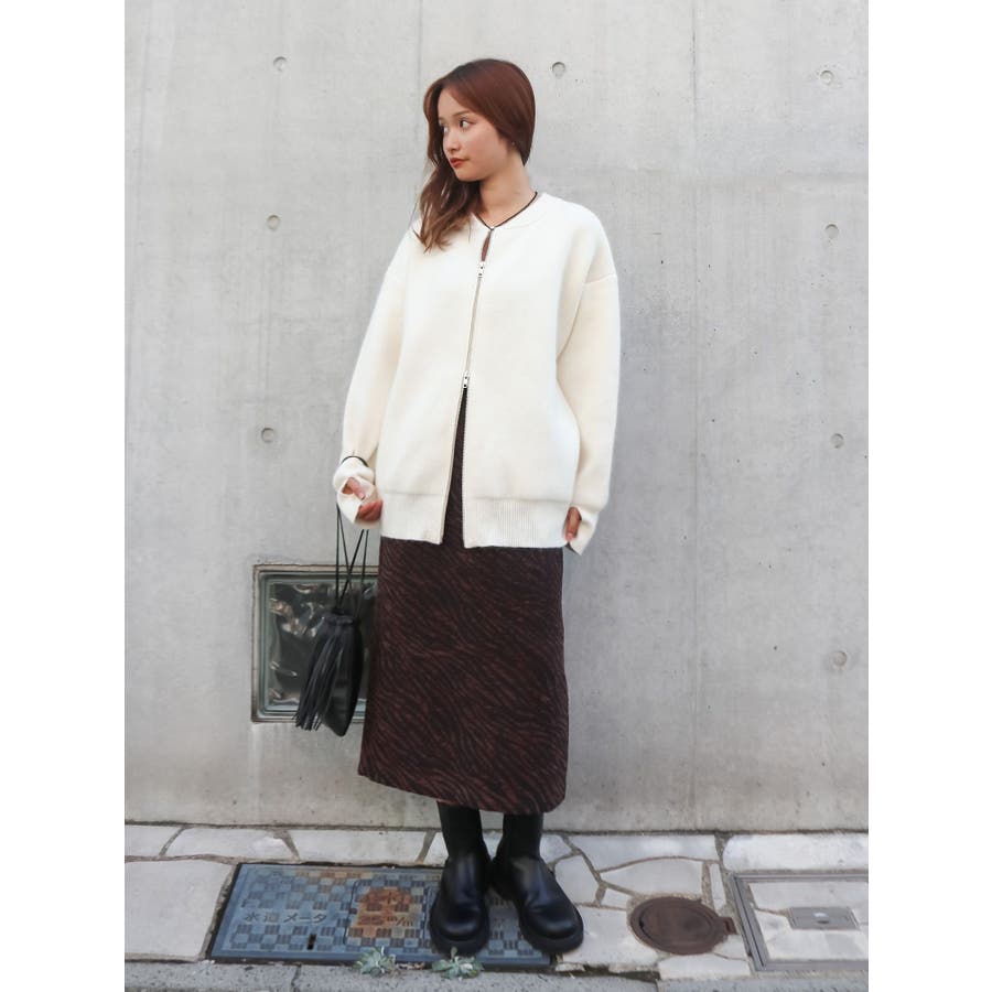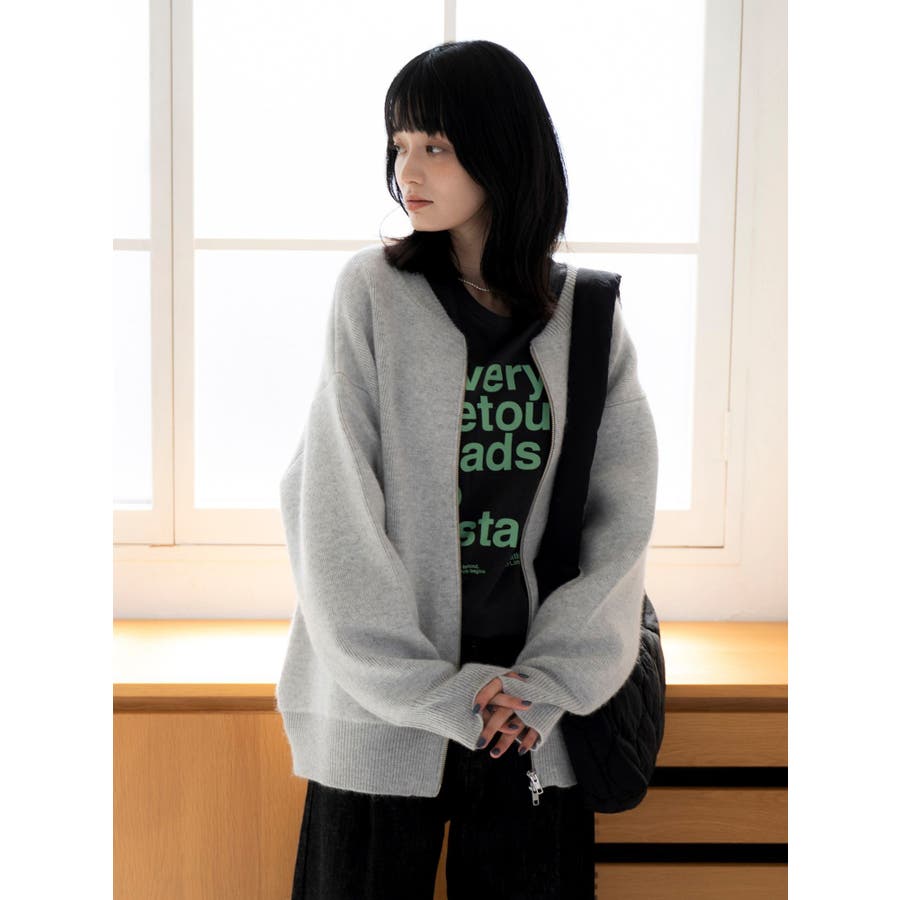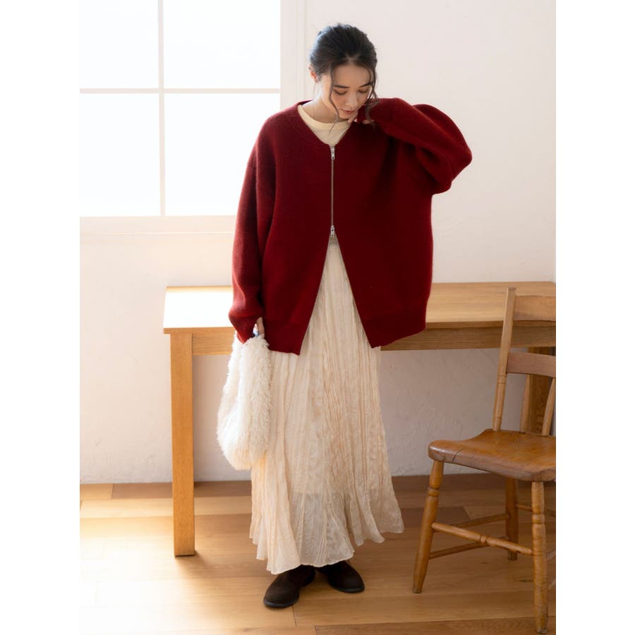 アンゴラ混ジップニットカーデ