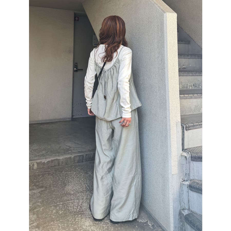 | 素材 | [パンツ]表地:レーヨン85%ナイロン10%麻5% 裏地:ポリエステル80%綿20% [キャミ]表地:レーヨン85%ナイロン10%麻5% 裏地:ポリエステル80%綿20% |