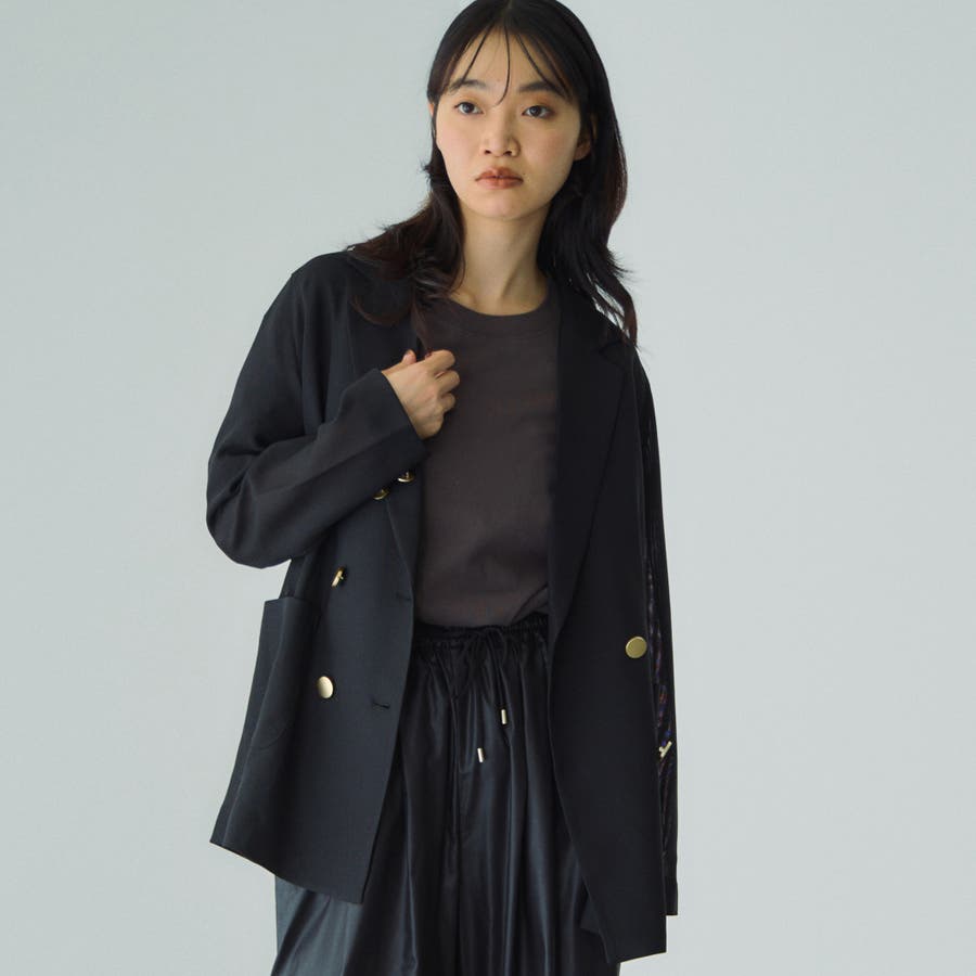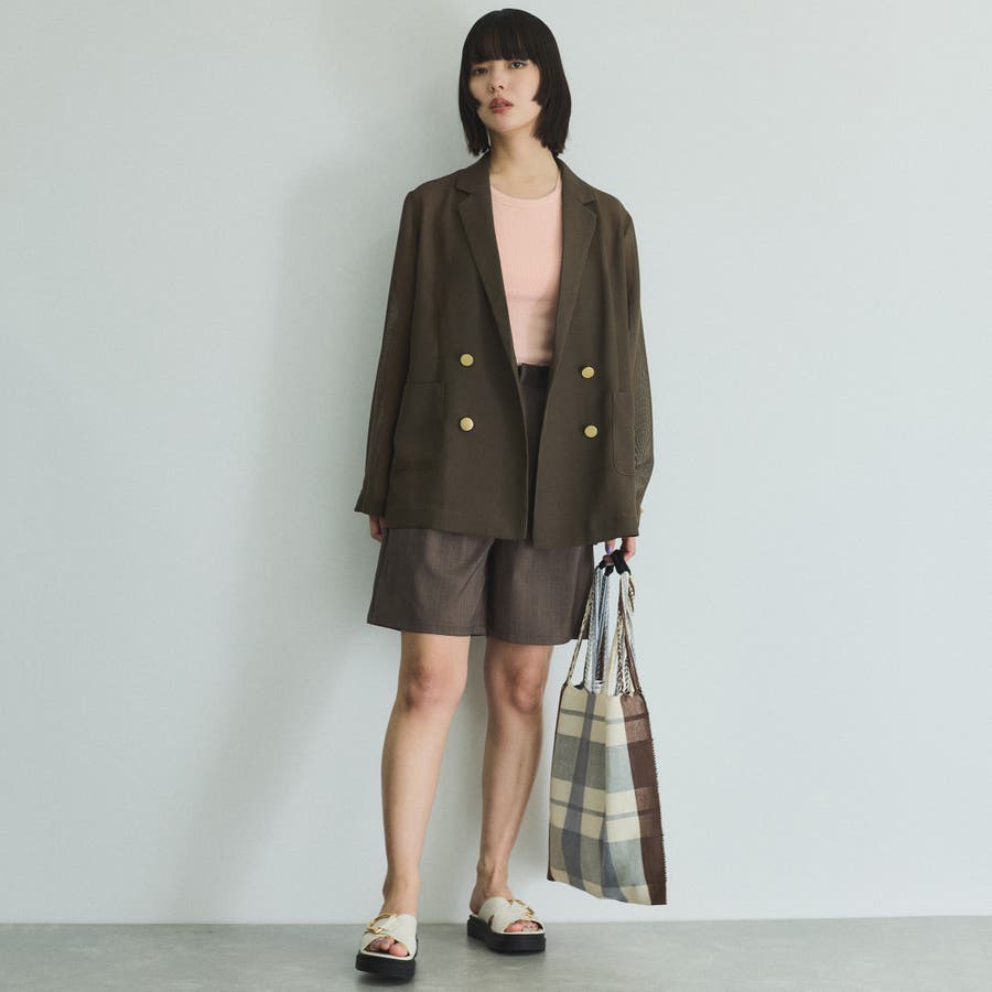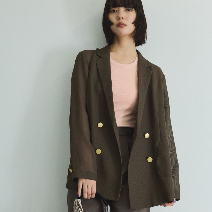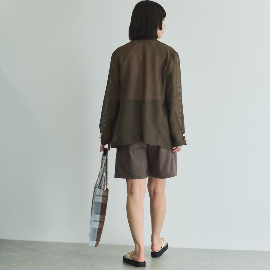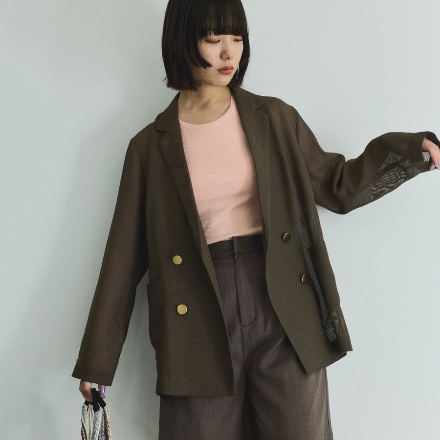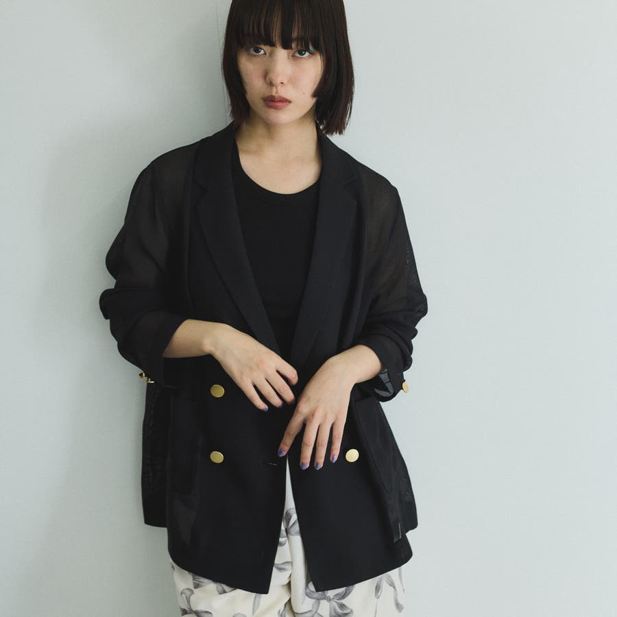 セミシアーメッシュ素材を使用したさりげない透け感がポイントのハンサムジャケットはやや緩めのクリーンなシルエットで、フラットなメタルボタンが凛とした印象を与えます。