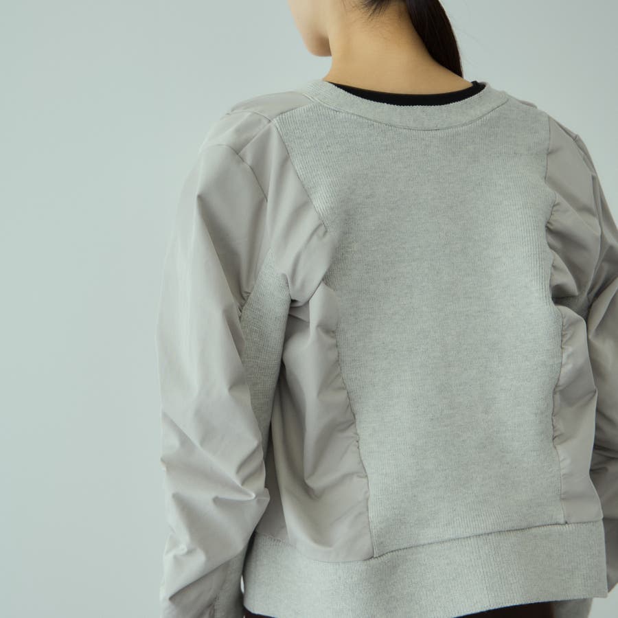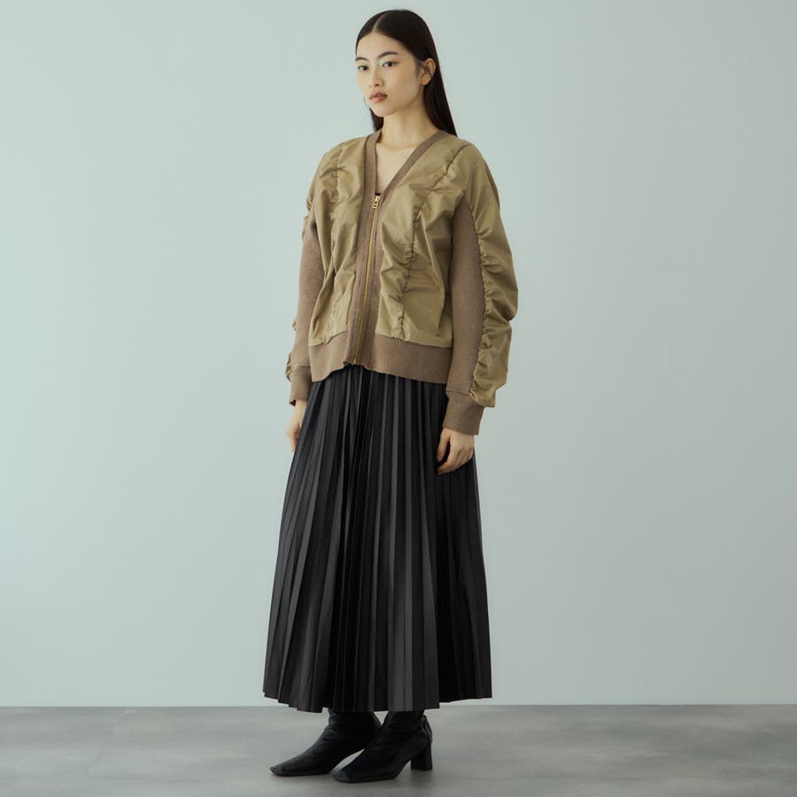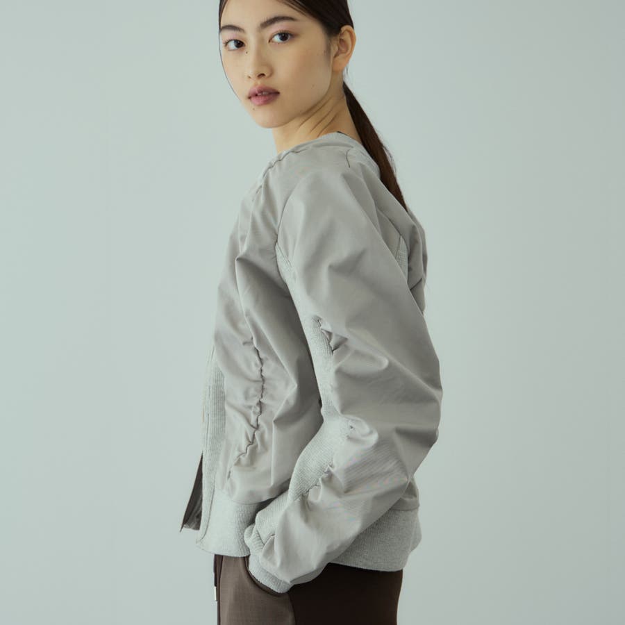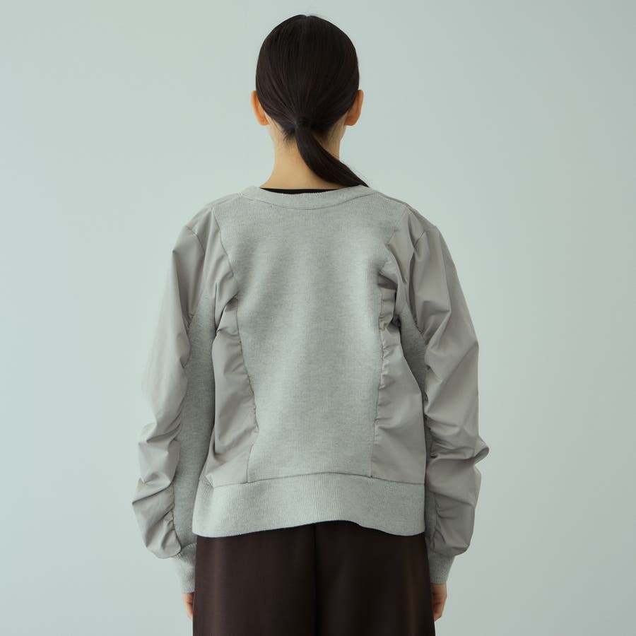 スリーブ内側もニットで切り替えてギャザーを入れることで、より立体的なフォルムになりモードエッセンスをプラスします。