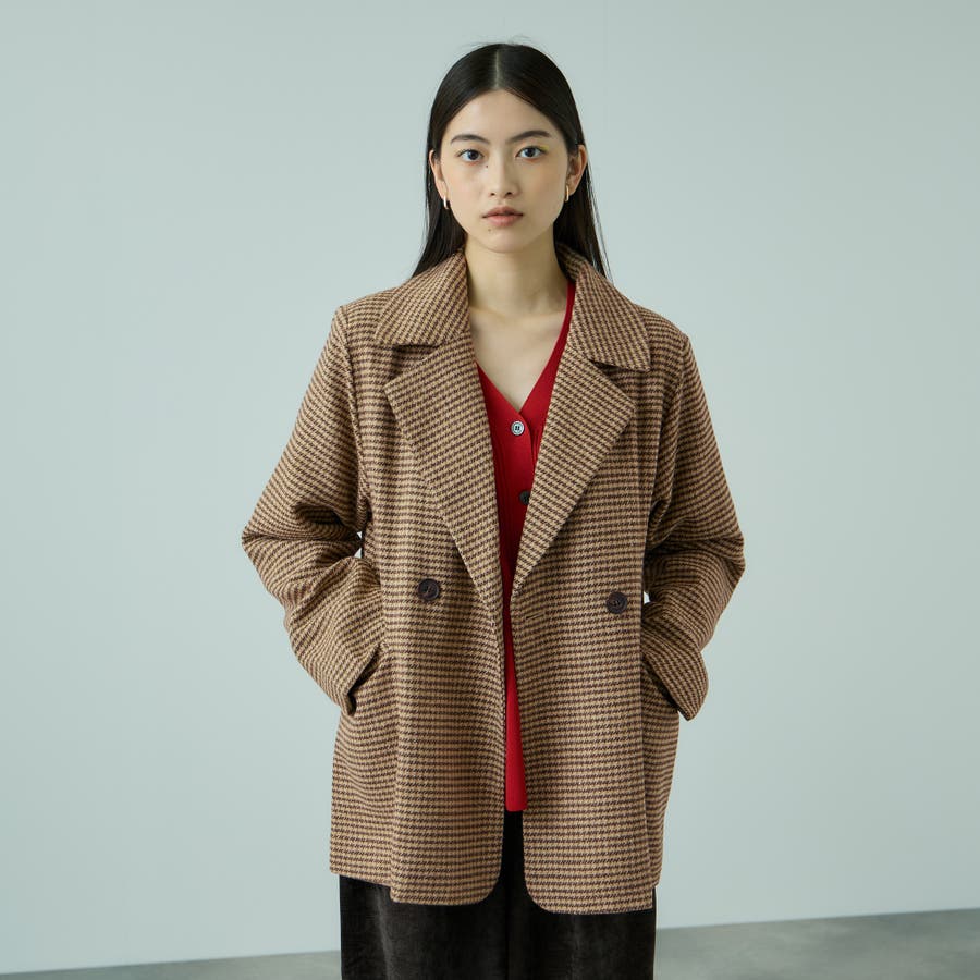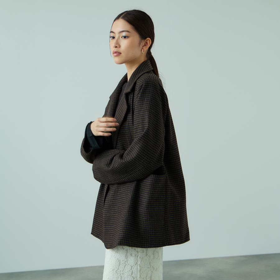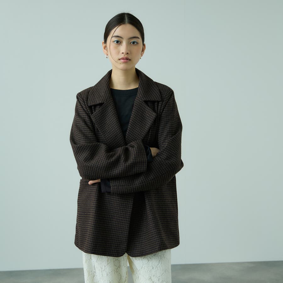 細かなハウンドトゥース(千鳥格子)柄のツィーディジャコットです。