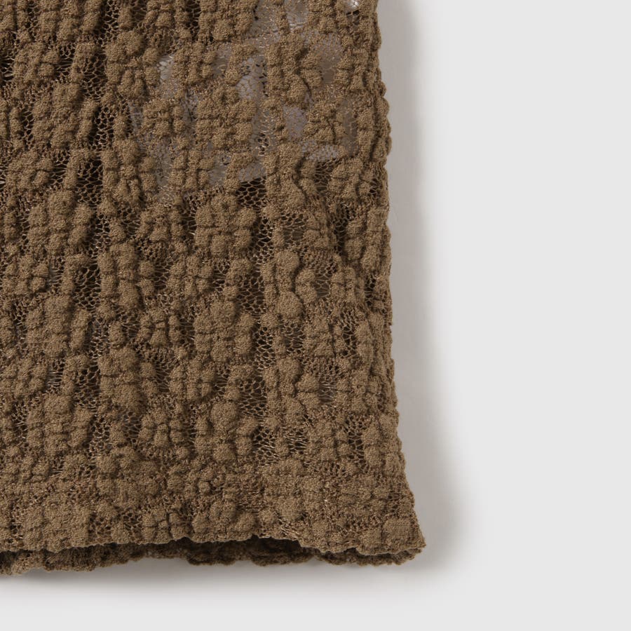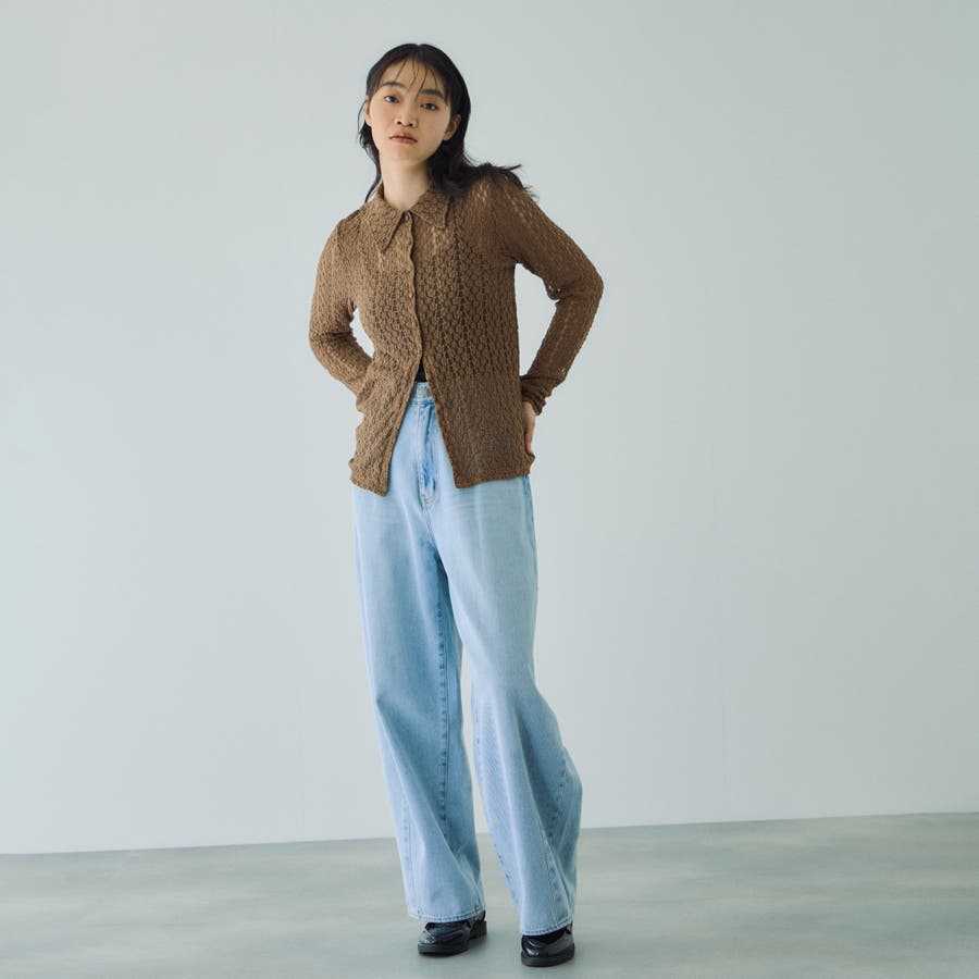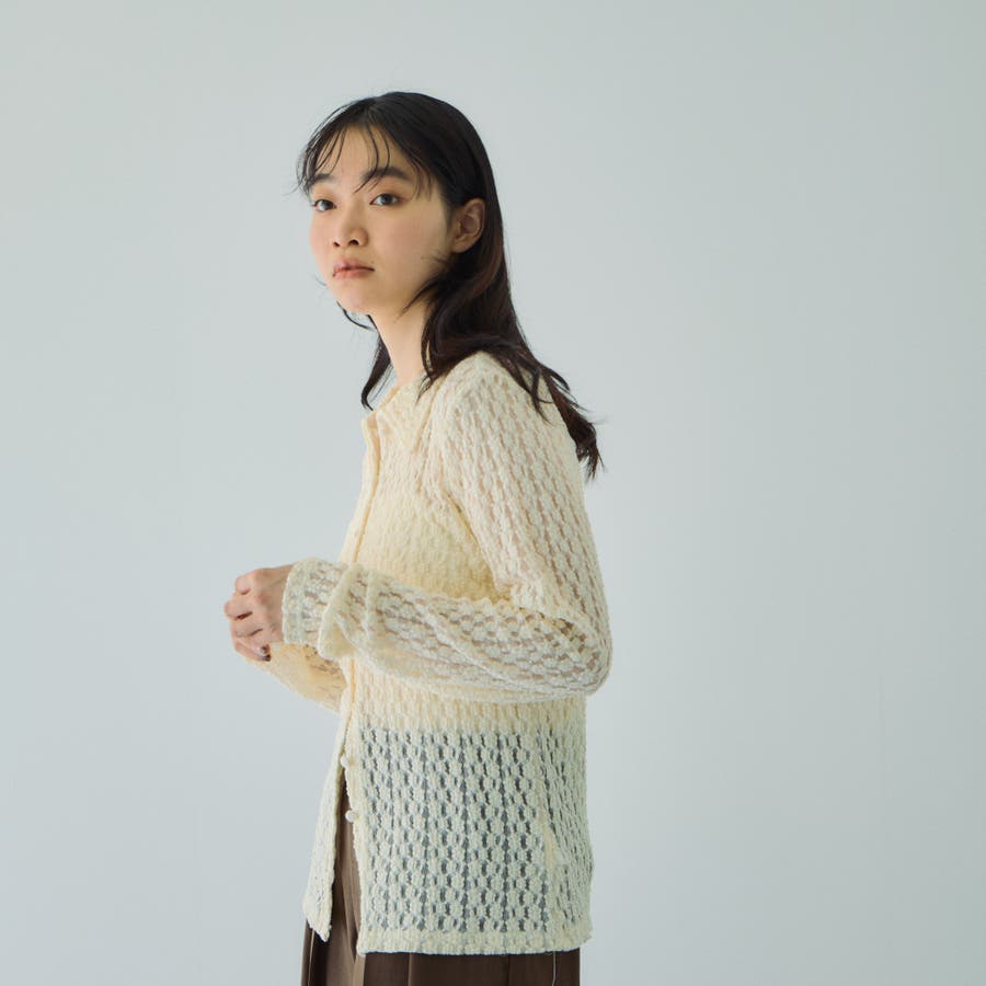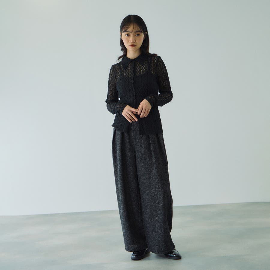 程よく透け感のある素材なので、ストラップアクセントのあるインナーなどをあわせていただくと、抜け感のあるニュアンスの感じられるルックに。