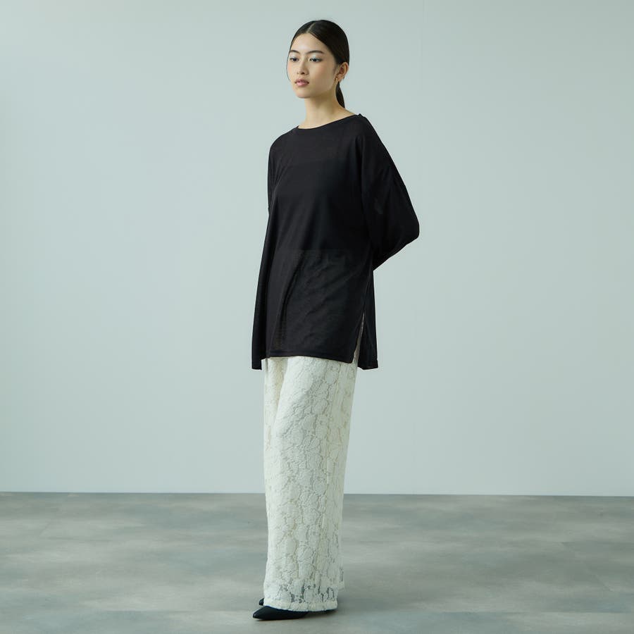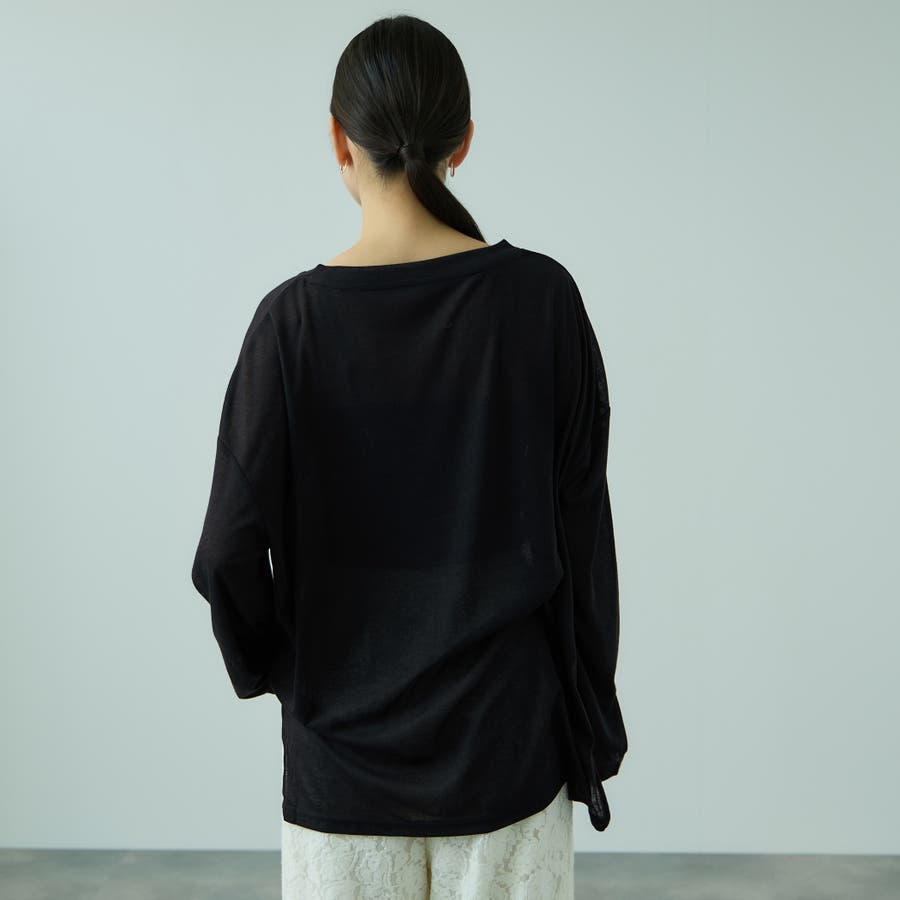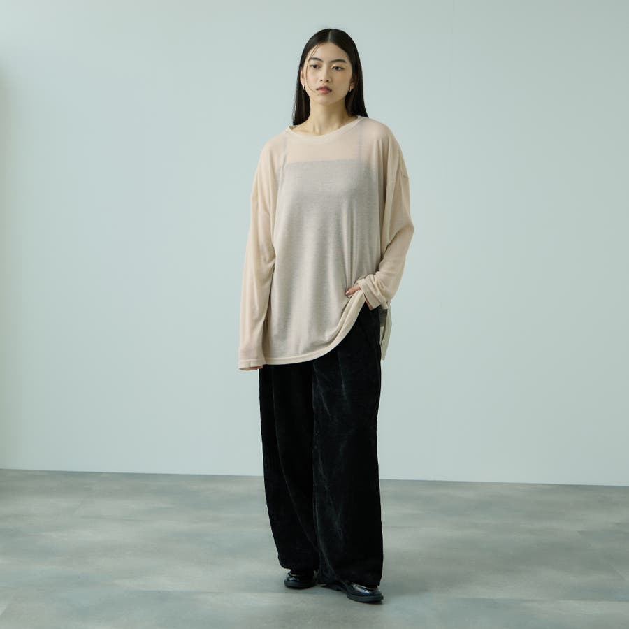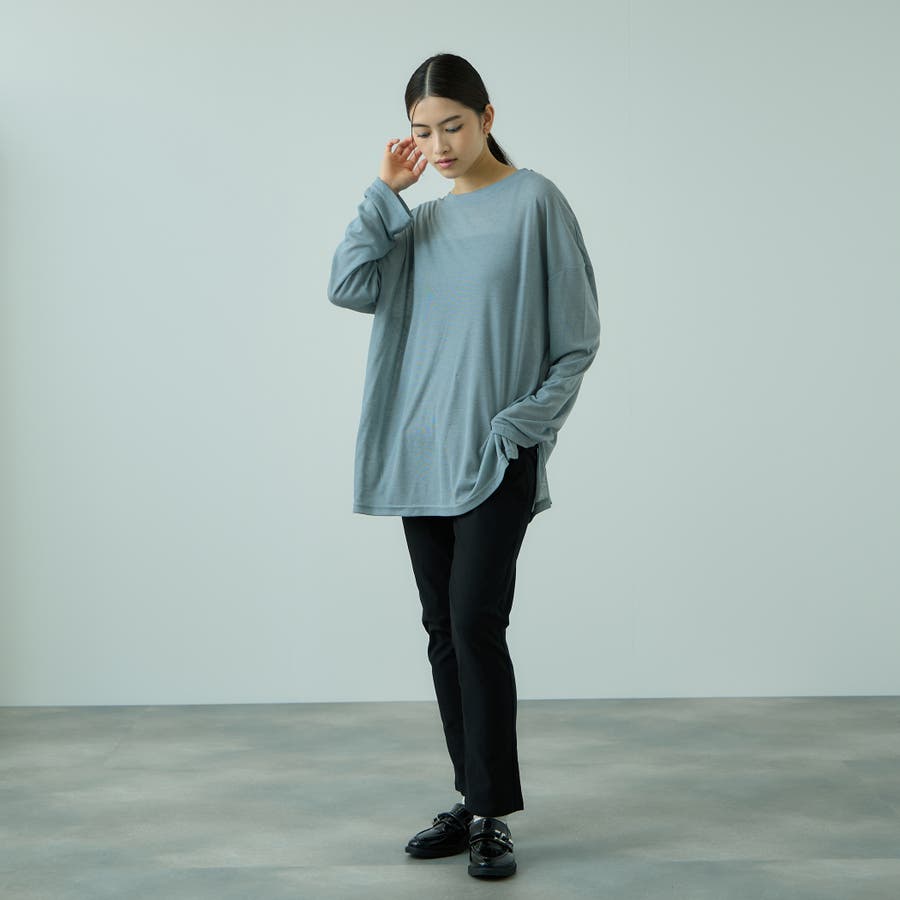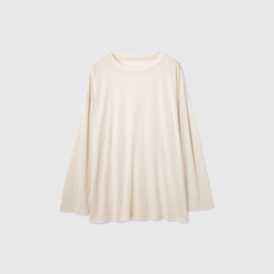 ボディラインやアンダーウエアが響きやすいセミシアー素材だからこそ、シルエットに程よいゆとりをもたせて一枚着でもインナーとしても着回しやすいフォルムに。