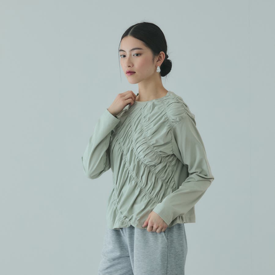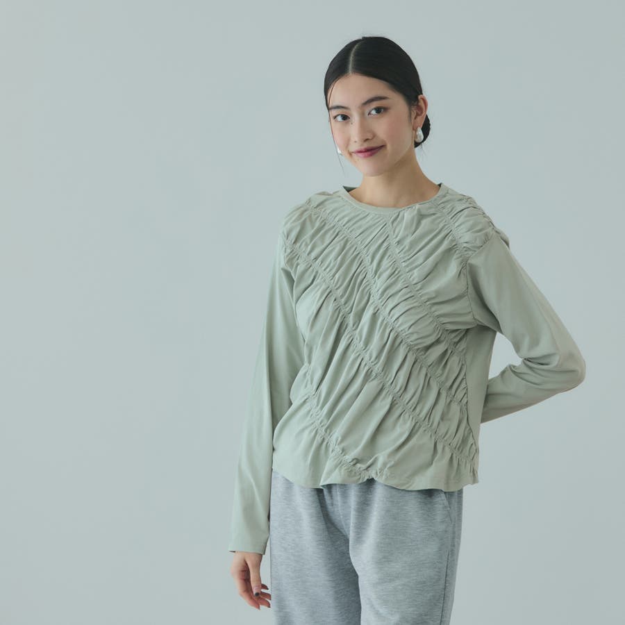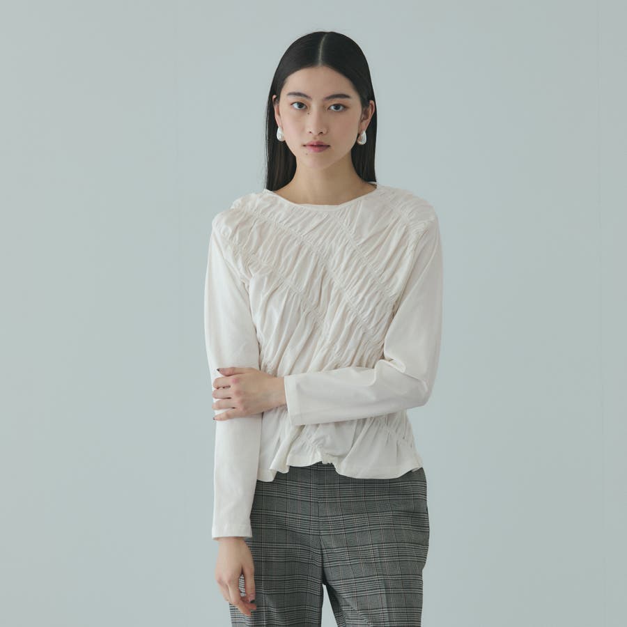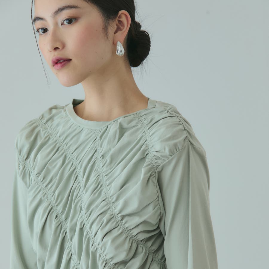 バイアスに入ったシャーリングデザインが印象的なカットソープルオーバーです。