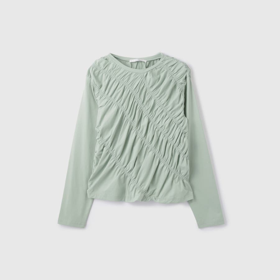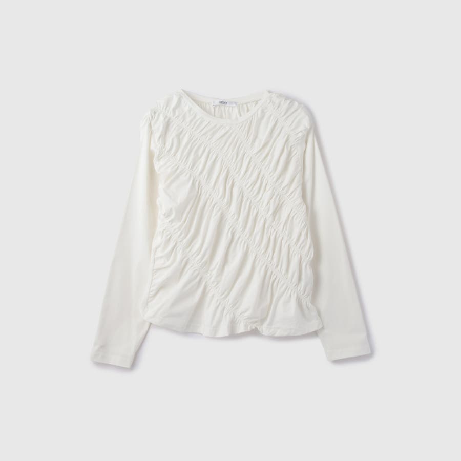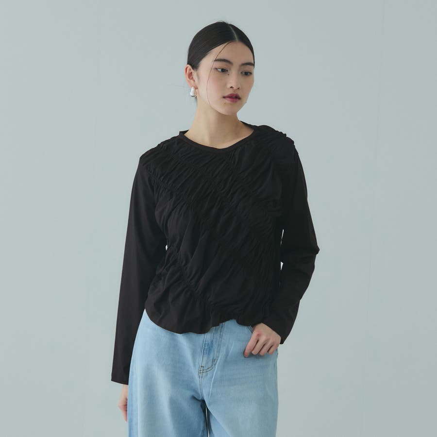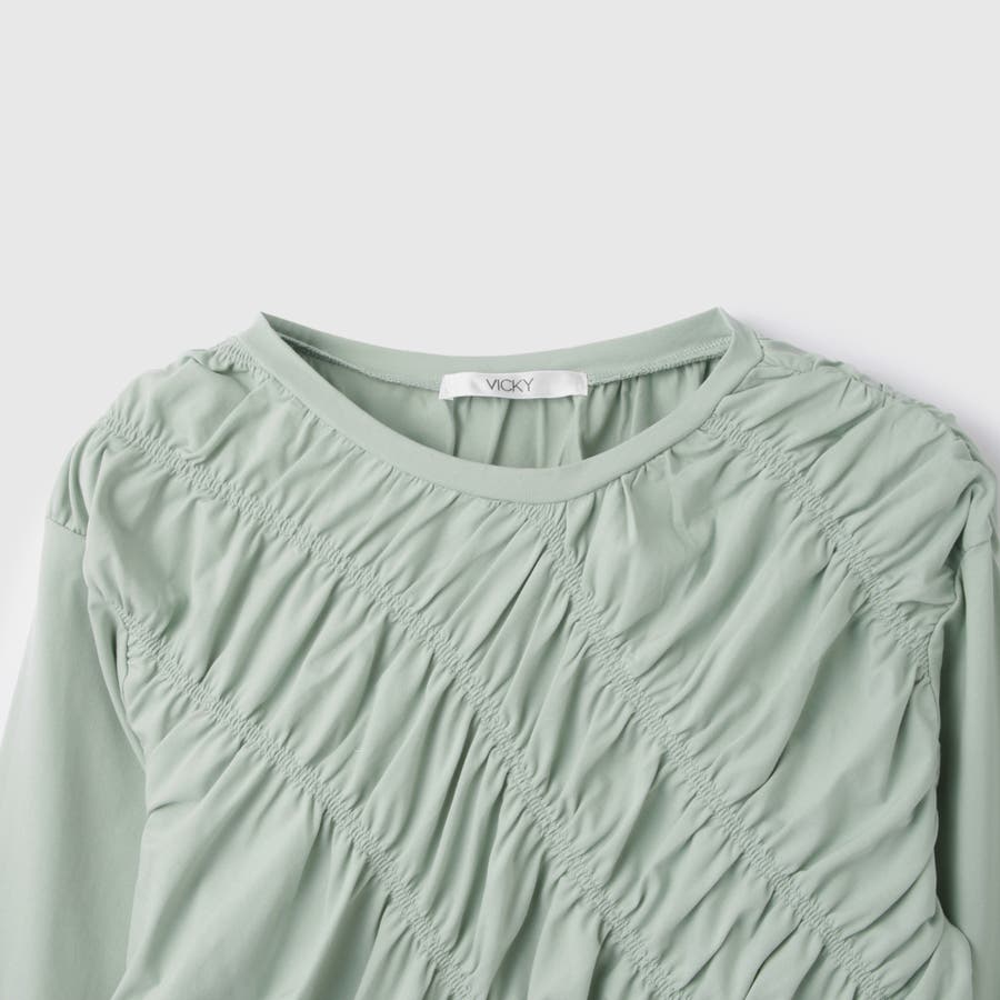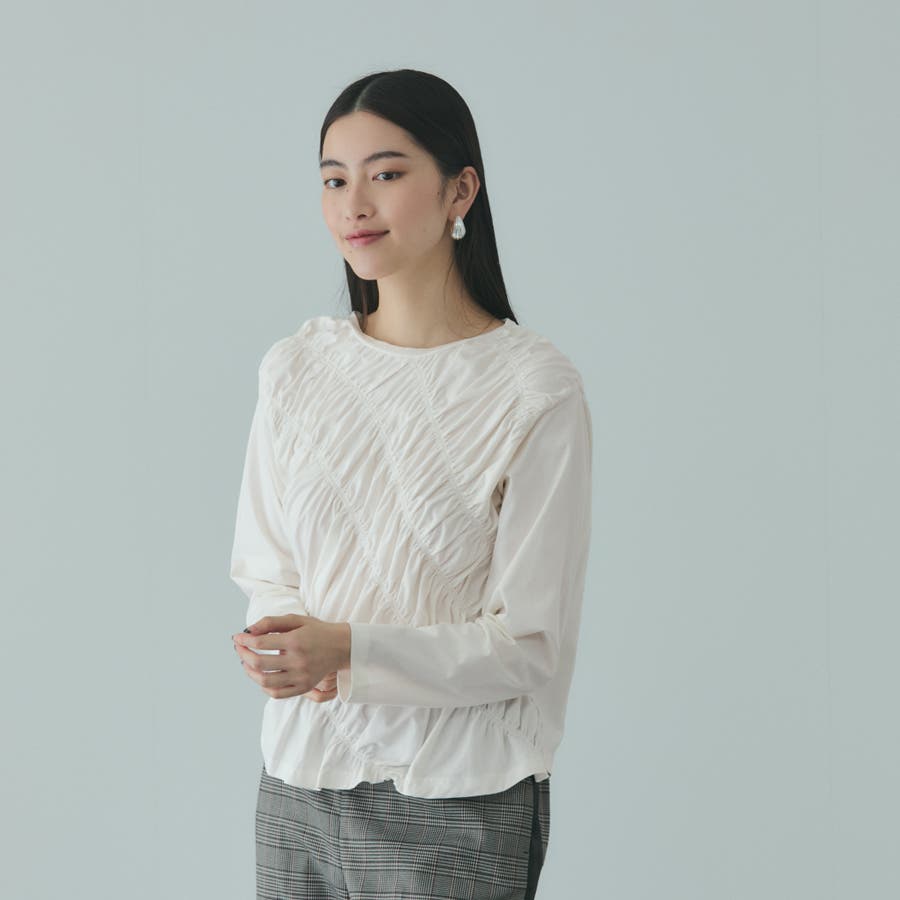 バイアスに入ったシャーリングデザインが印象的なカットソープルオーバーです。