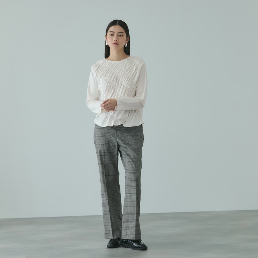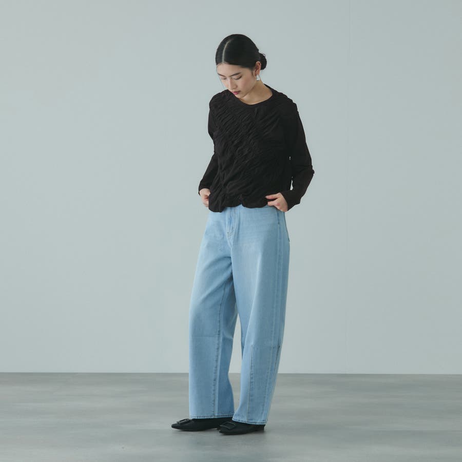 ワイドパンツにあわせてマニッシュに、デニムなどにあわせてカジュアルにとあわせるボトムスで印象変化が叶います。