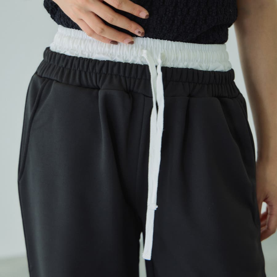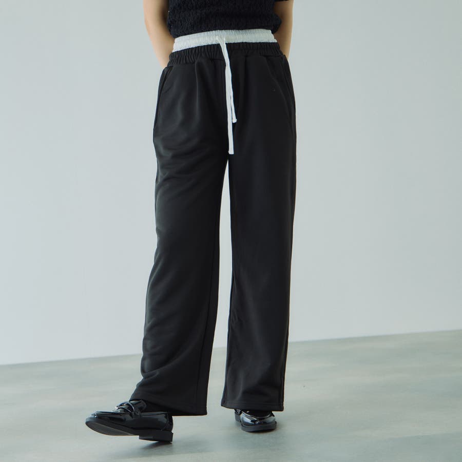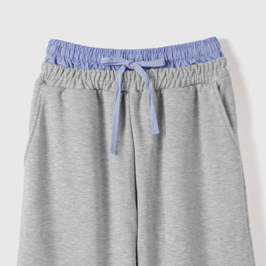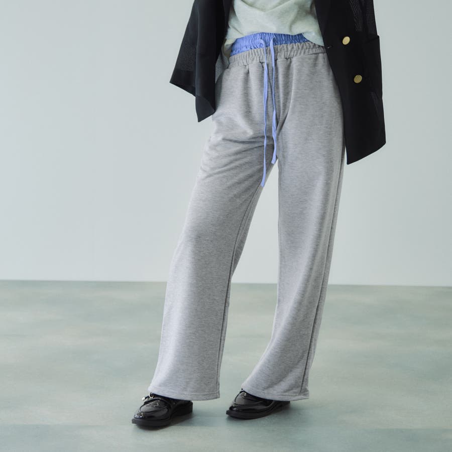 ウエストを布帛素材で切り替えダブルウエストデザインにしたスウェットパンツです。