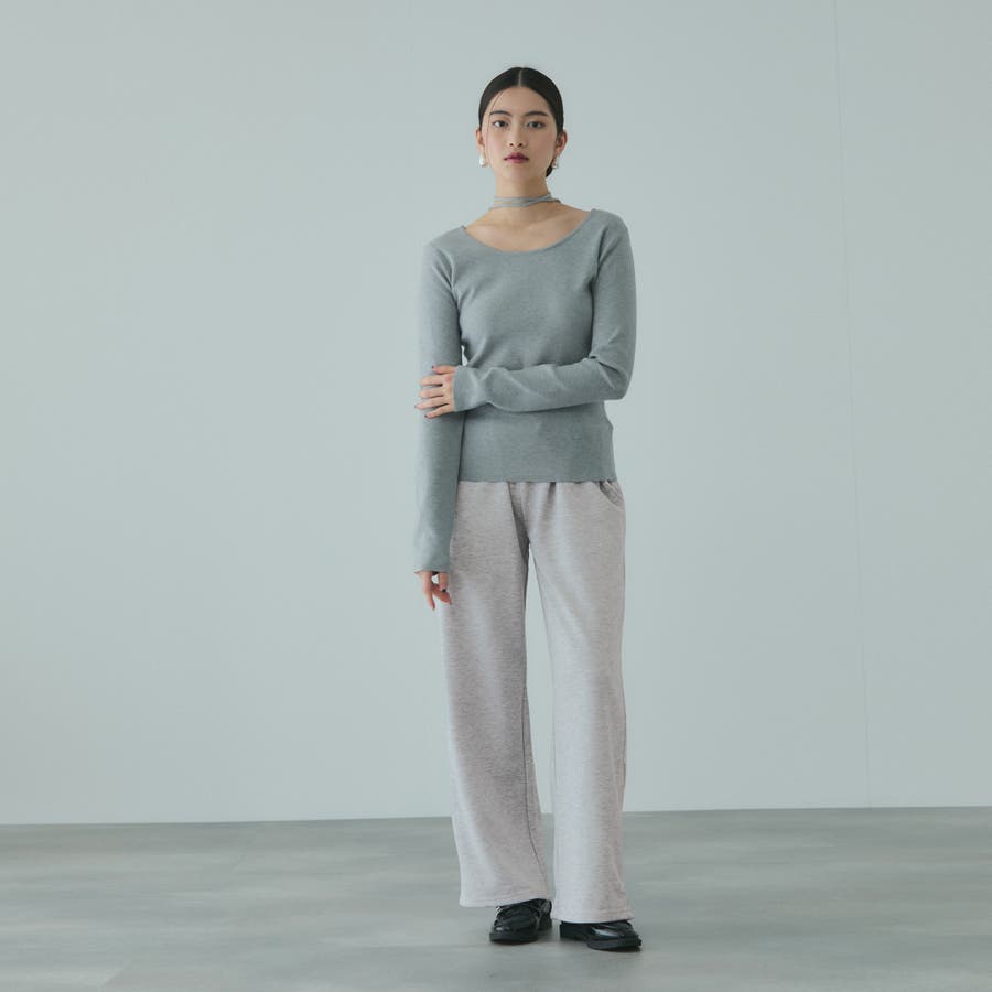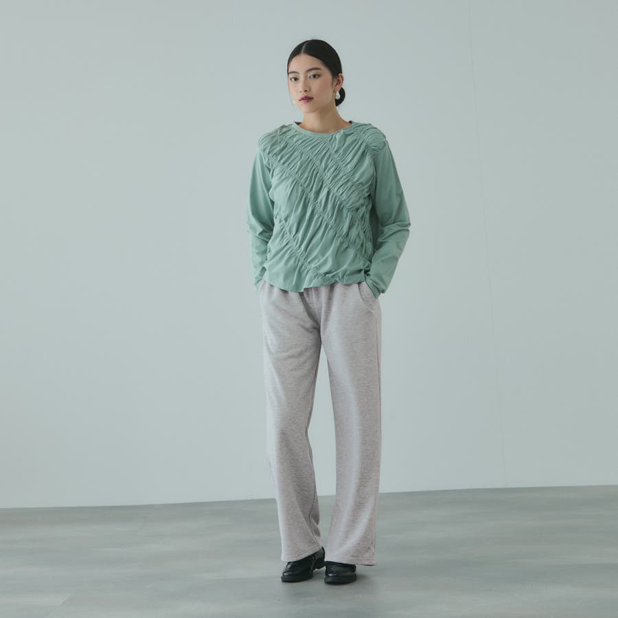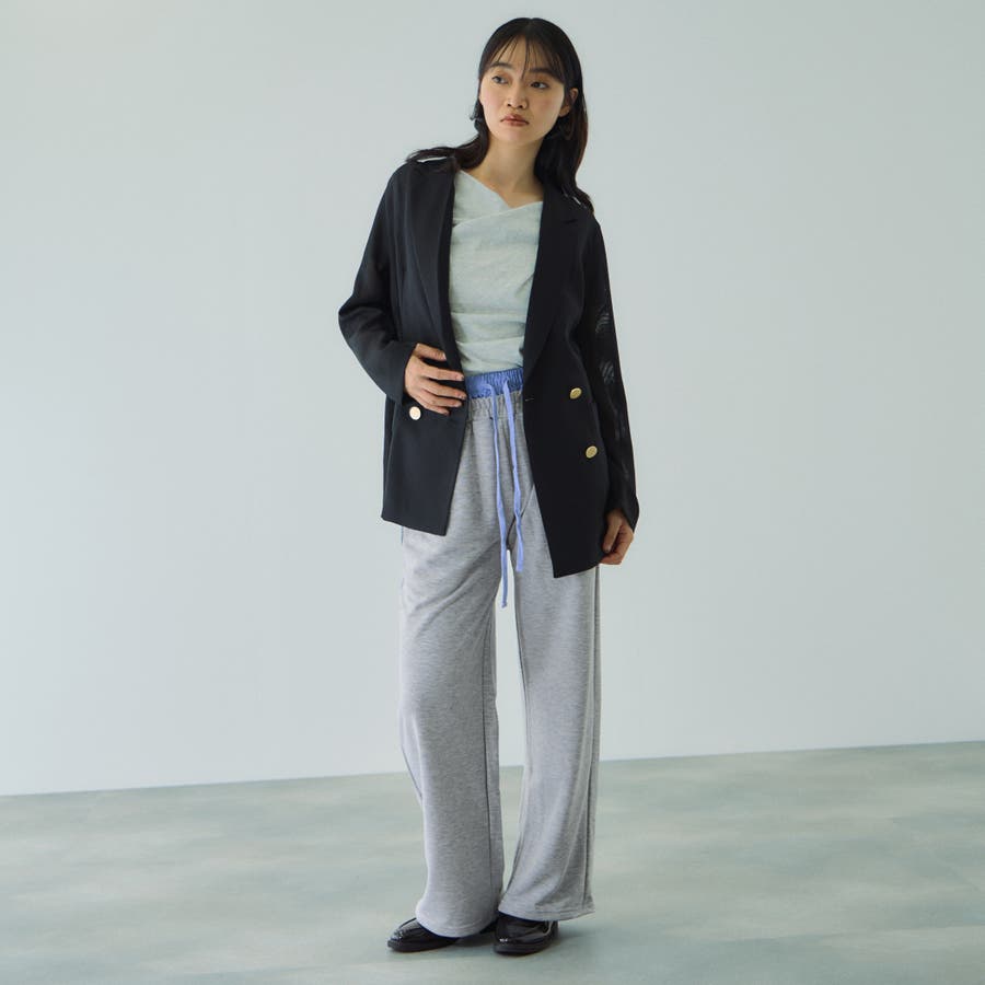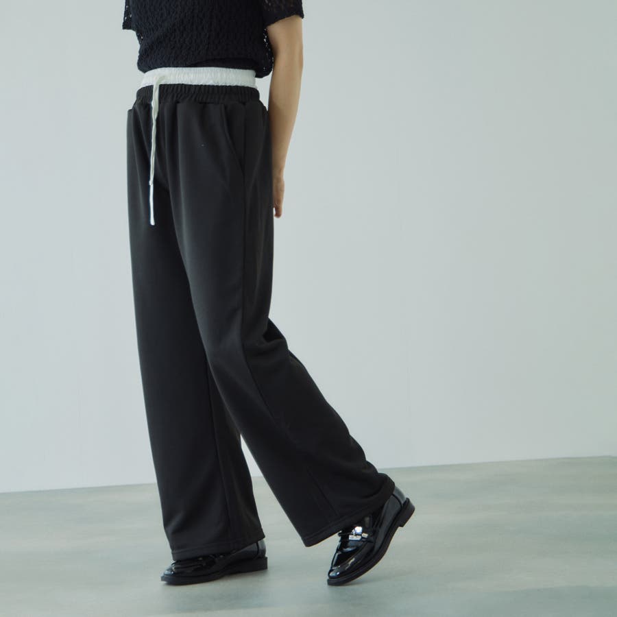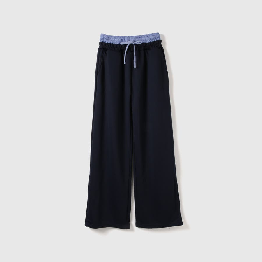 ウエストを布帛素材で切り替えダブルウエストデザインにしたスウェットパンツです。