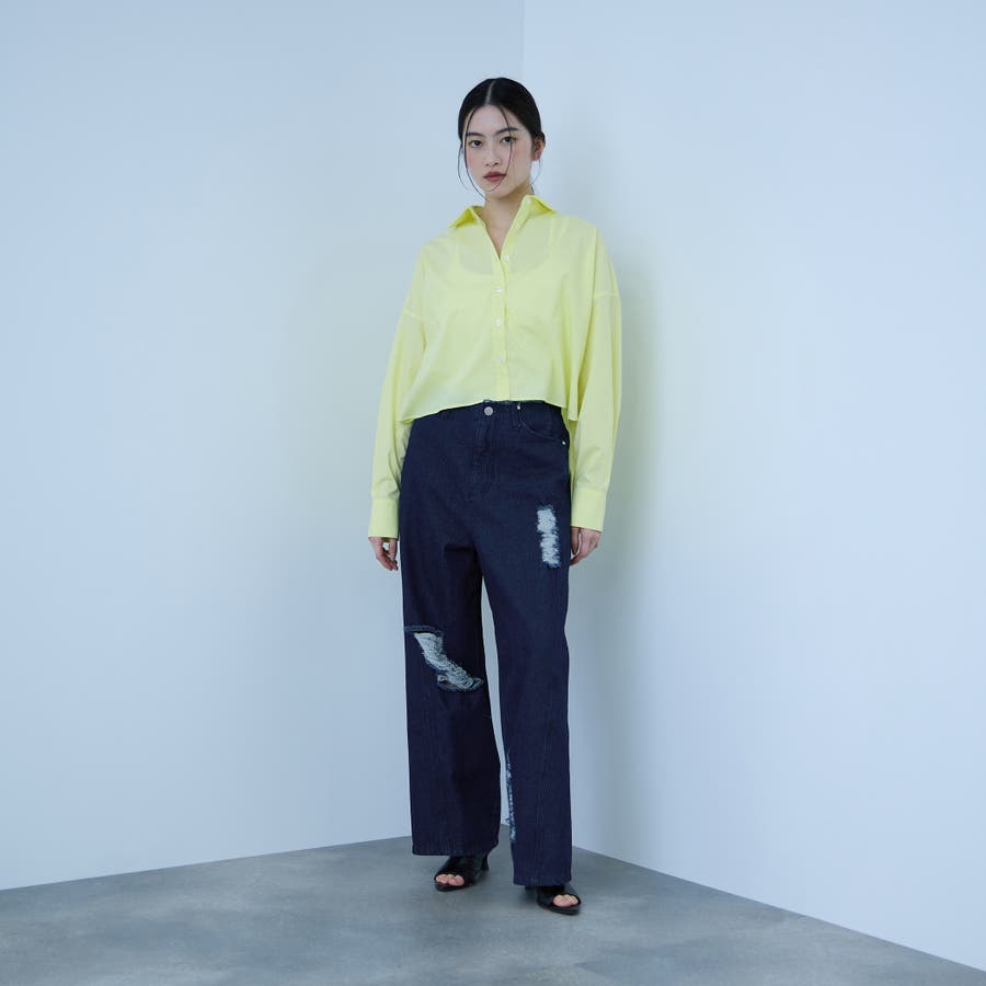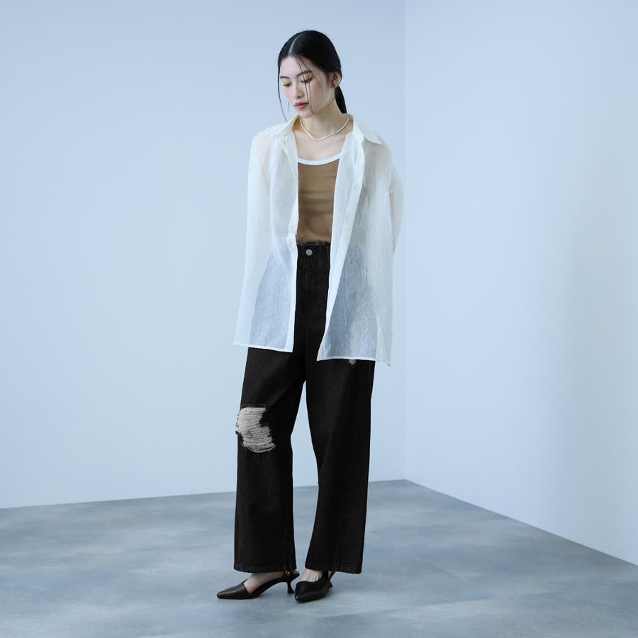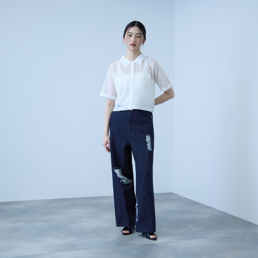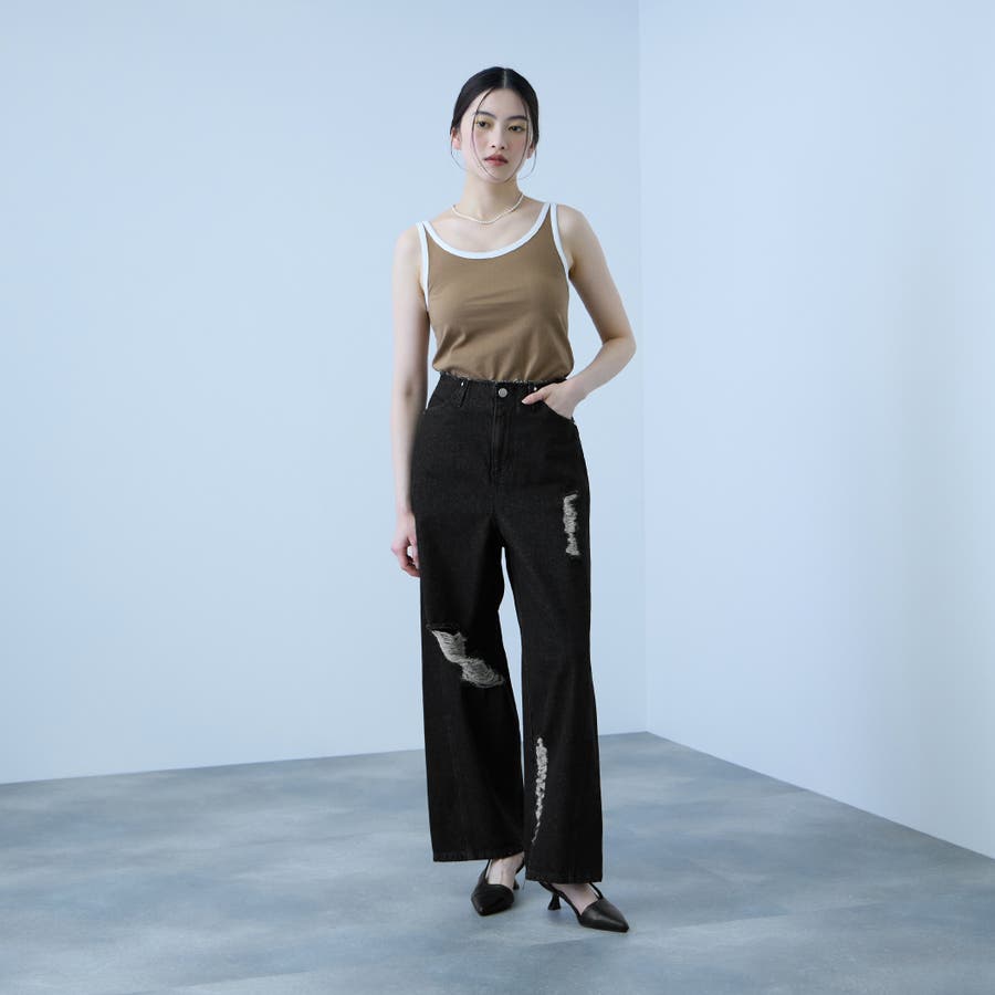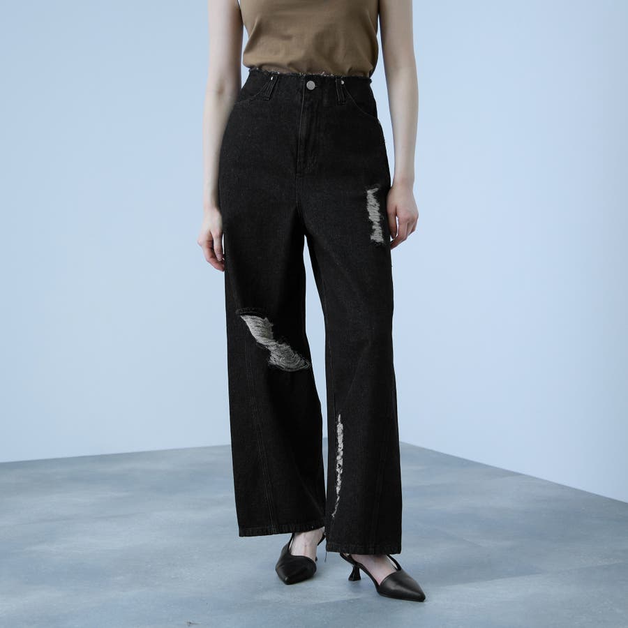 【大人の抜け感】デニムカットオフダメージパンツ