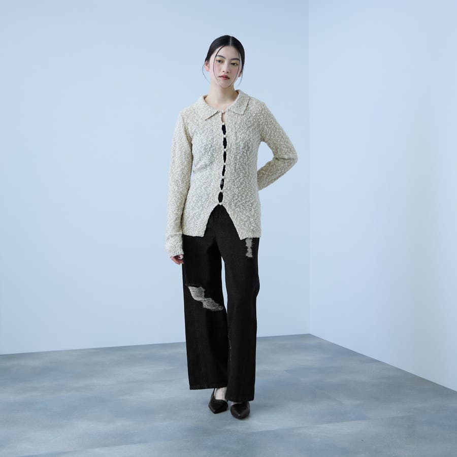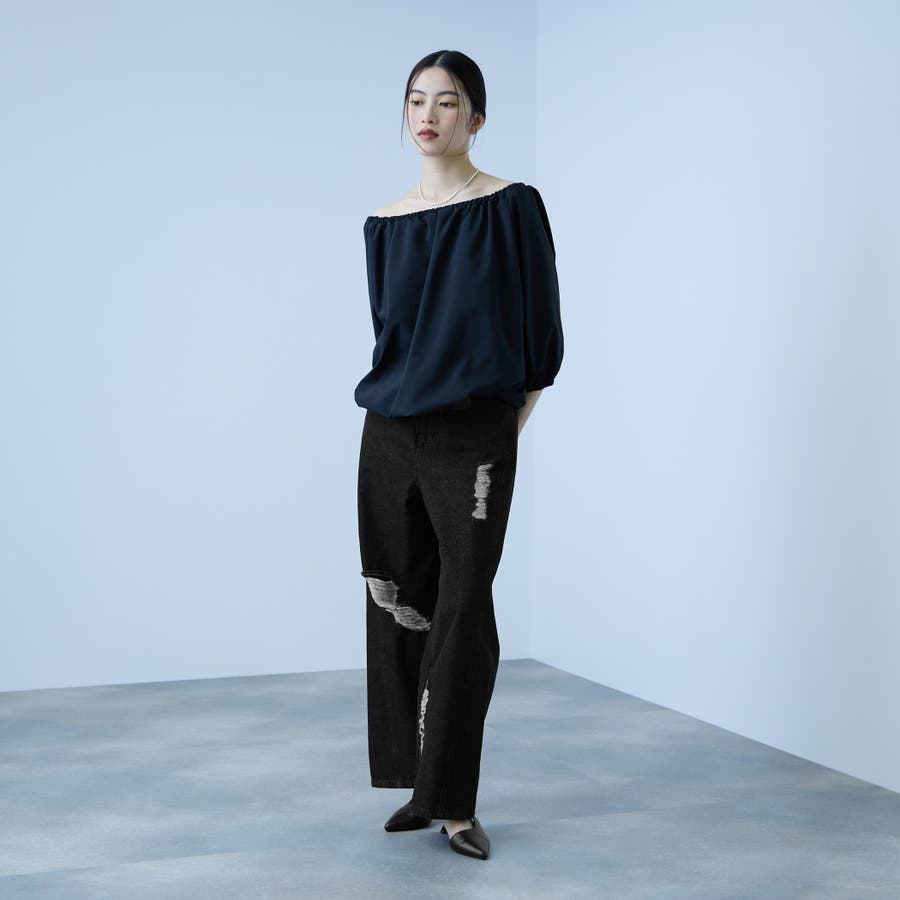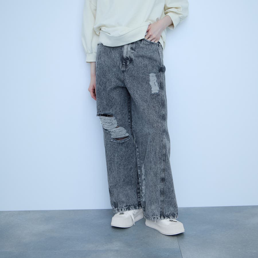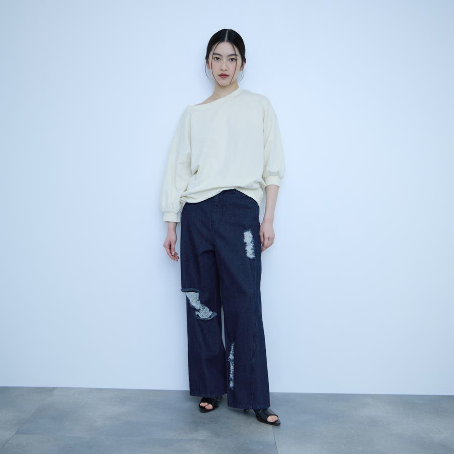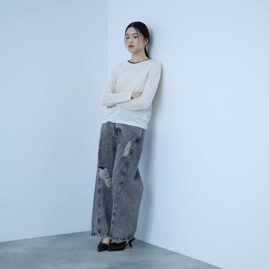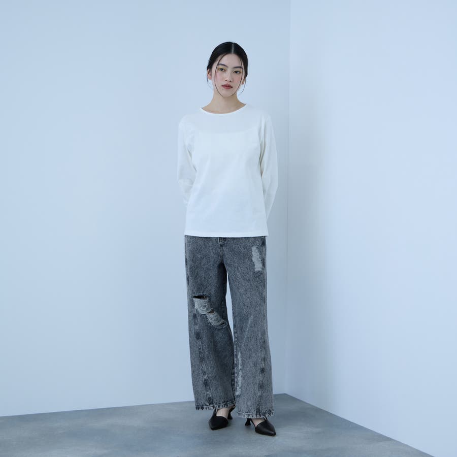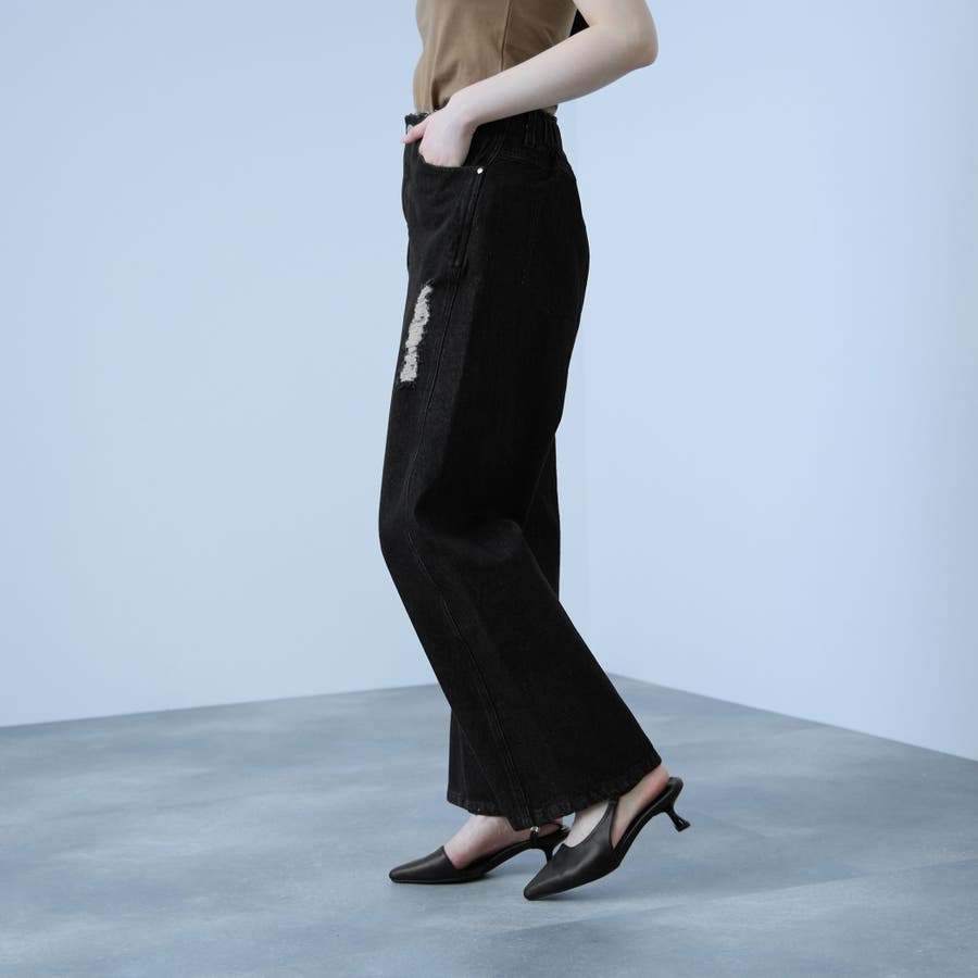 部分的に施した控えめなダメージ加工が、程よい抜け感を添える一本です。