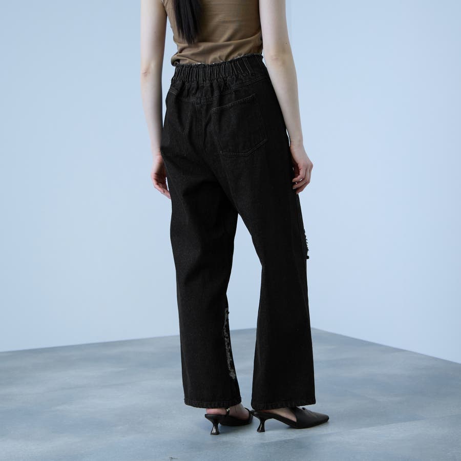 ウエストはカットオフ仕様と後ろゴムで、こなれ感と快適なフィット感を両立しています。
