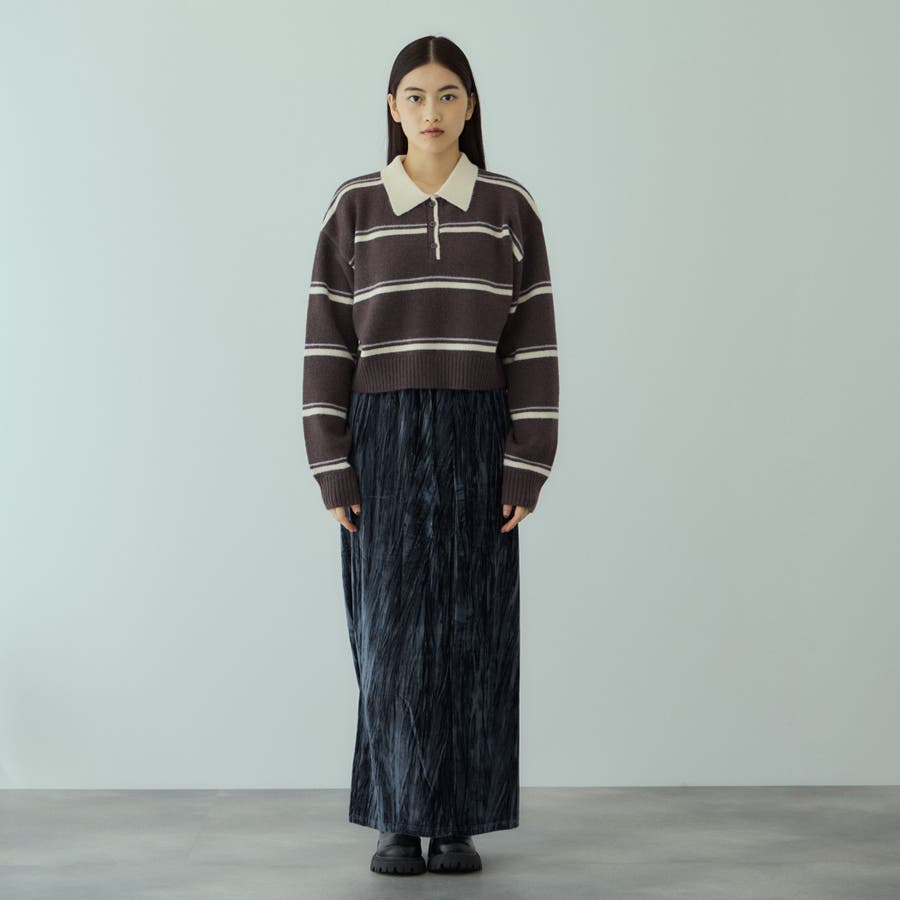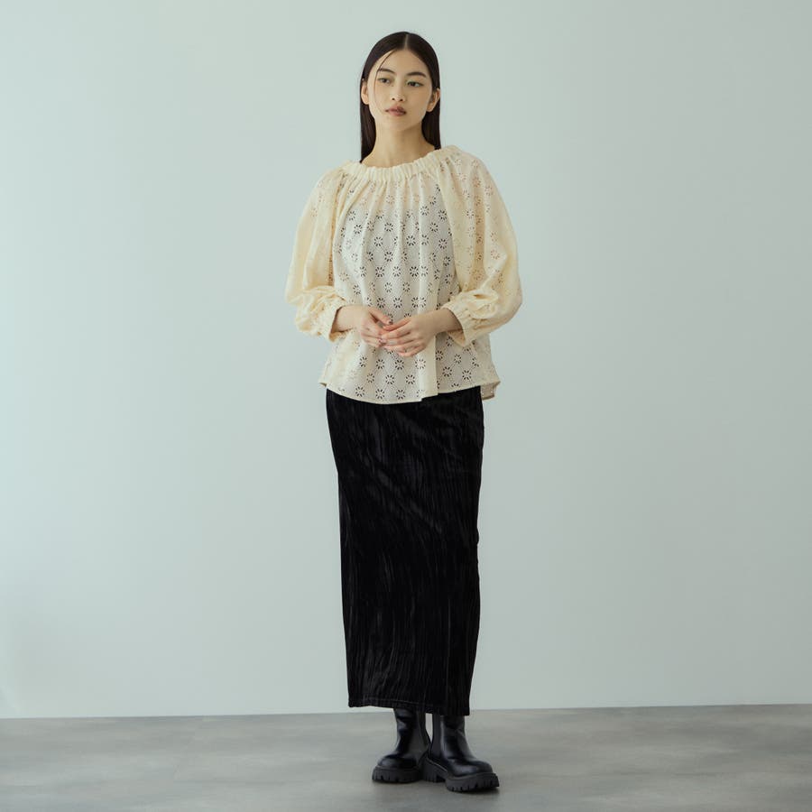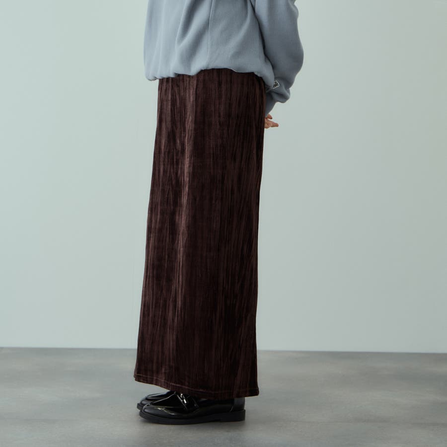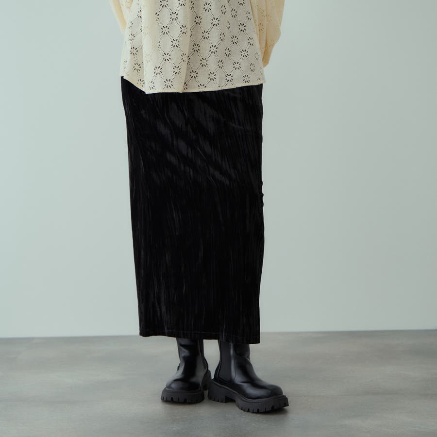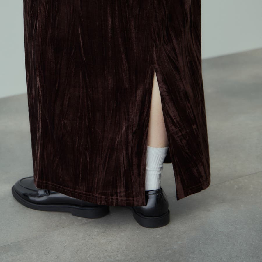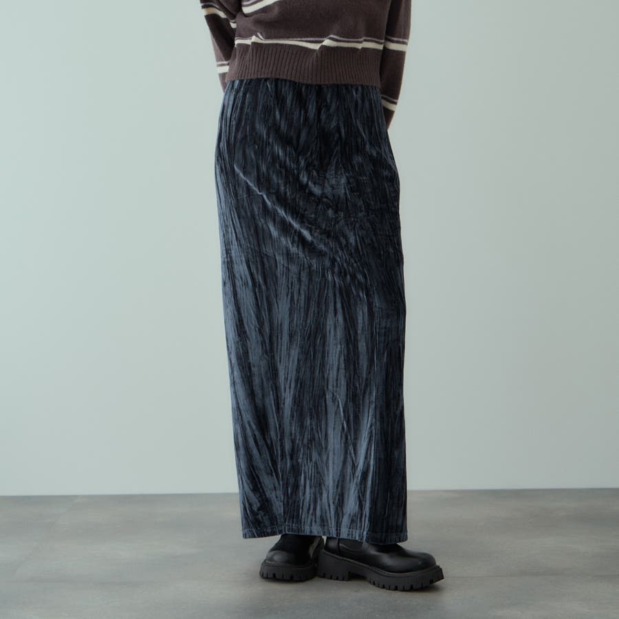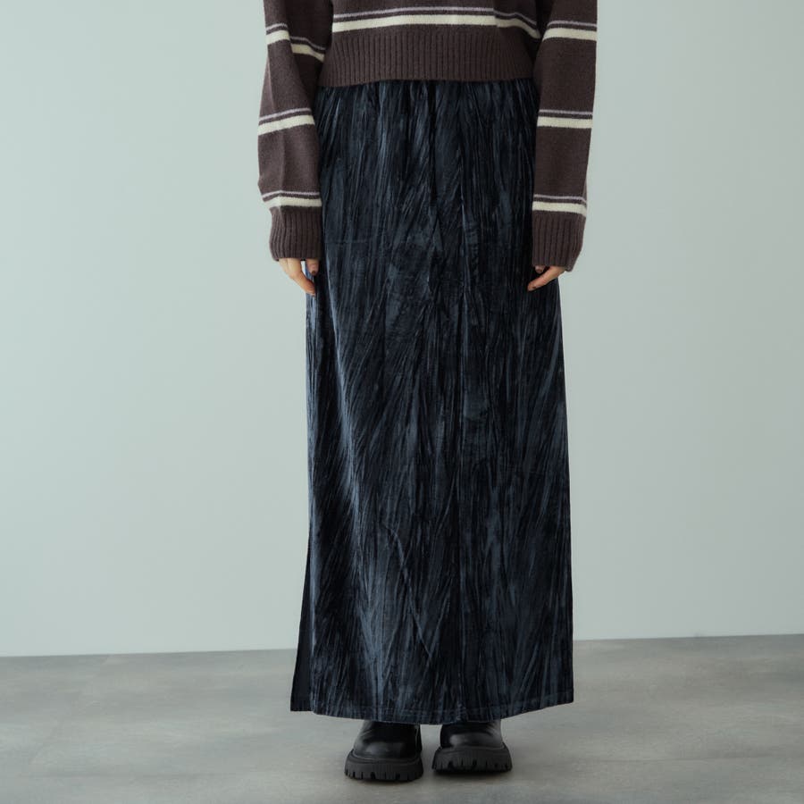 ドレッシーに触れがちなベロア素材にリンクル感を持たせて、デイリーでご着用しやすいようにカジュアルダウンさせたイージースカートです。