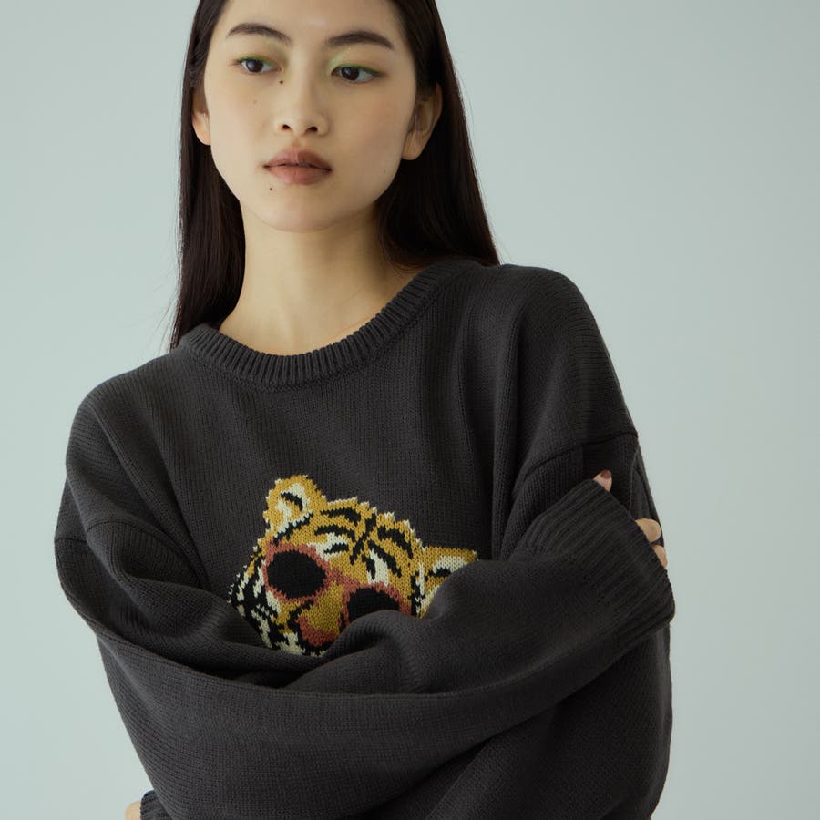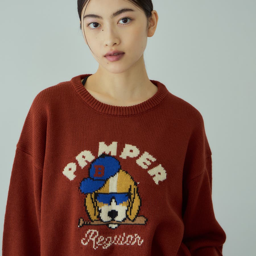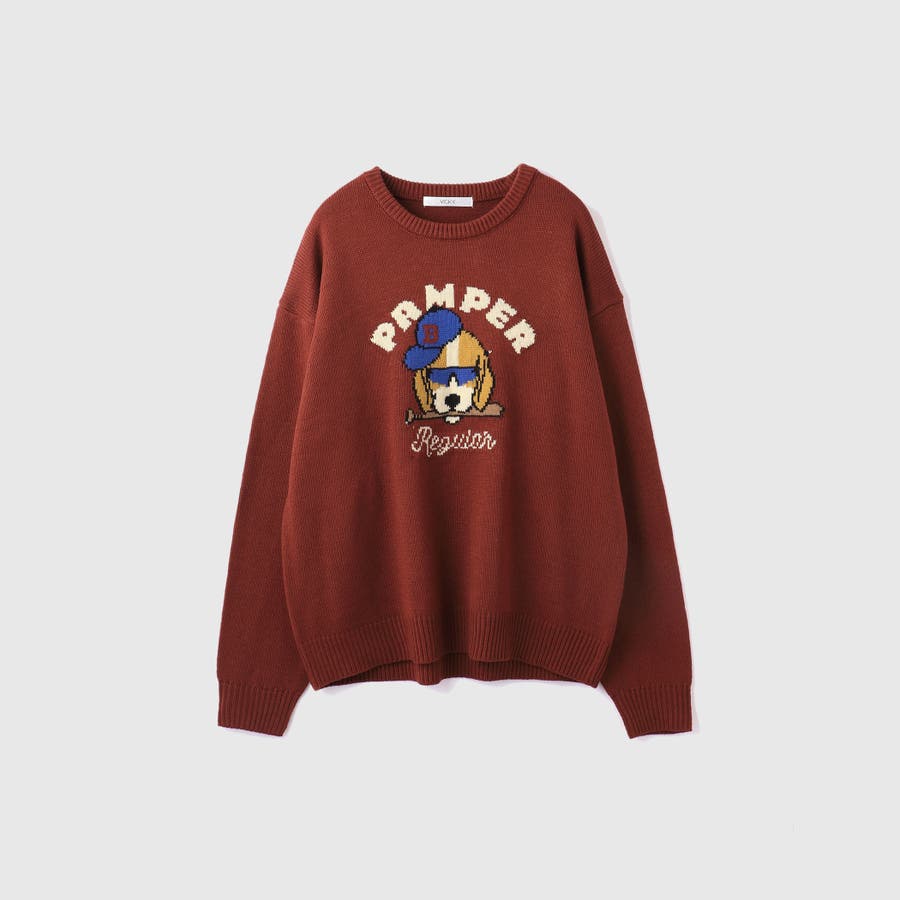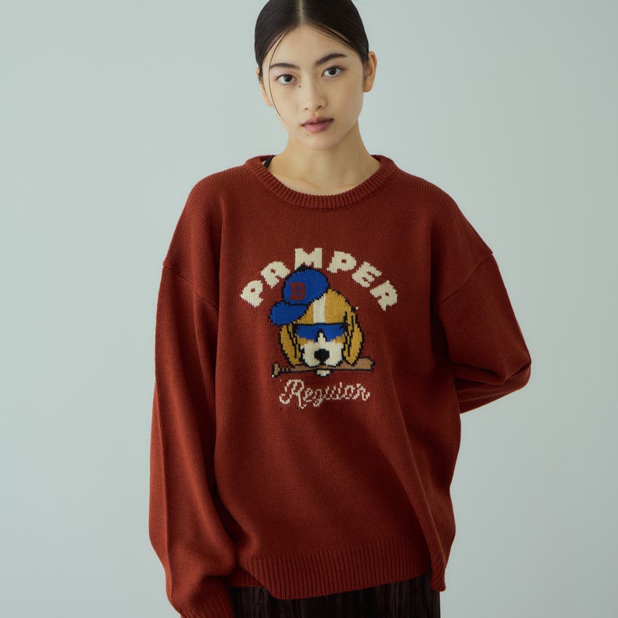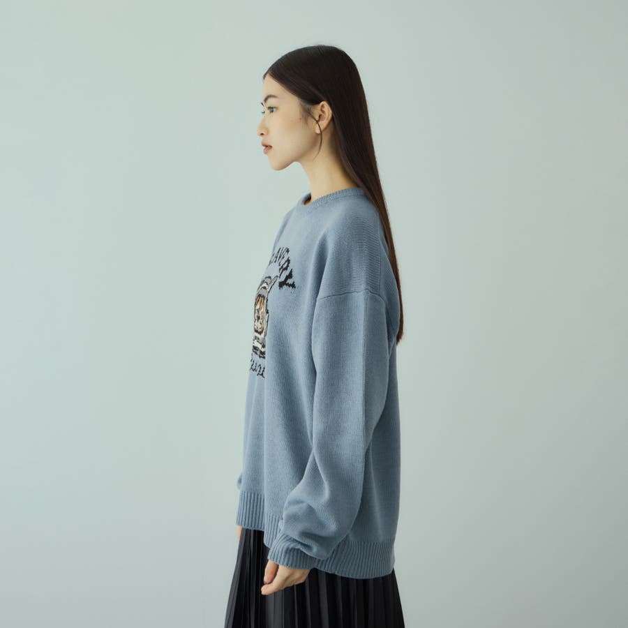 アニマルモチーフをPOPにジャカード編みで表現したアメカジ風のニットプルオーバーです。