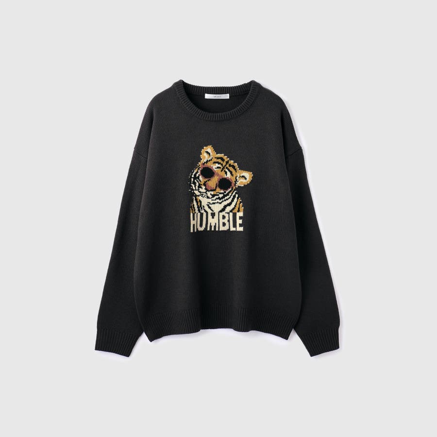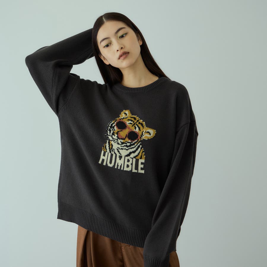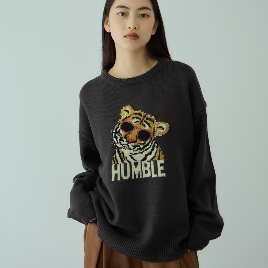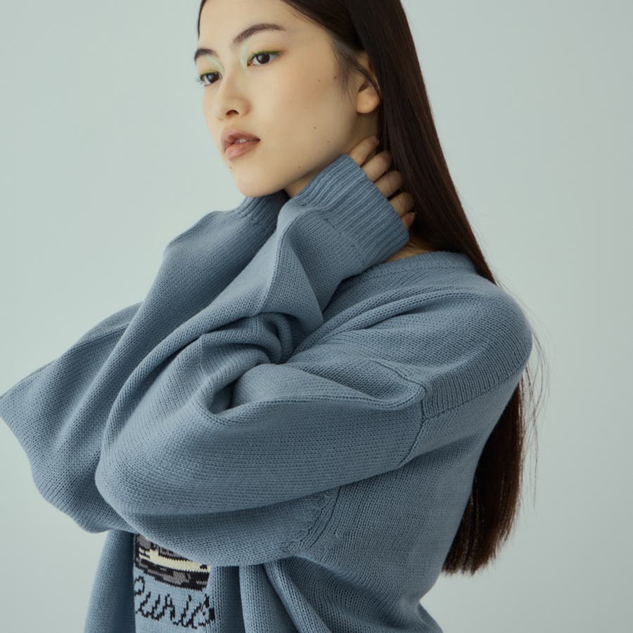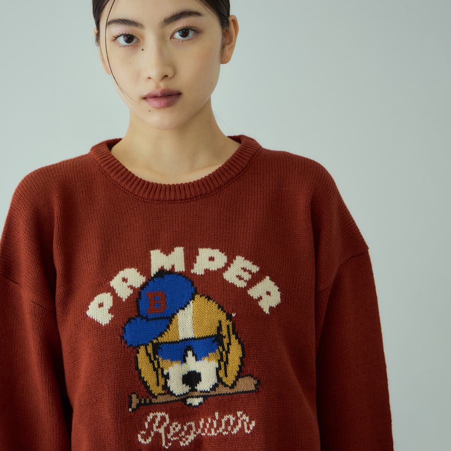 アニマルモチーフをPOPにジャカード編みで表現したアメカジ風のニットプルオーバーです。
